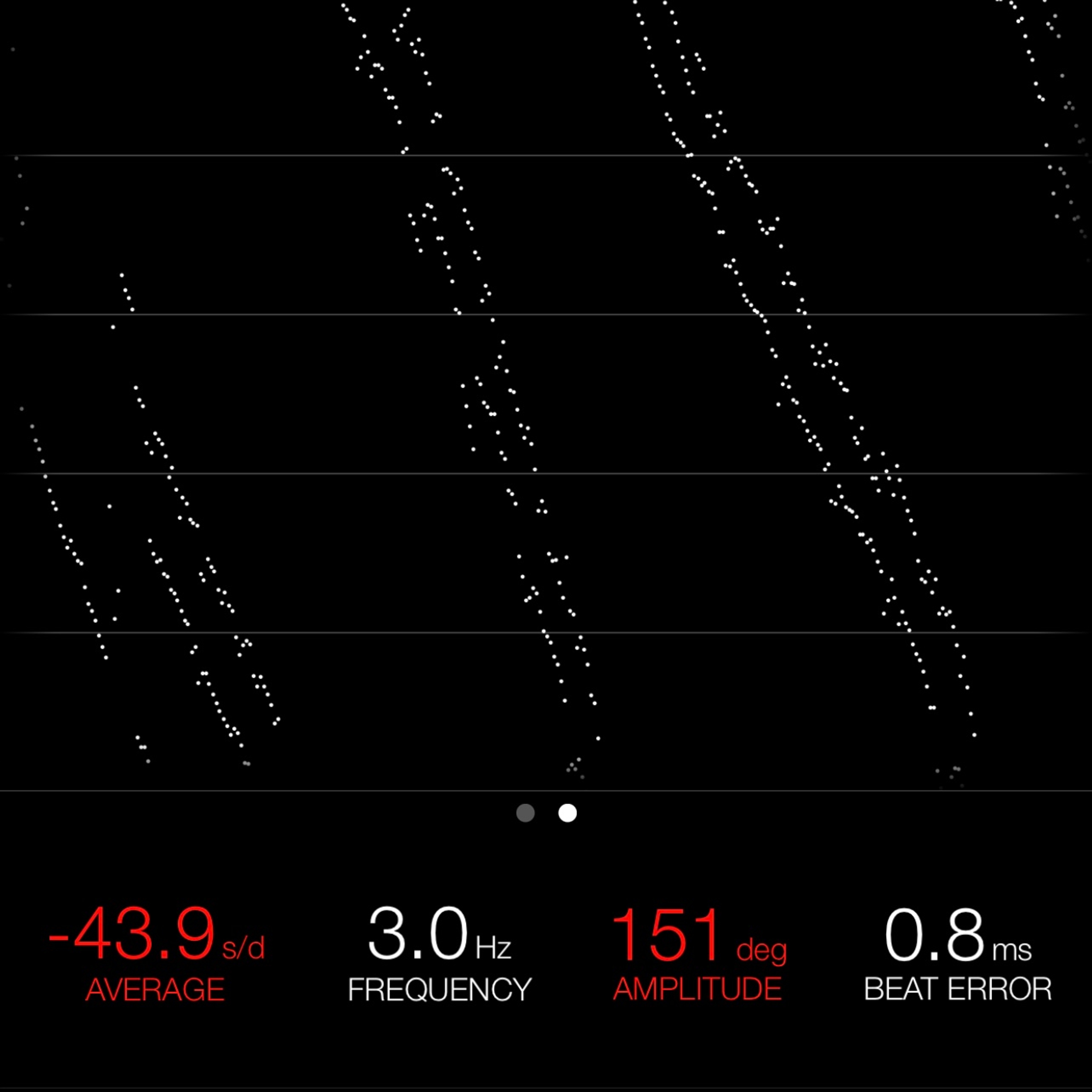 This reading was taken (crown down) with a ONEOF Accuracy Boutique Edition timing machine at time of cataloging. It is provided as a courtesy only, and shall not be construed as a warranty or guarantee of any kind. Please refer to our terms and conditions of sale for more information.