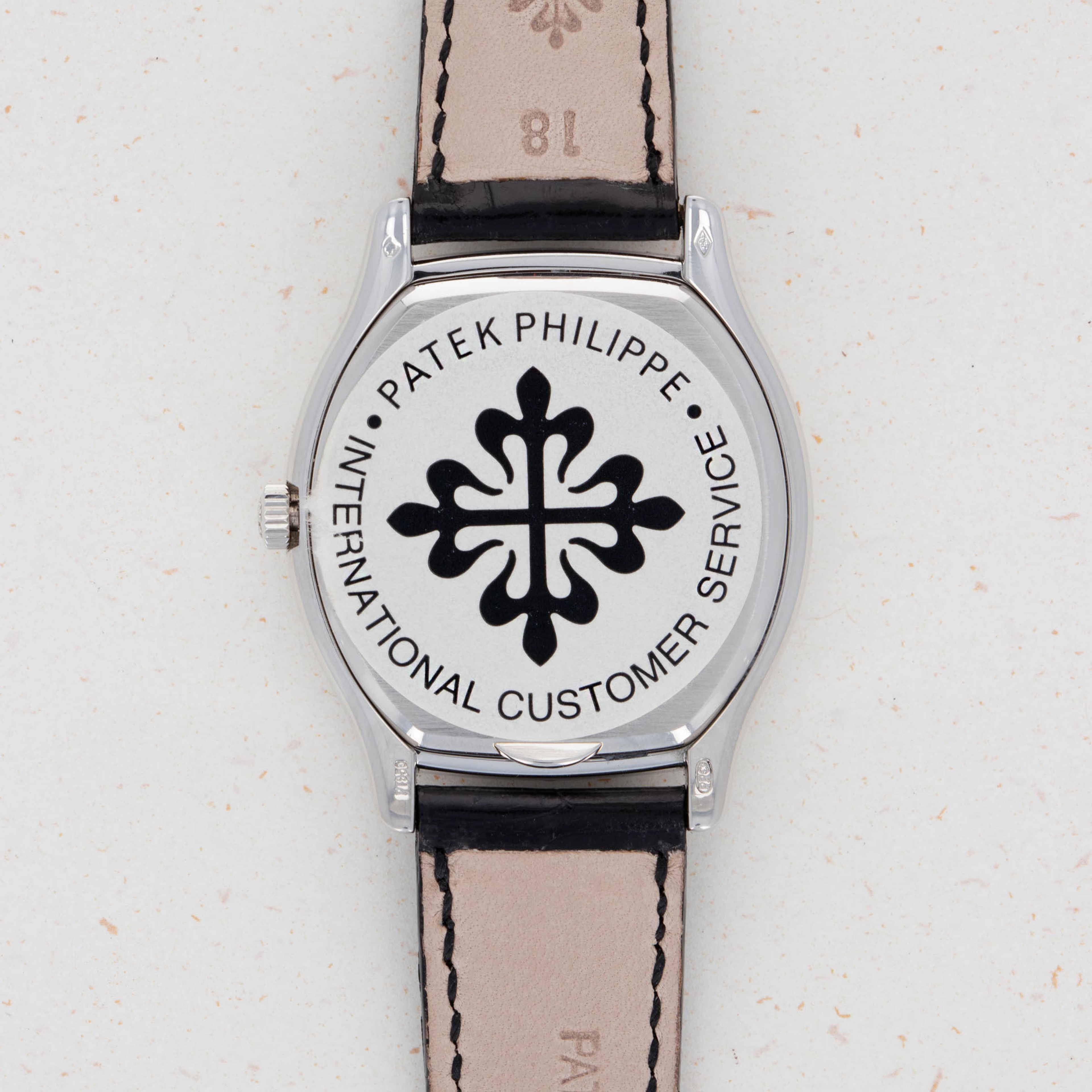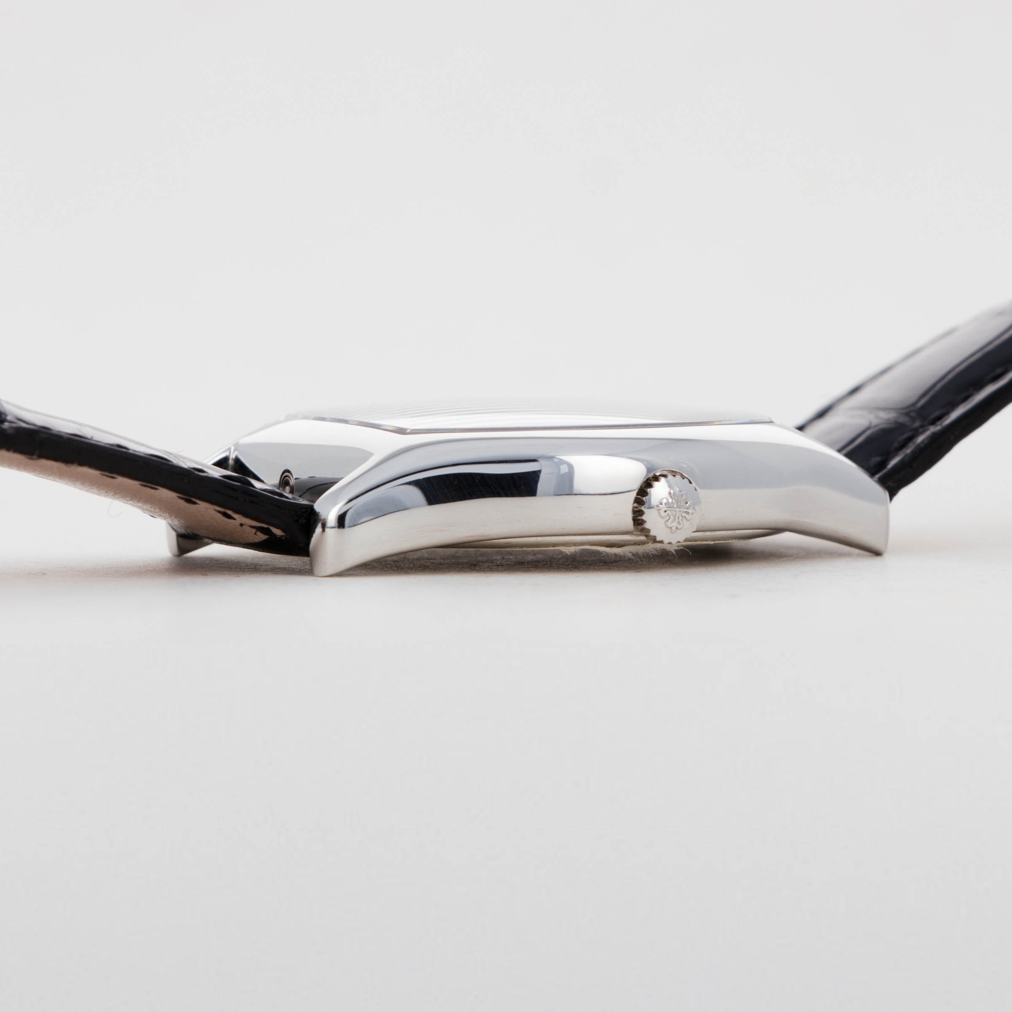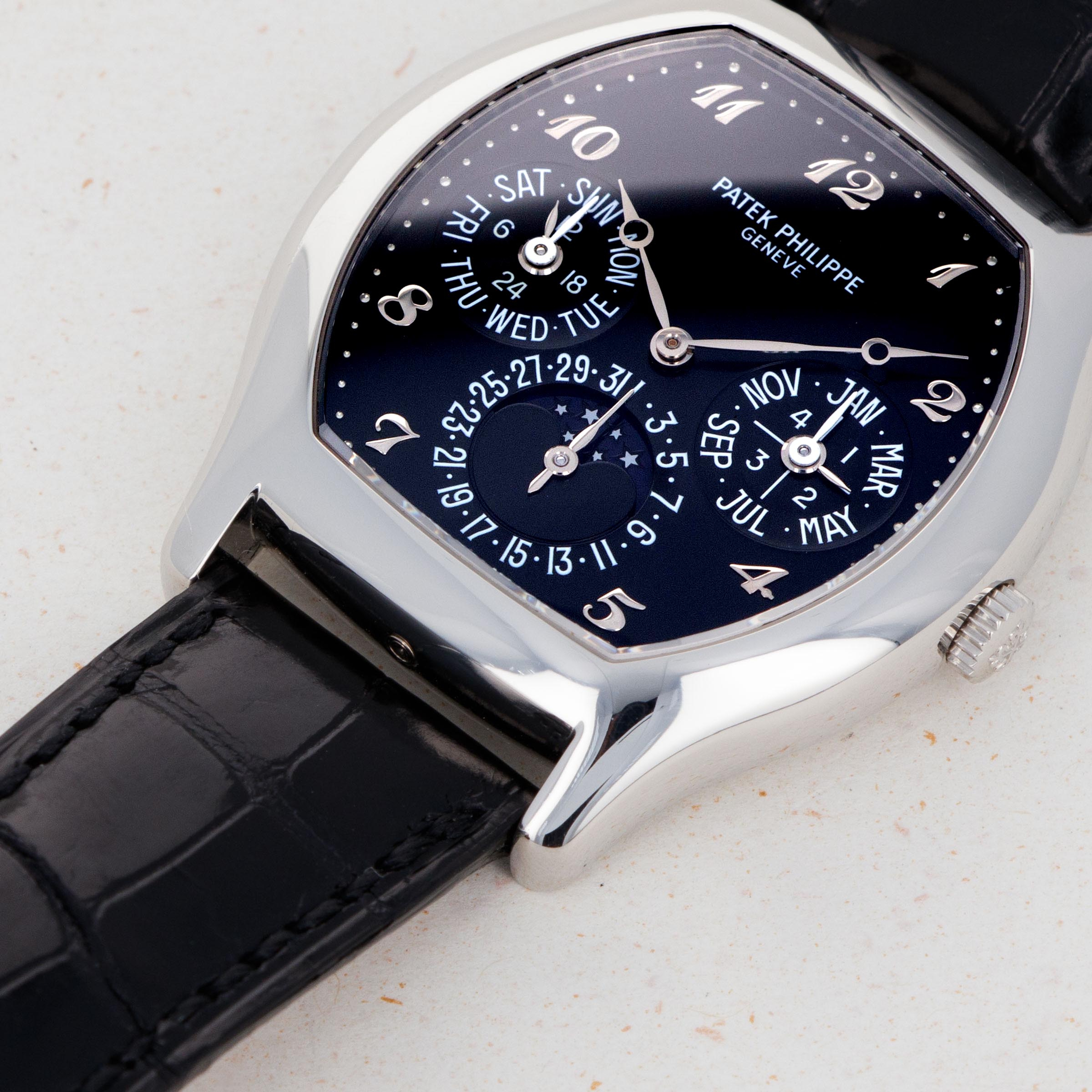 The first Patek Philippe to sport a tonneau-shaped case, the 5040P's platinum case is entirely wearable and incredibly comfortable for most wrist sizes.