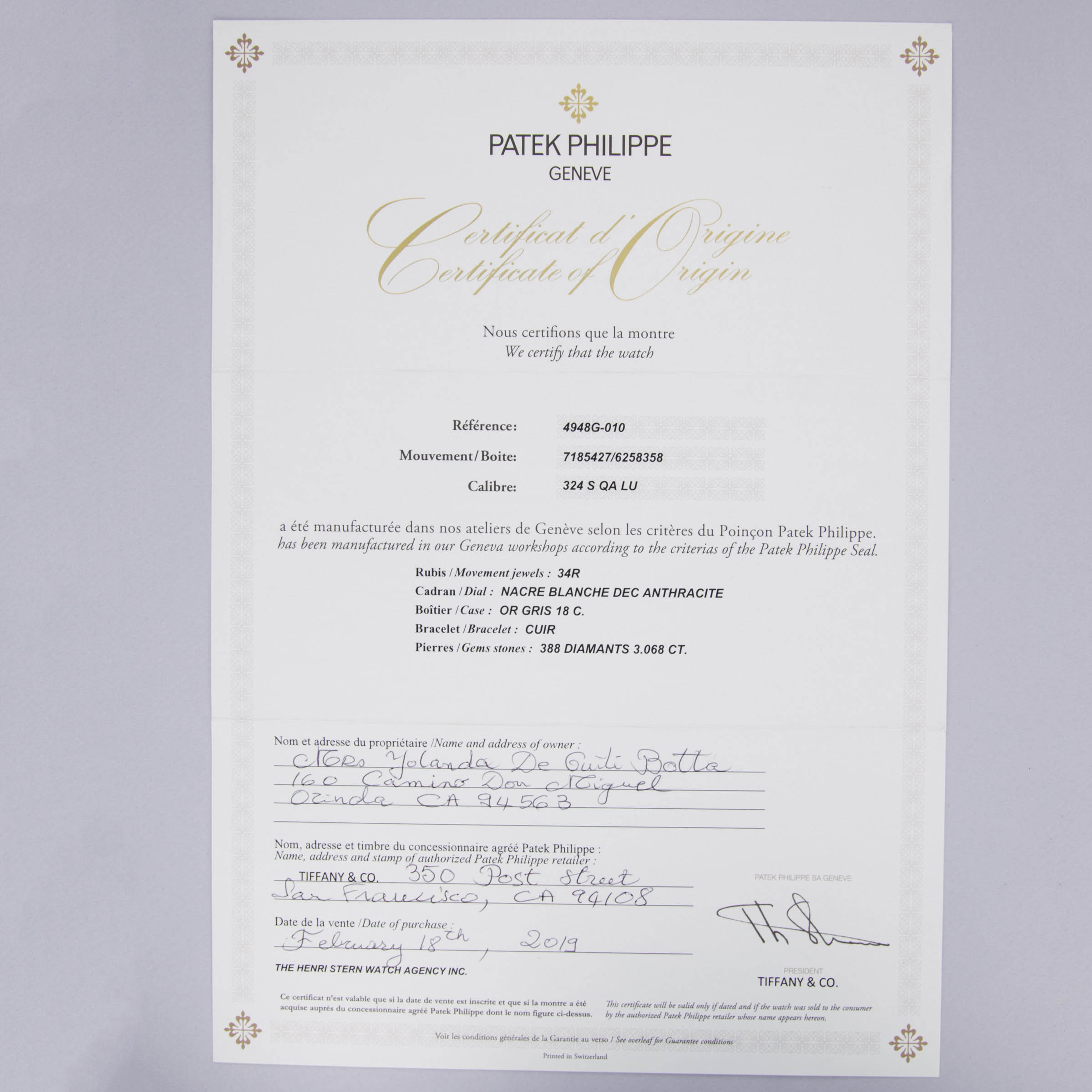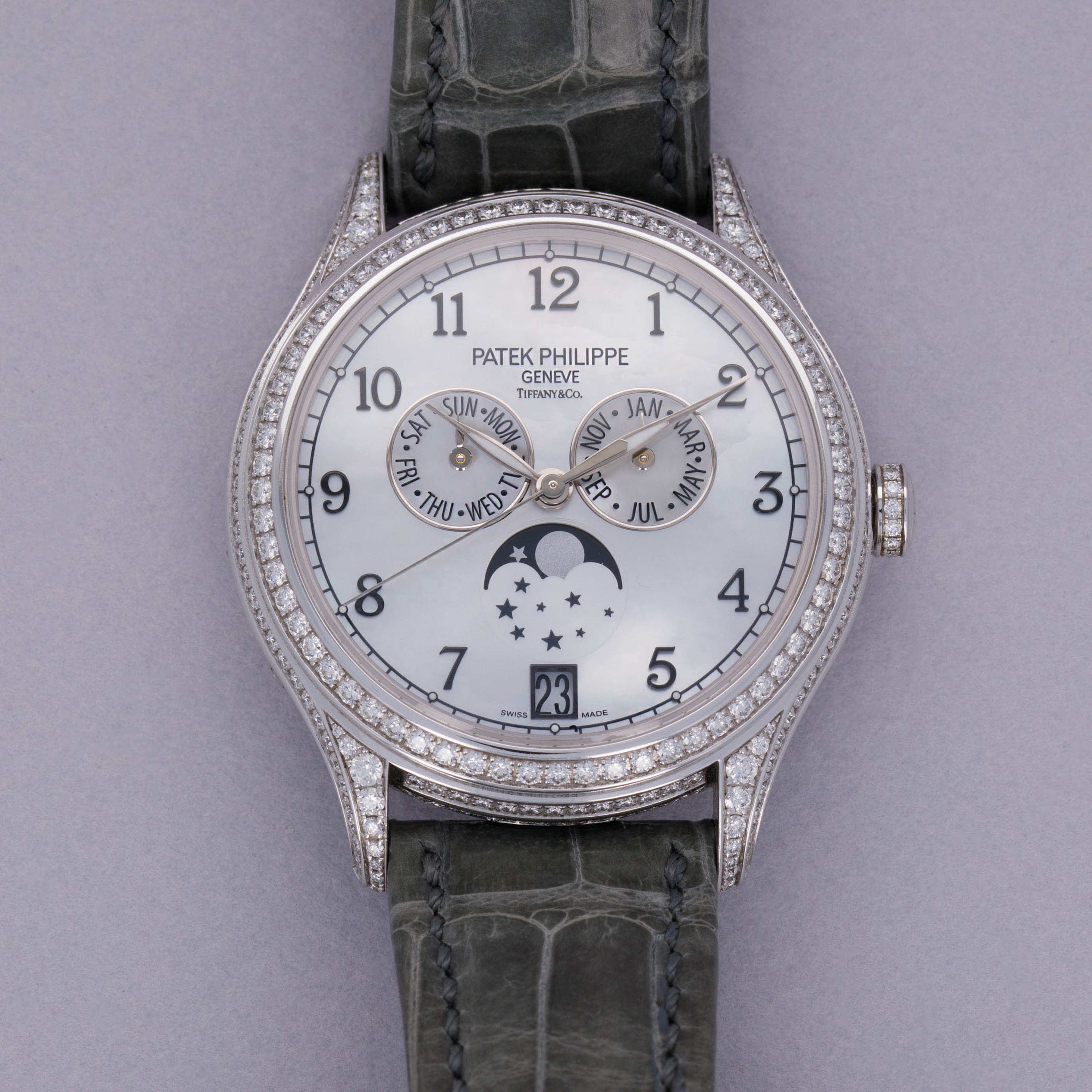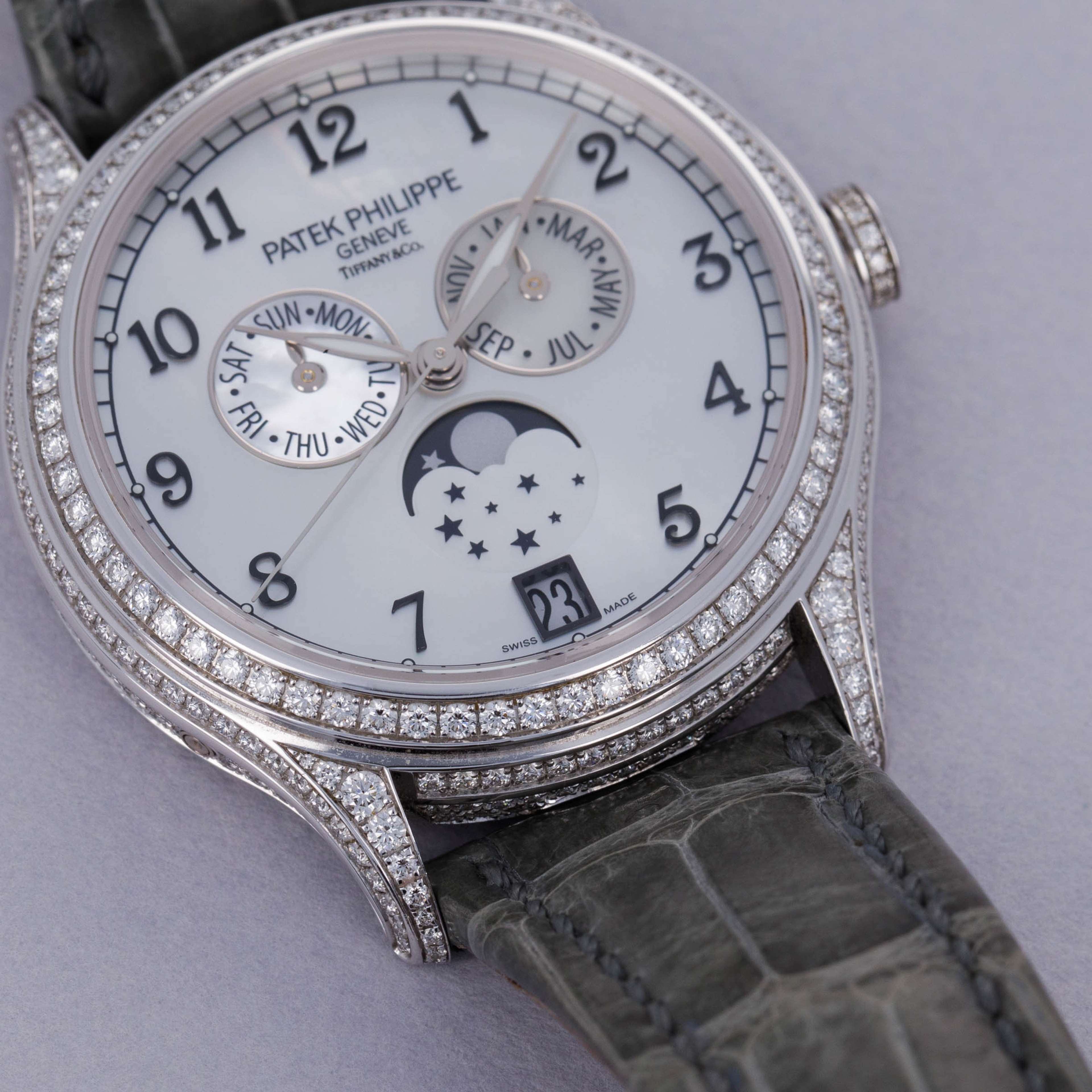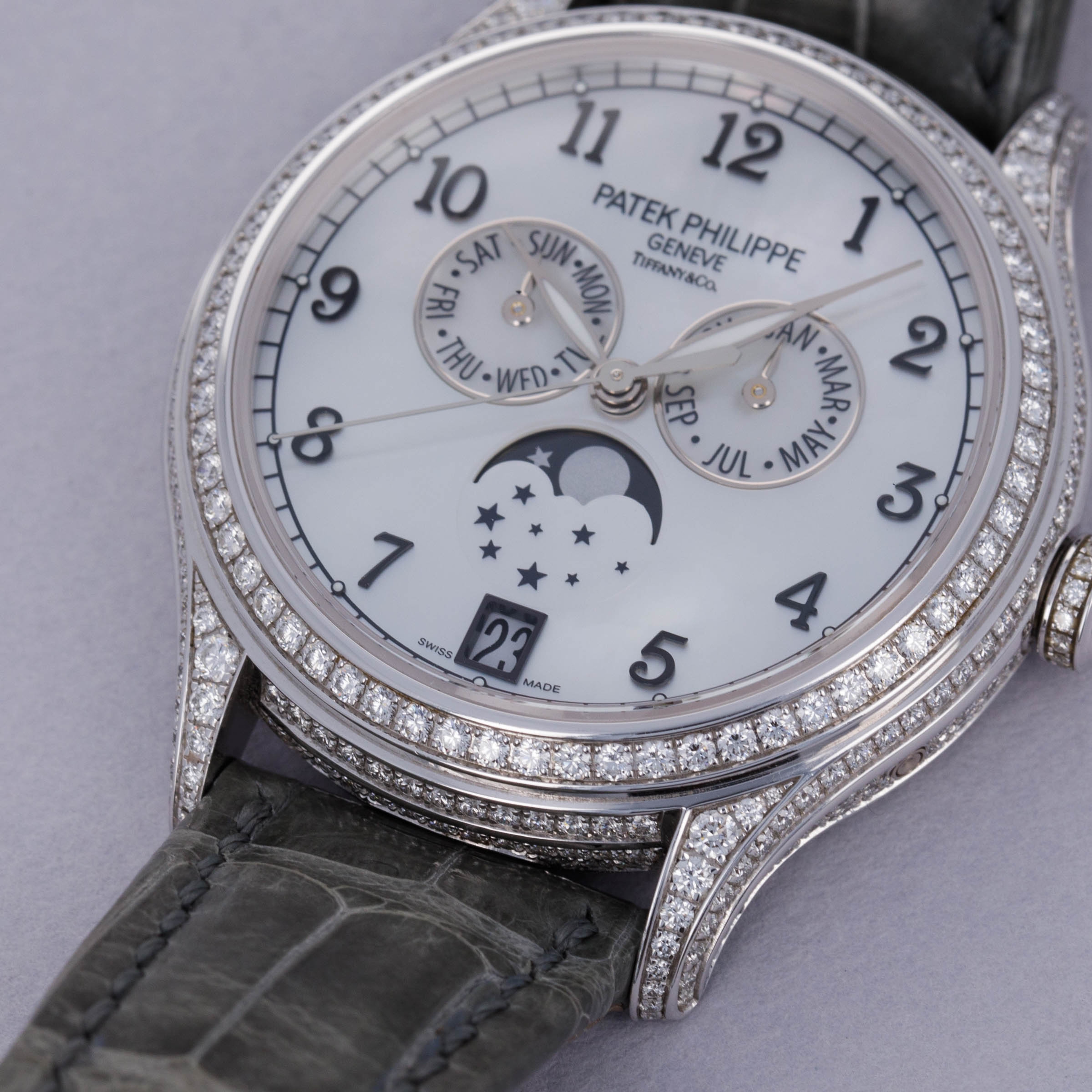 Patek Philippe Annual Calendar 4948G-010 Diamond Case MOP Dial Retailed by Tiffany & Co.