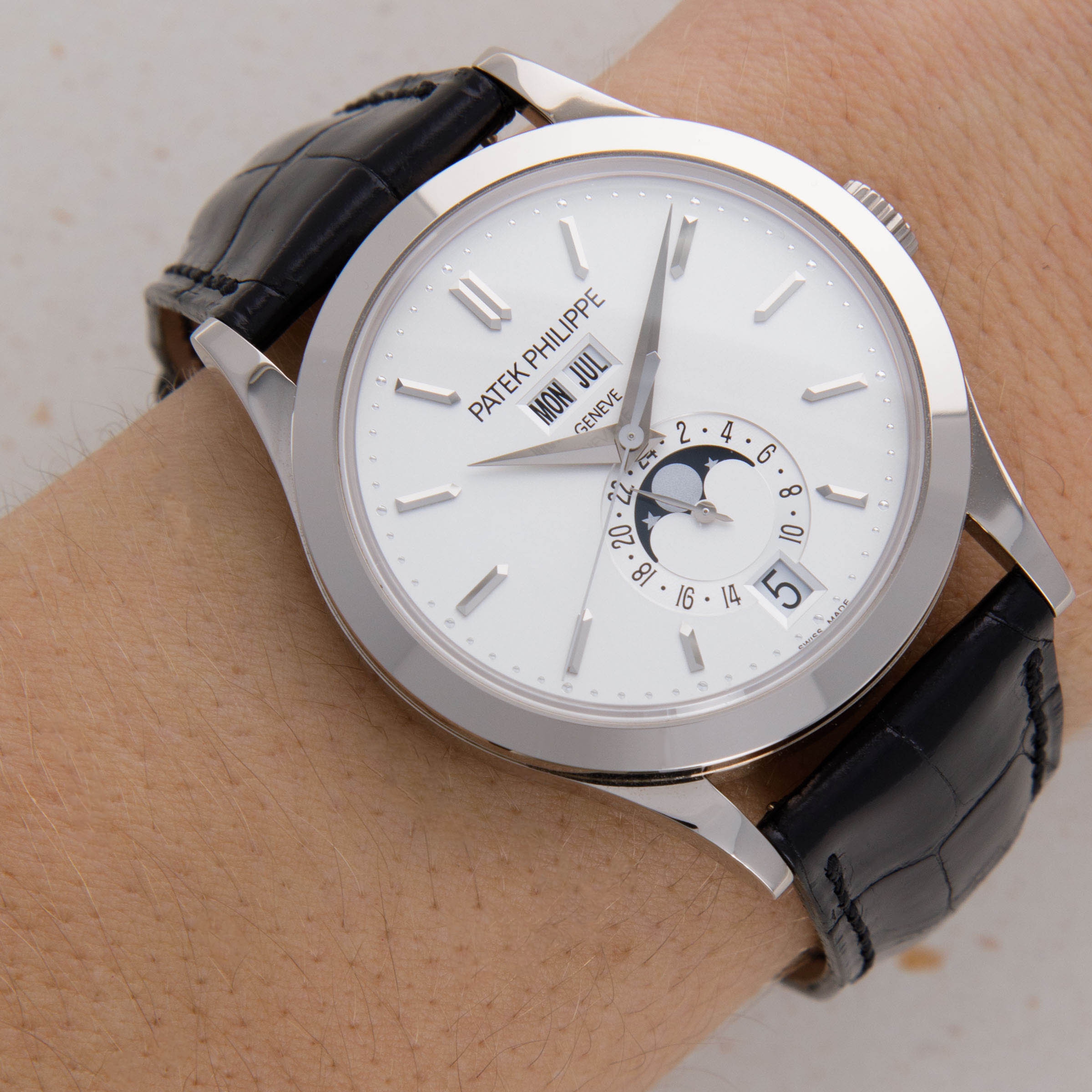 Purposefully designed as an understated timepiece, the ref. 5396G features a Calatrava-style case with the collection's signature flat bezel and small crown that allow it to sit on the wrist just like how a traditional time-only dress watch should.