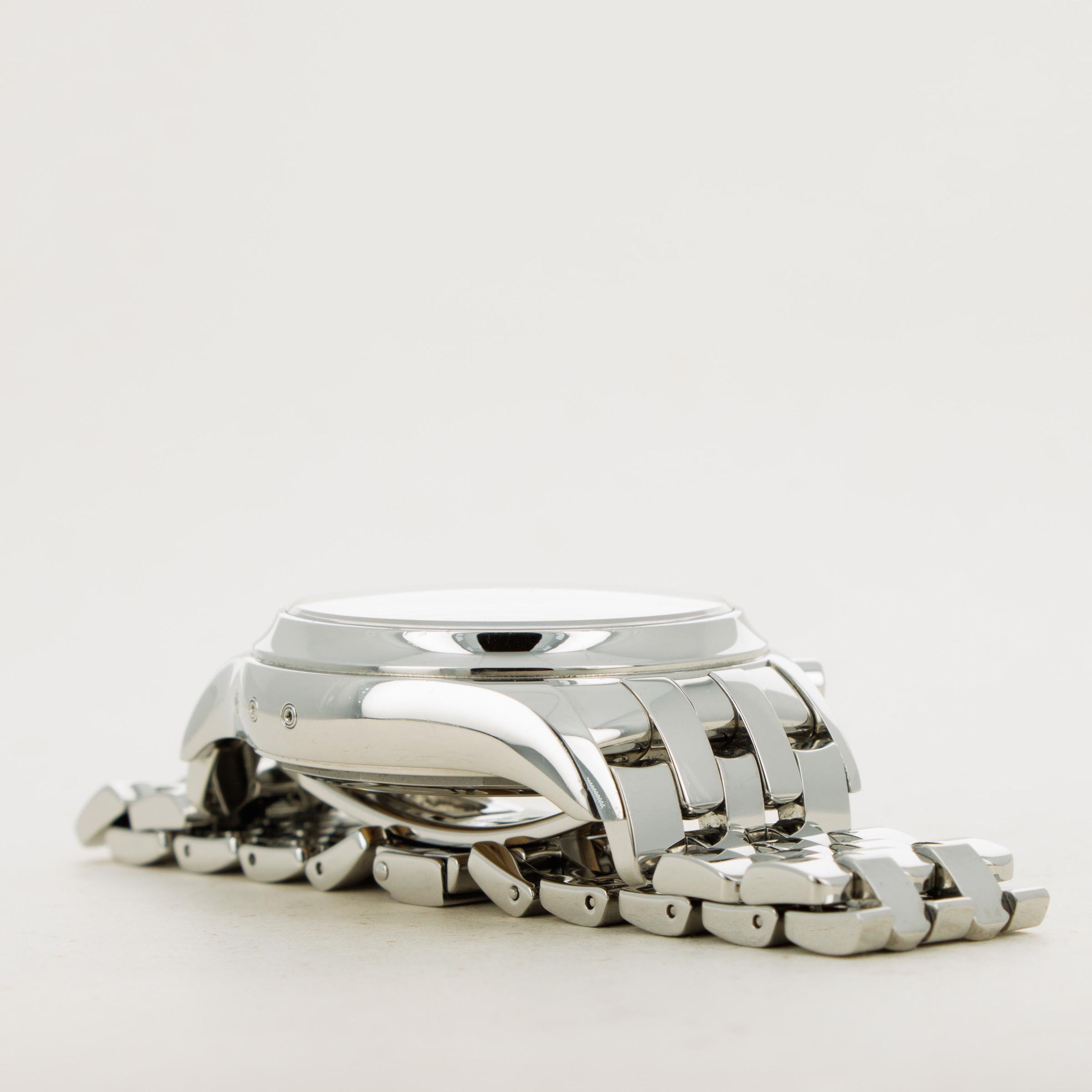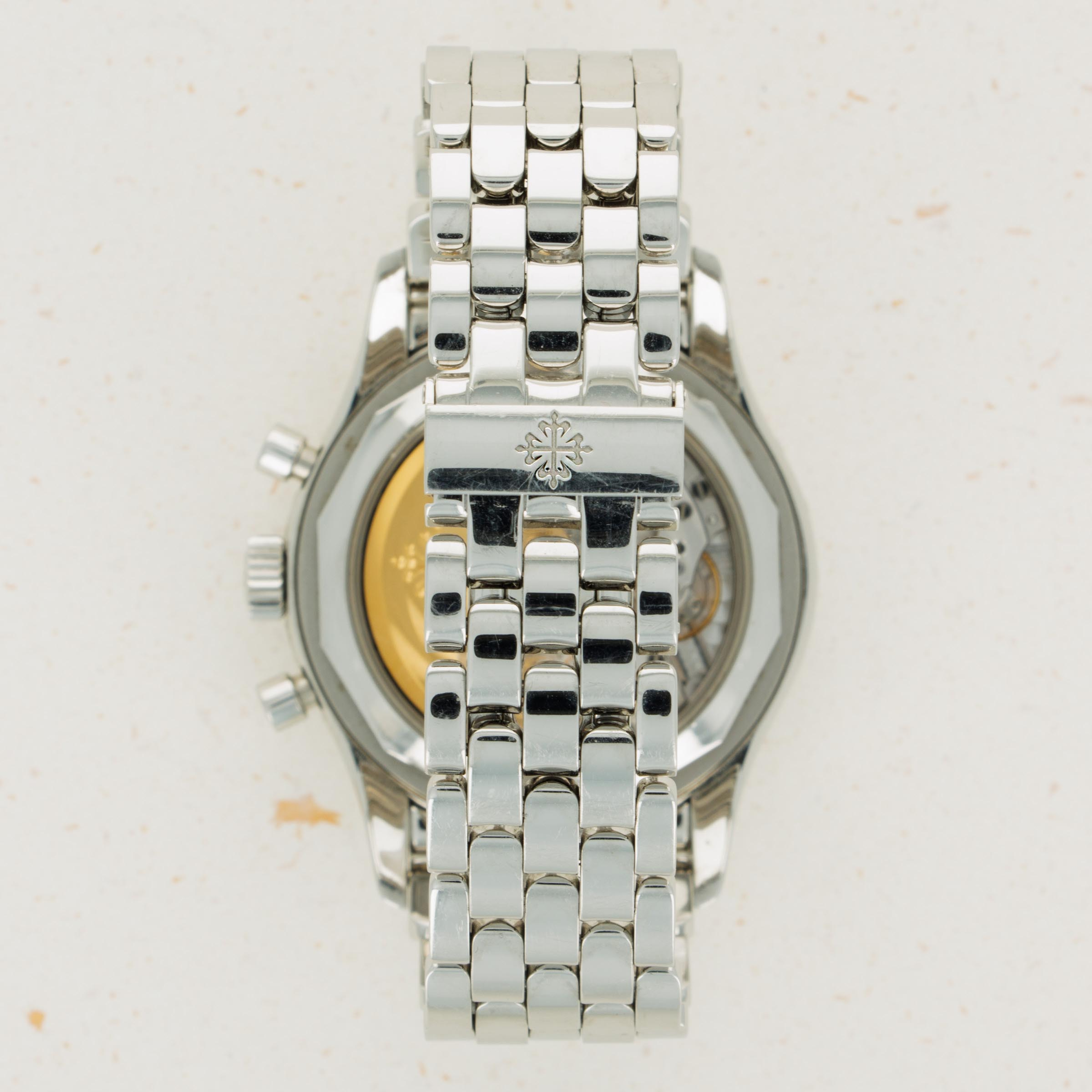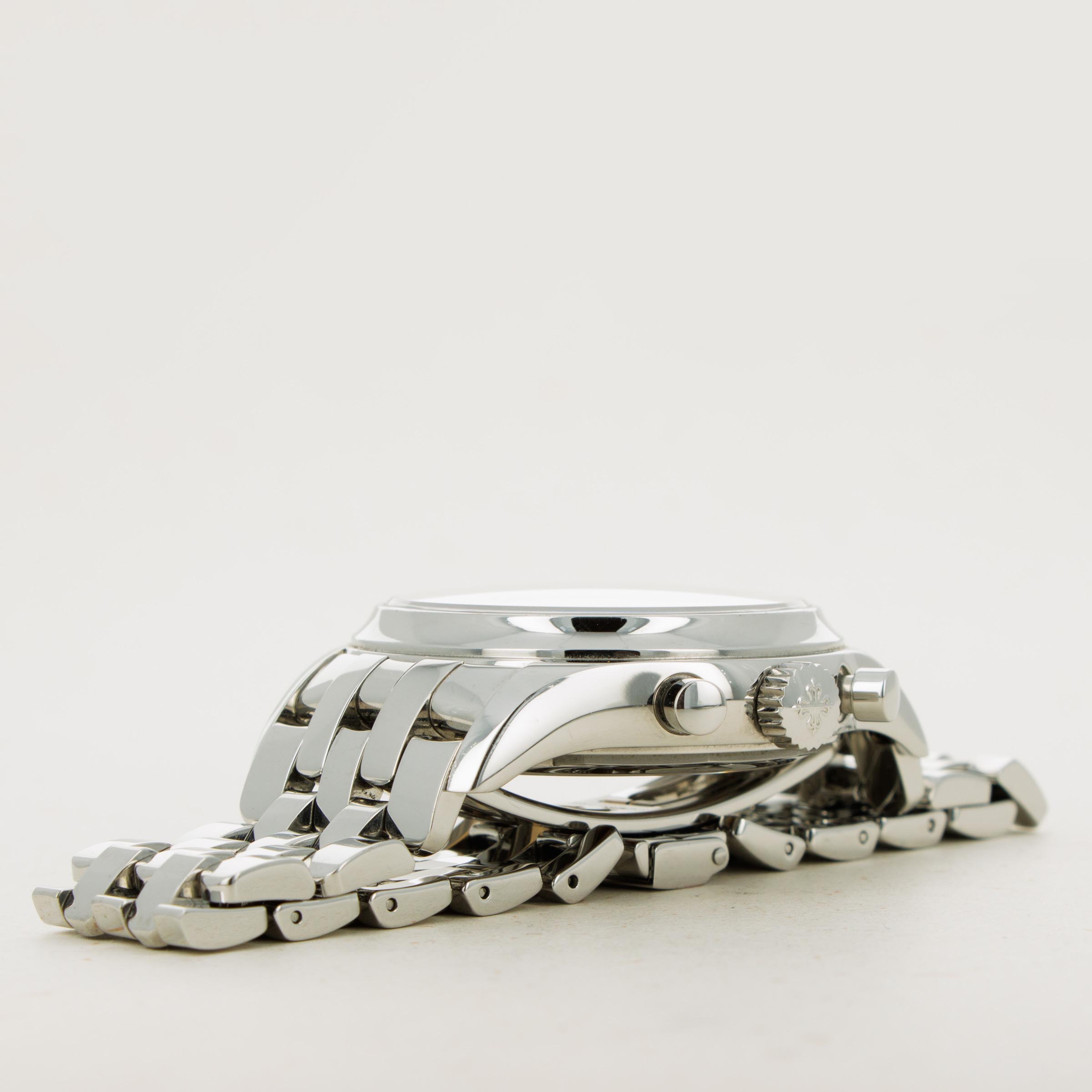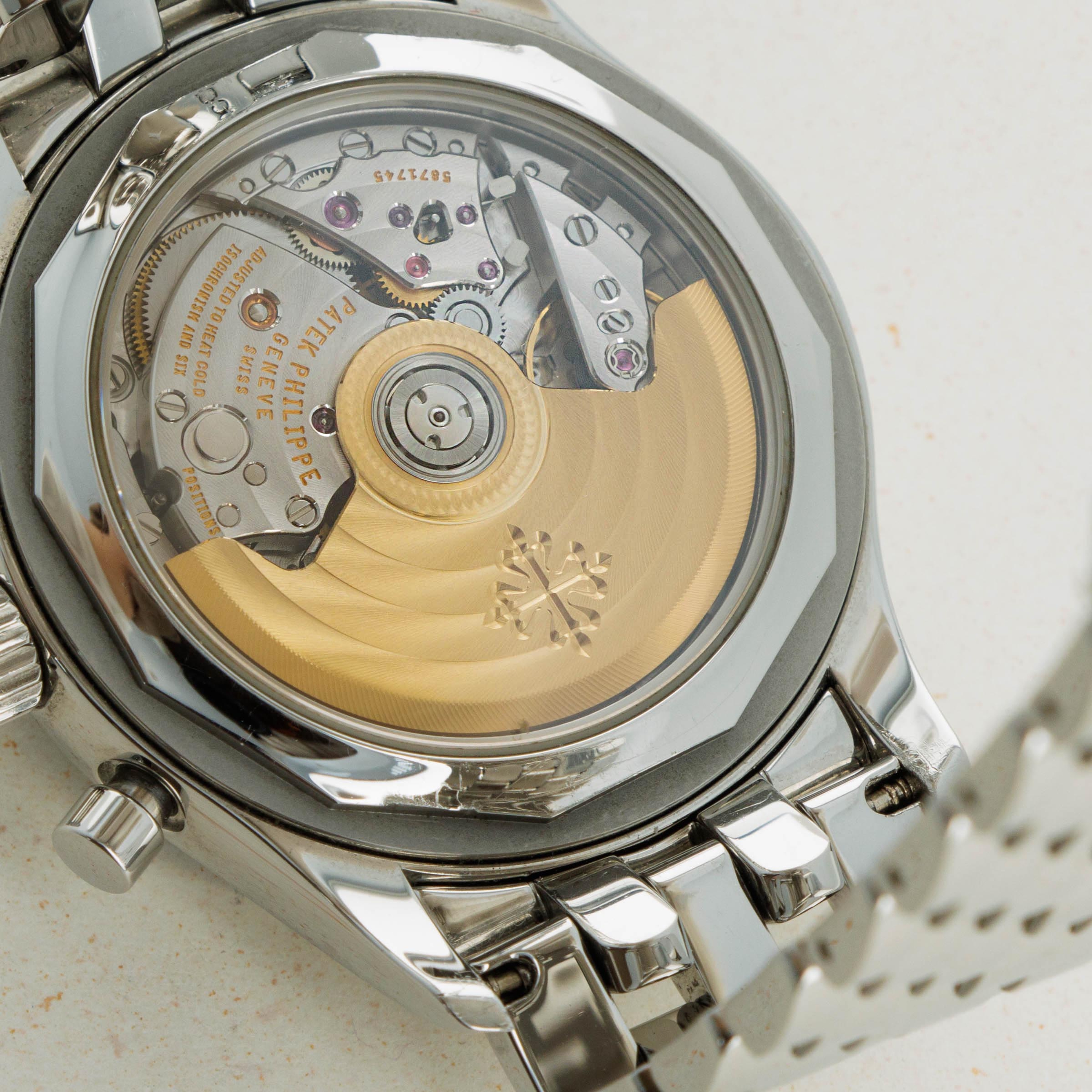 Made of stainless steel and boasting only entirely polished surfaces, the ref. 5960 features a striking design that perfectly compliments its intricate construction.