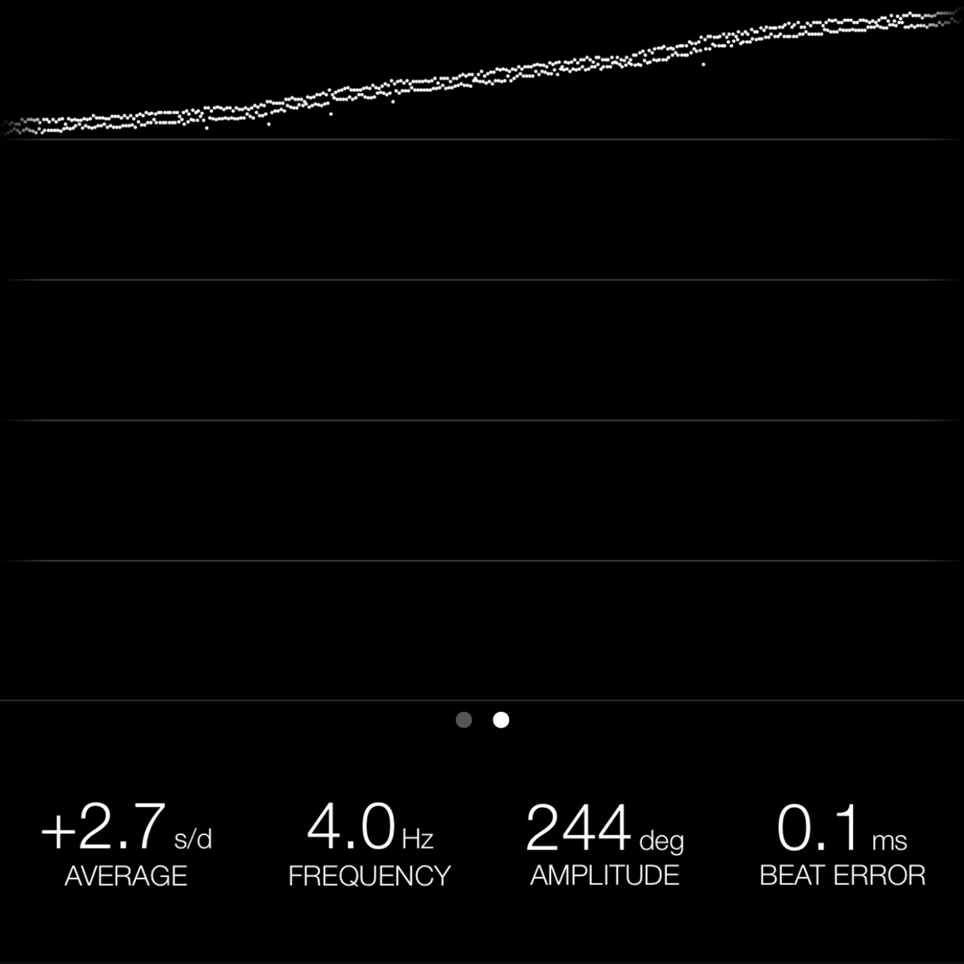 This reading was taken (crown down) with a ONEOF Accuracy Boutique Edition timing machine at time of cataloging. It is provided as a courtesy only, and shall not be construed as a warranty or guarantee of any kind. Please refer to our terms and conditions of sale for more information.