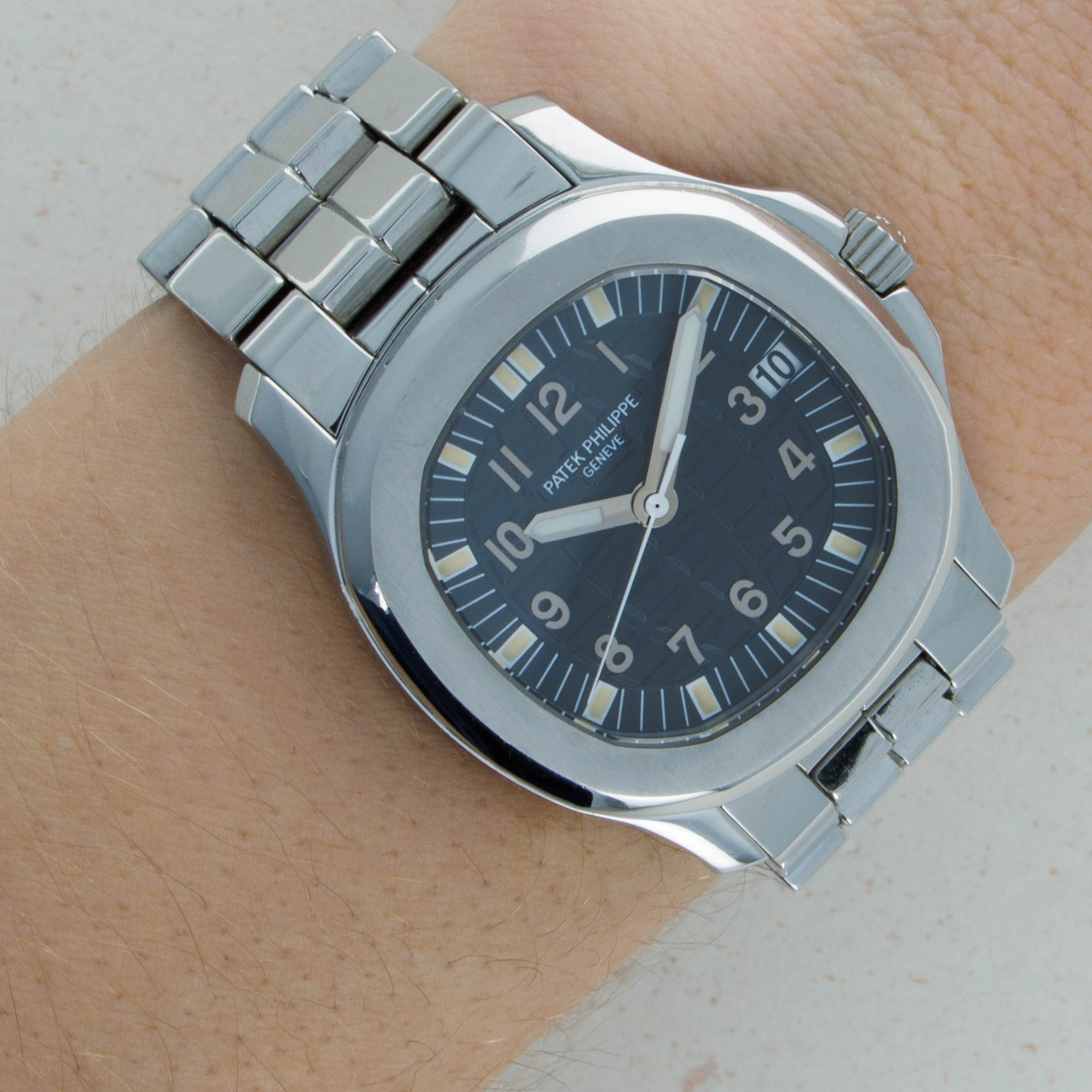 Measuring 36mm in diameter, the ref. 5066A features the same rounded octagonal stainless steel case design as the initial limited-edition Aquanaut reference, the ref. 5060A - a perfectly wearable size for men and women in today's context. However, with its stainless steel bracelet, this example gives the impression that it looks slightly larger than its more common rubber strap-wearing siblings.