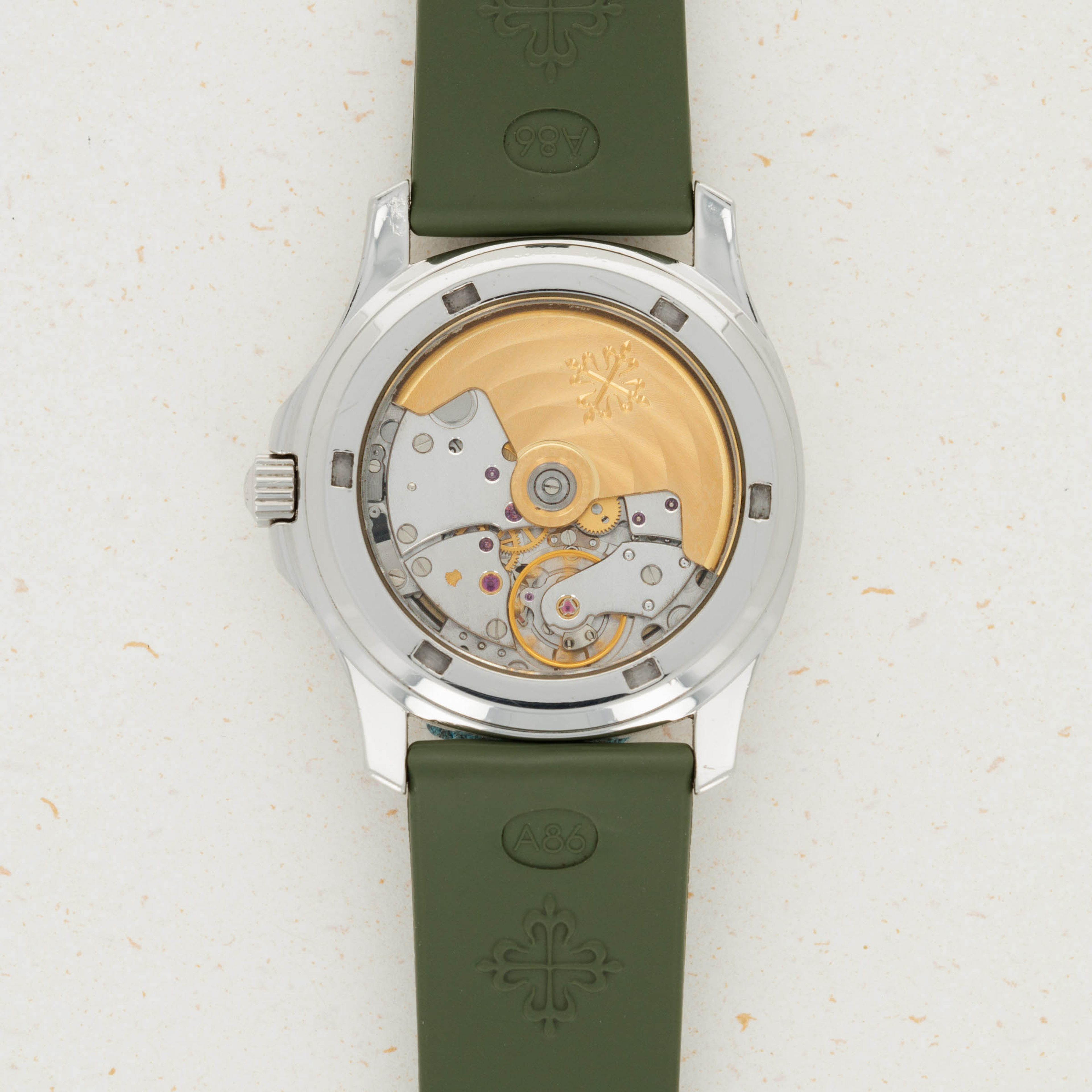 Debuting in 1997, the Patek Philippe Aquanaut was released to engage with a newly minted clientele with money in their pocket during the stock market explosion. Released under the same premise as the Nautilus when it was released in 1976, the Aquanaut was a trendy watch that broke from traditional Patek Philippe aesthetic stylings. Featuring a first for Patek with its composite strap, the Aquanaut needed to be delicately launched. So it was first released as a limited-edition offering of 1000 pieces with the ref. 5060A. Thanks to its success, in 1998, the year following, Patek launched a new variant of the Aquanaut, the ref. 5066A, which is what we have here. Featuring the same 36mm stainless steel case and the same automatic cal. 330 SC movement as the ref. 5060A, the ref. 5066A is very similar to its predecessor, yet it introduces a sapphire crystal exhibition caseback to the collection. This allowed the 120m water-resistant Aquanaut ref. 5066A to become the most water-resistant timepiece to sport an exhibition caseback, an impressive feat for Patek Philippe considering their pedigree was in complicated classical timepieces, not sports watches. An icon of modern watchmaking, the Aquanaut has transcended horology, and with the ref. 5066A marking the beginning of its production as a serially-produced watch, it is a remarkably important and collectible reference.