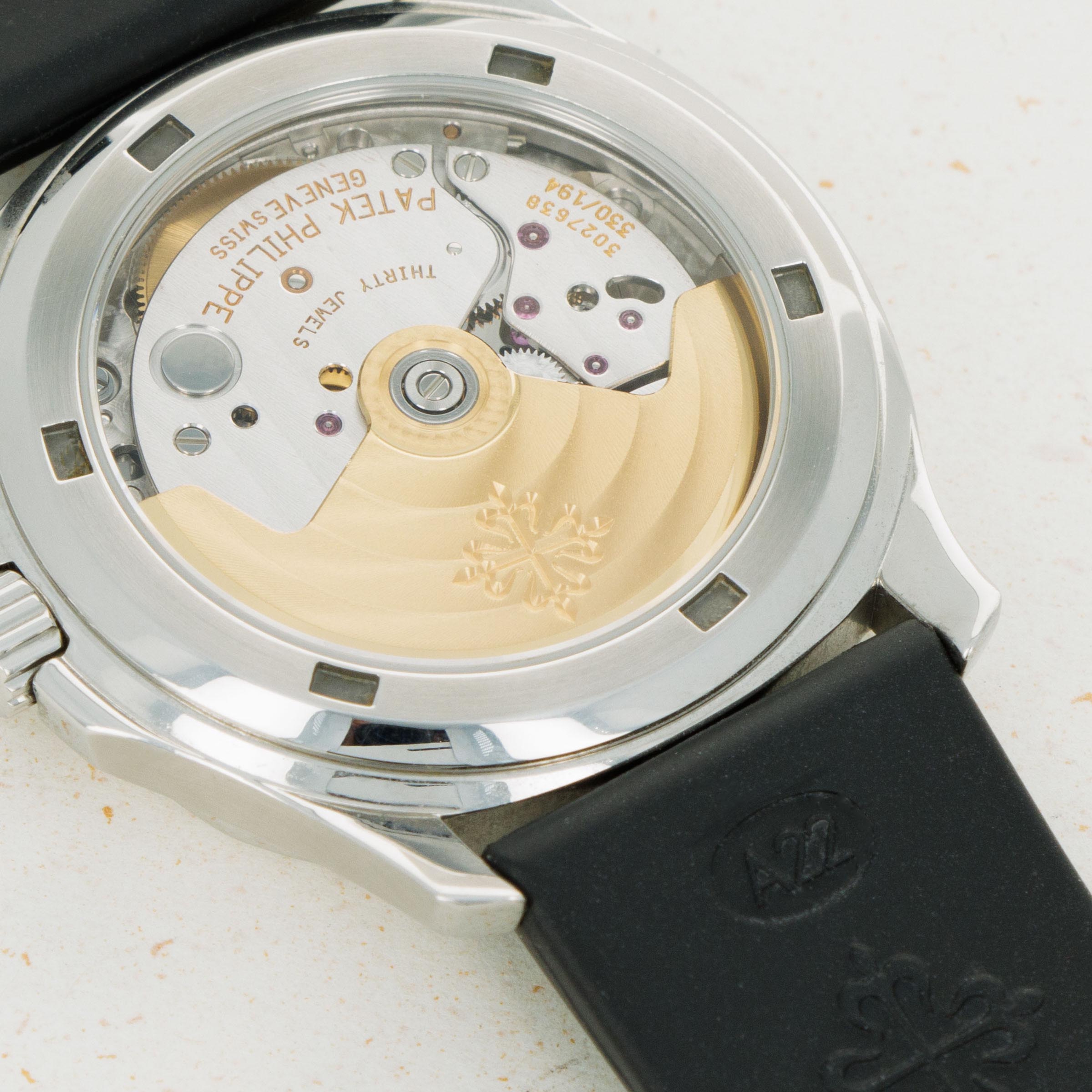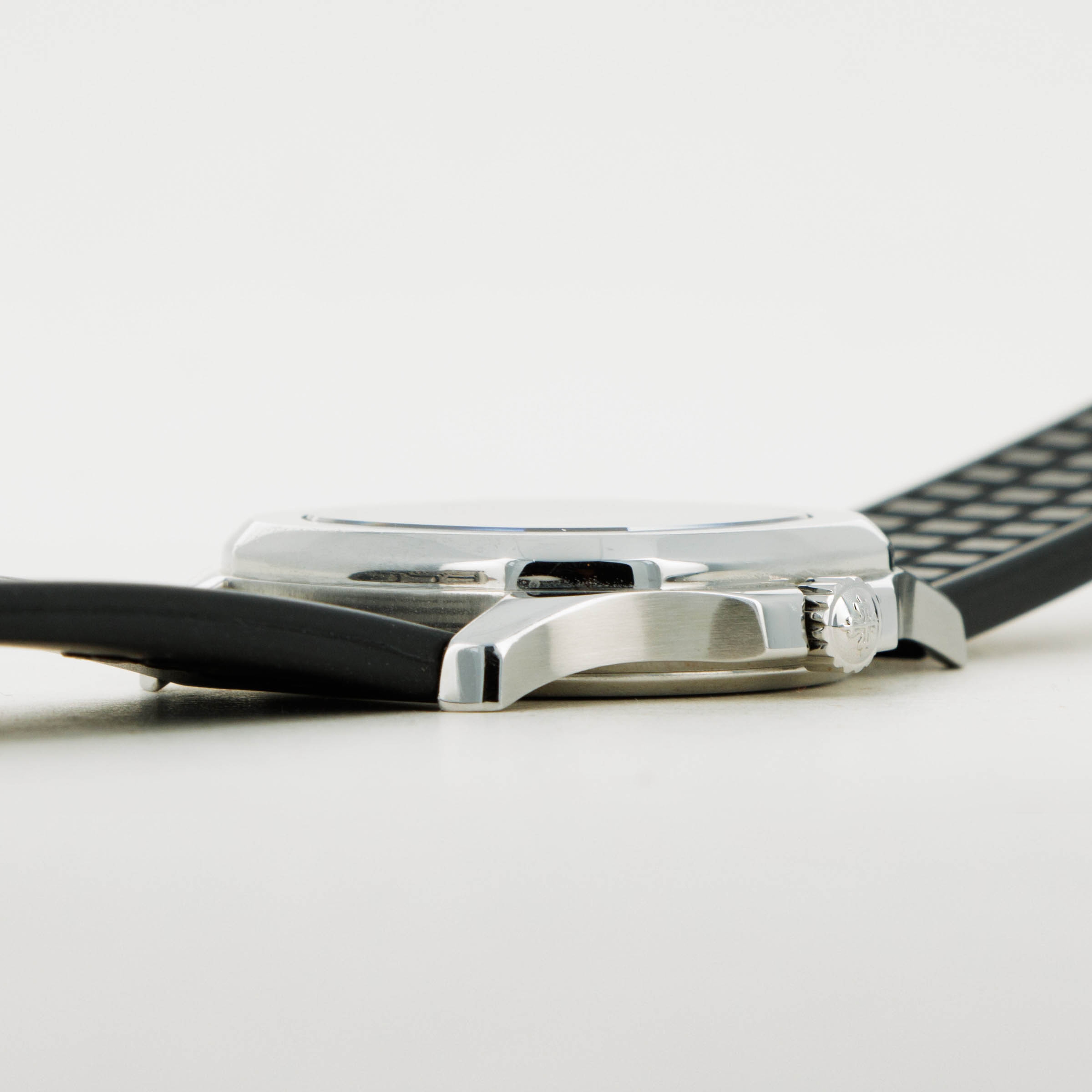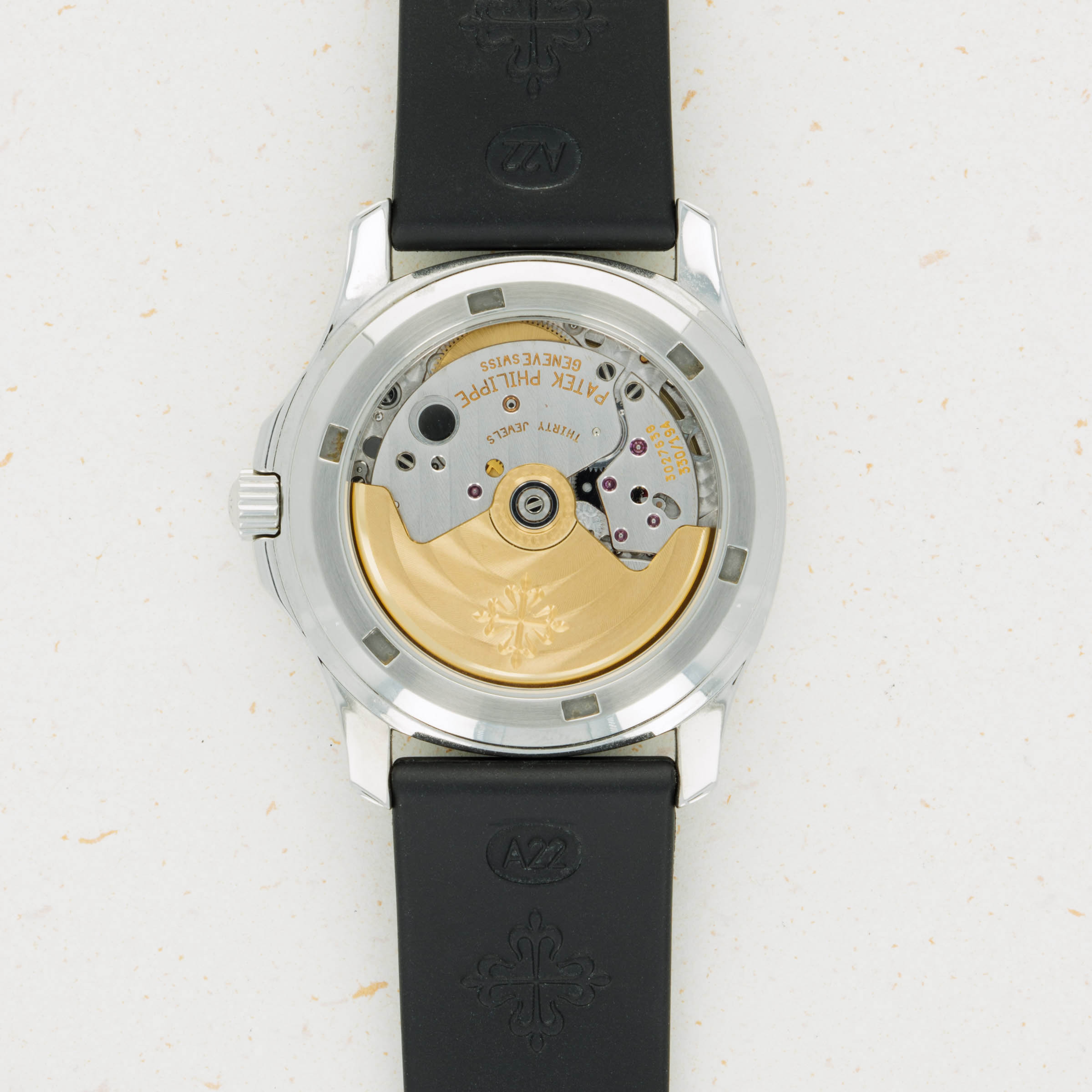 Debuting in 1997, the Patek Philippe Aquanaut was released to engage with a newly minted clientele with money in their pocket during the stock market explosion. Released under the same premise as the Nautilus when it was released in 1976, the Aquanaut was a trendy watch that broke from traditional Patek Philippe aesthetic stylings. Featuring a first for Patek with its composite strap, the Aquanaut needed to be delicately launched. So it was first released as a limited-edition offering of 1000 pieces with the ref. 5060A. Thanks to its success, in 1998, the year following, Patek launched a new variant of the Aquanaut, the ref. 5066A, which is what we have here. Featuring the same 36mm stainless steel case and the same automatic cal. 330 SC movement as the ref. 5060A, the ref. 5066A is very similar to its predecessor, yet it introduces a sapphire crystal exhibition caseback to the collection. This allowed the 120m water-resistant Aquanaut ref. 5066A to become the most water-resistant timepiece to sport an exhibition caseback, an impressive feat for Patek Philippe considering their pedigree was in complicated classical timepieces, not sports watches. An icon of modern watchmaking, the Aquanaut has transcended horology, and with the ref. 5066A marking the beginning of its production as a serially-produced watch, it is a remarkably important and collectible reference.