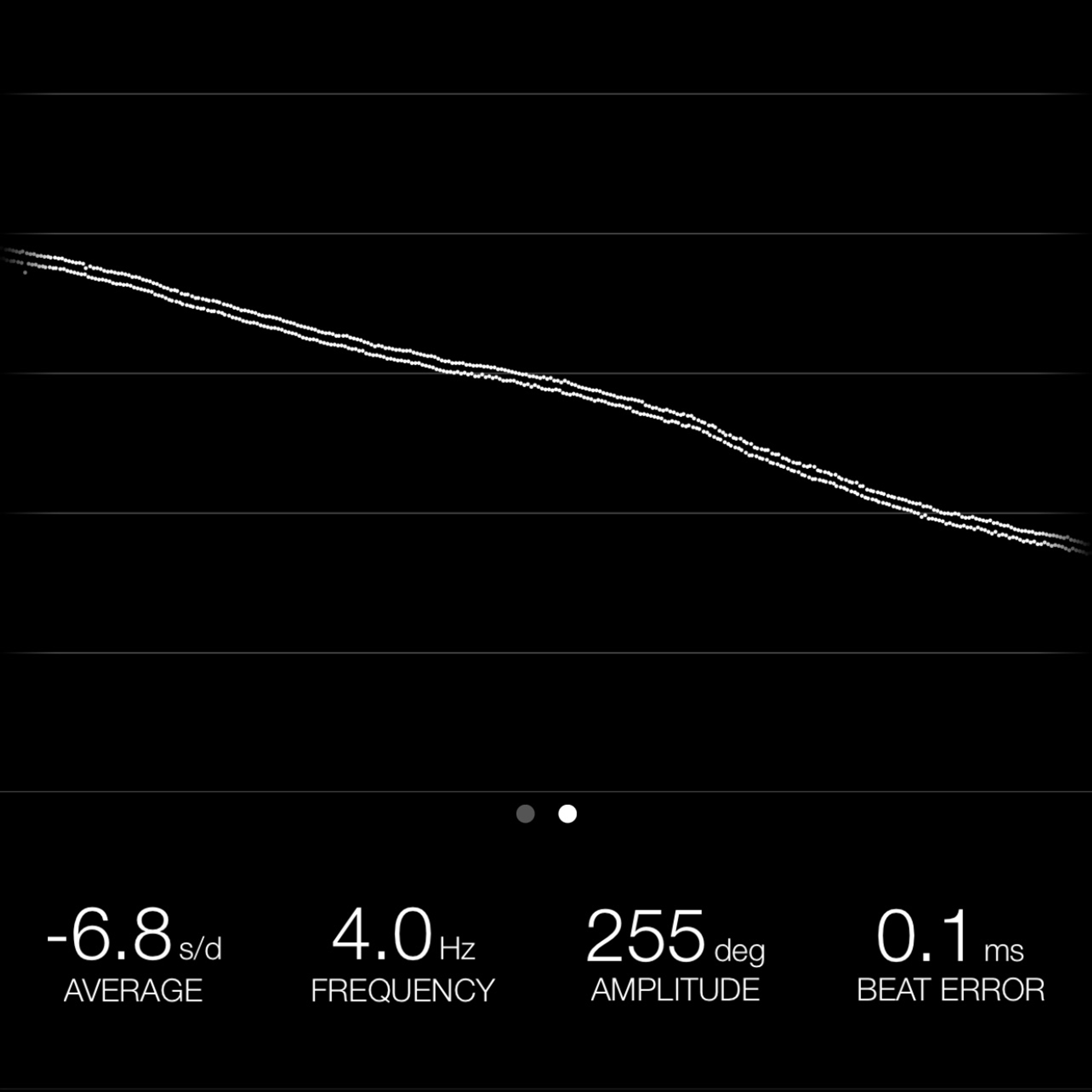 This reading was taken (crown down) with a ONEOF Accuracy Boutique Edition timing machine at time of cataloging. It is provided as a courtesy only, and shall not be construed as a warranty or guarantee of any kind. Please refer to our terms and conditions of sale for more information.