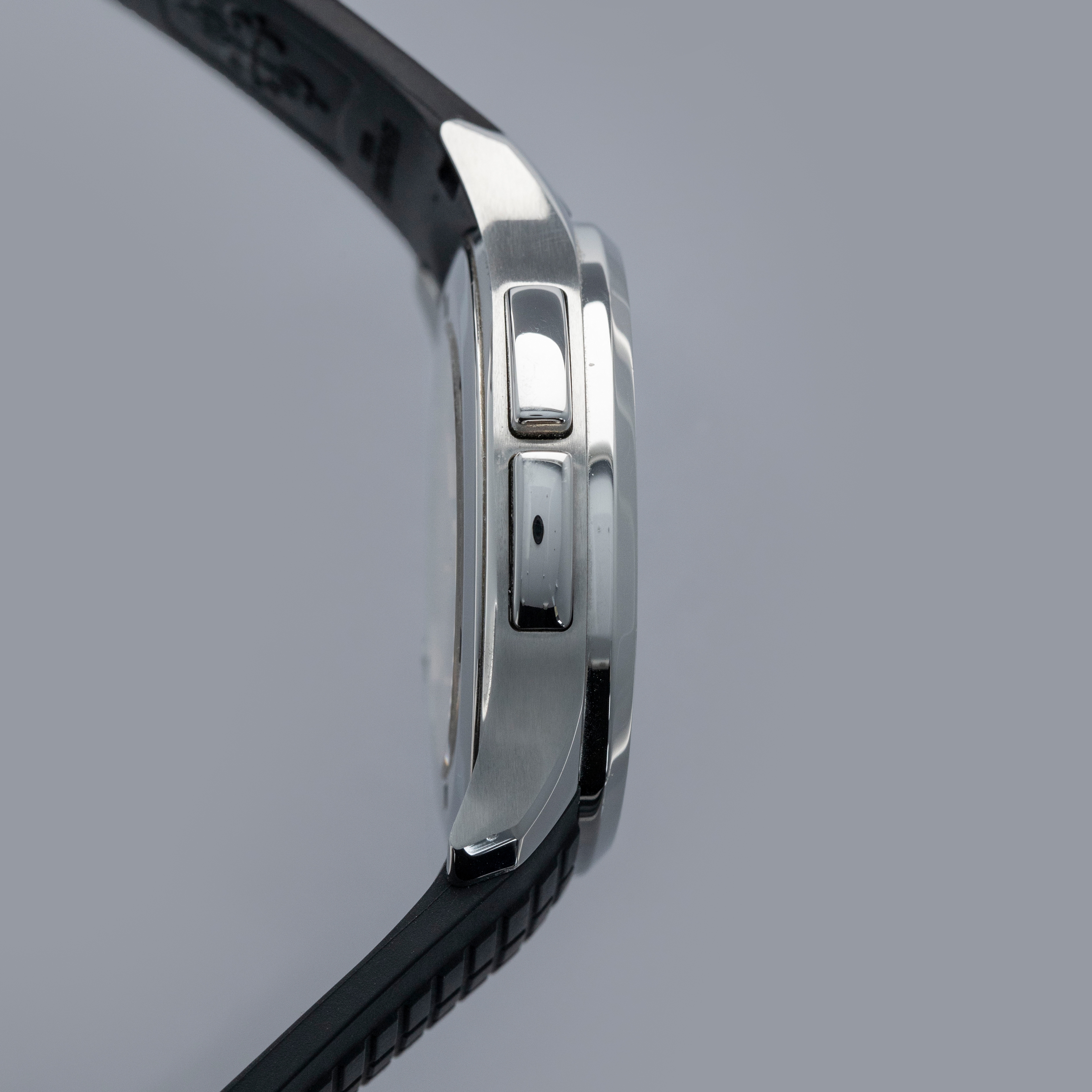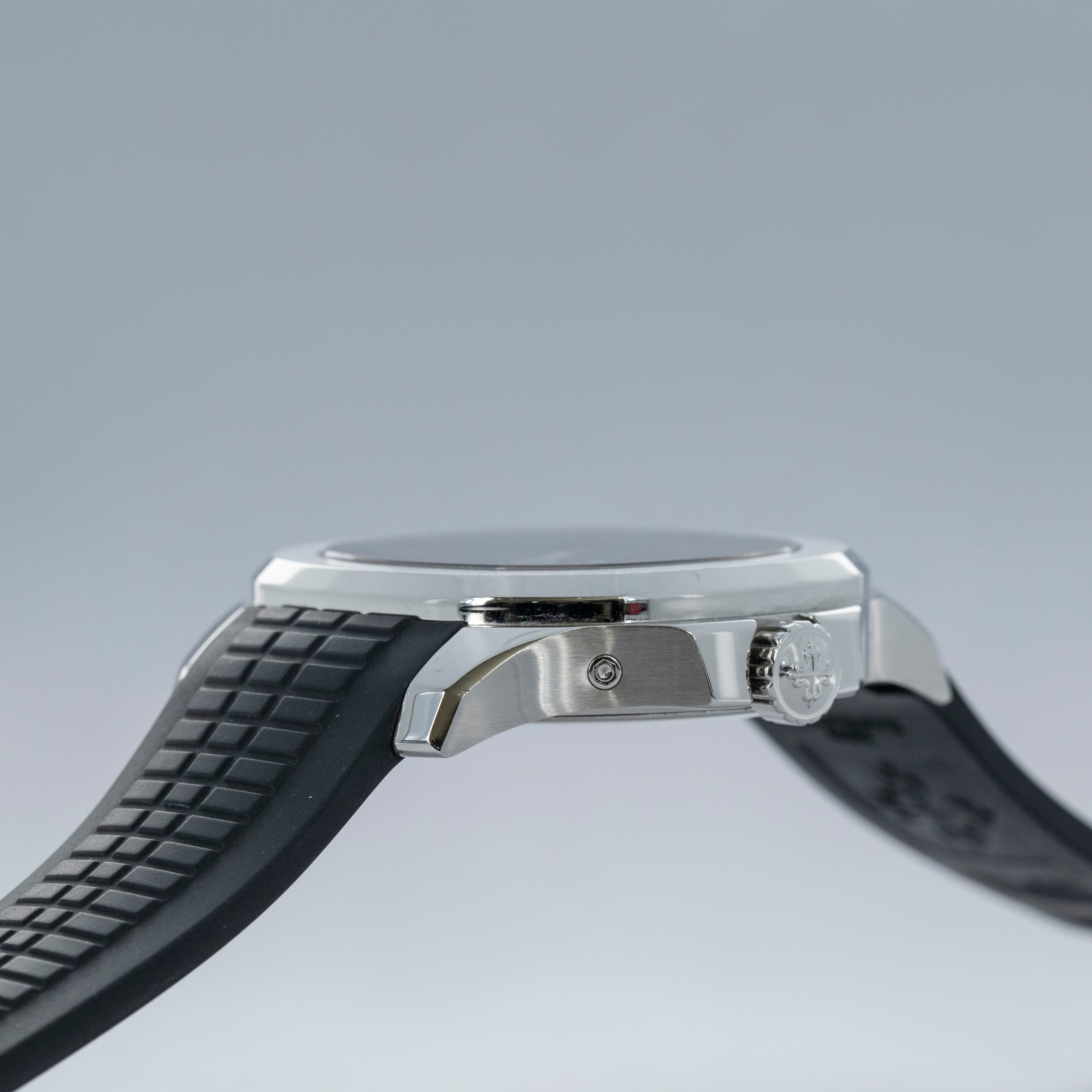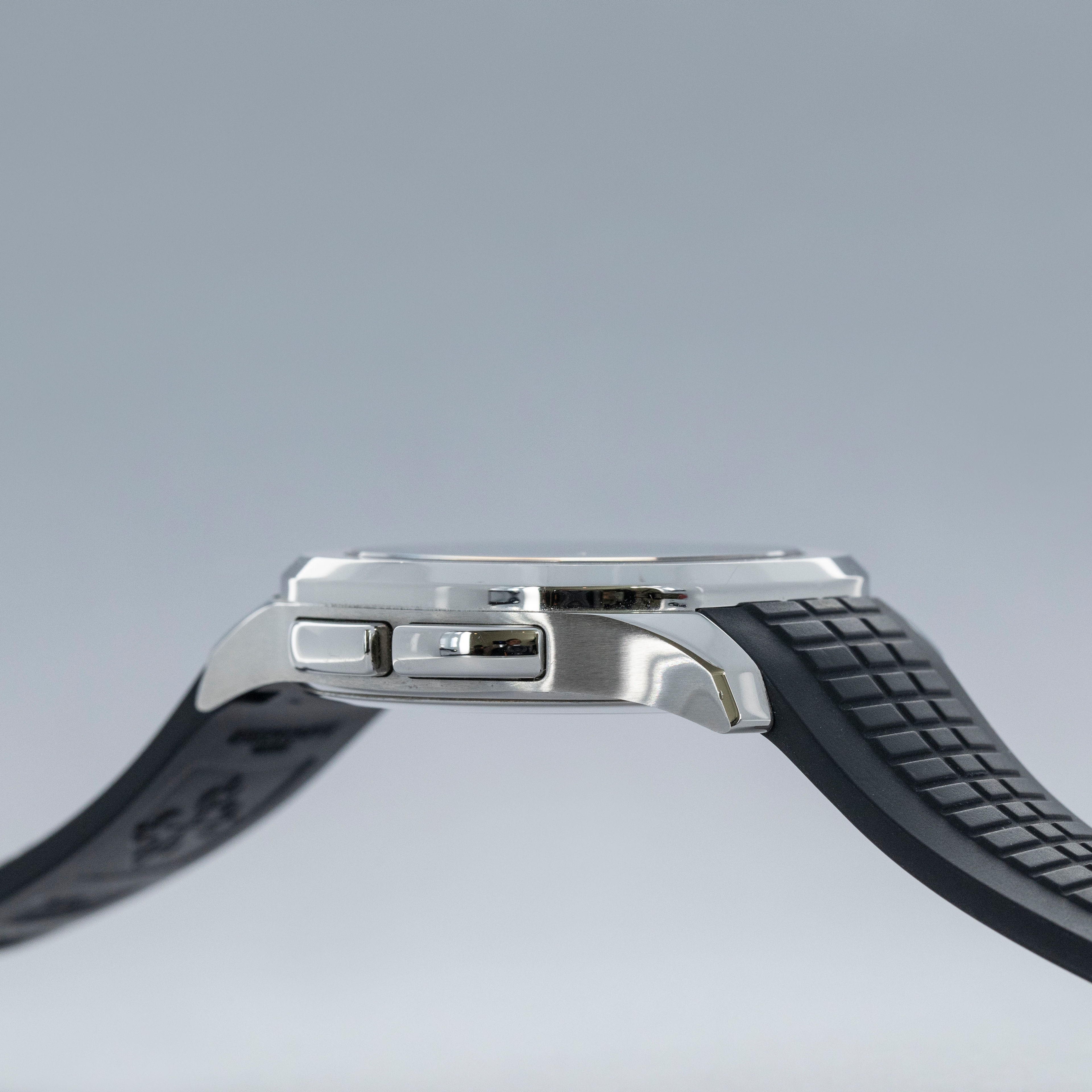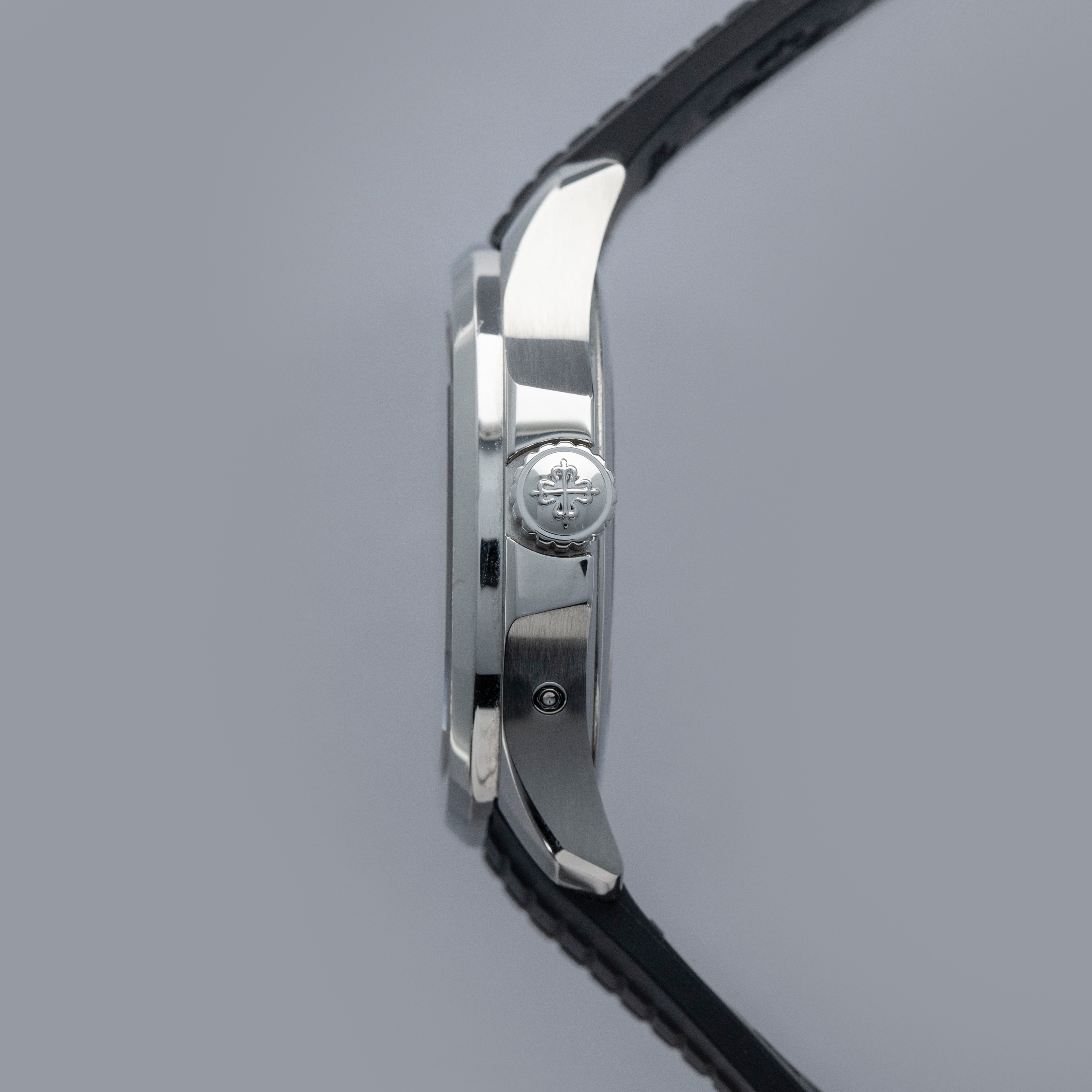 Made from stainless steel, the Aquanaut ref. 5164/1A's 40.8mm case features a softened octagonal bezel, like its sibling variants, but with dual pushers on its 9 o'clock side to conveniently operate the ghost dual-time hand forward and backward an hour.