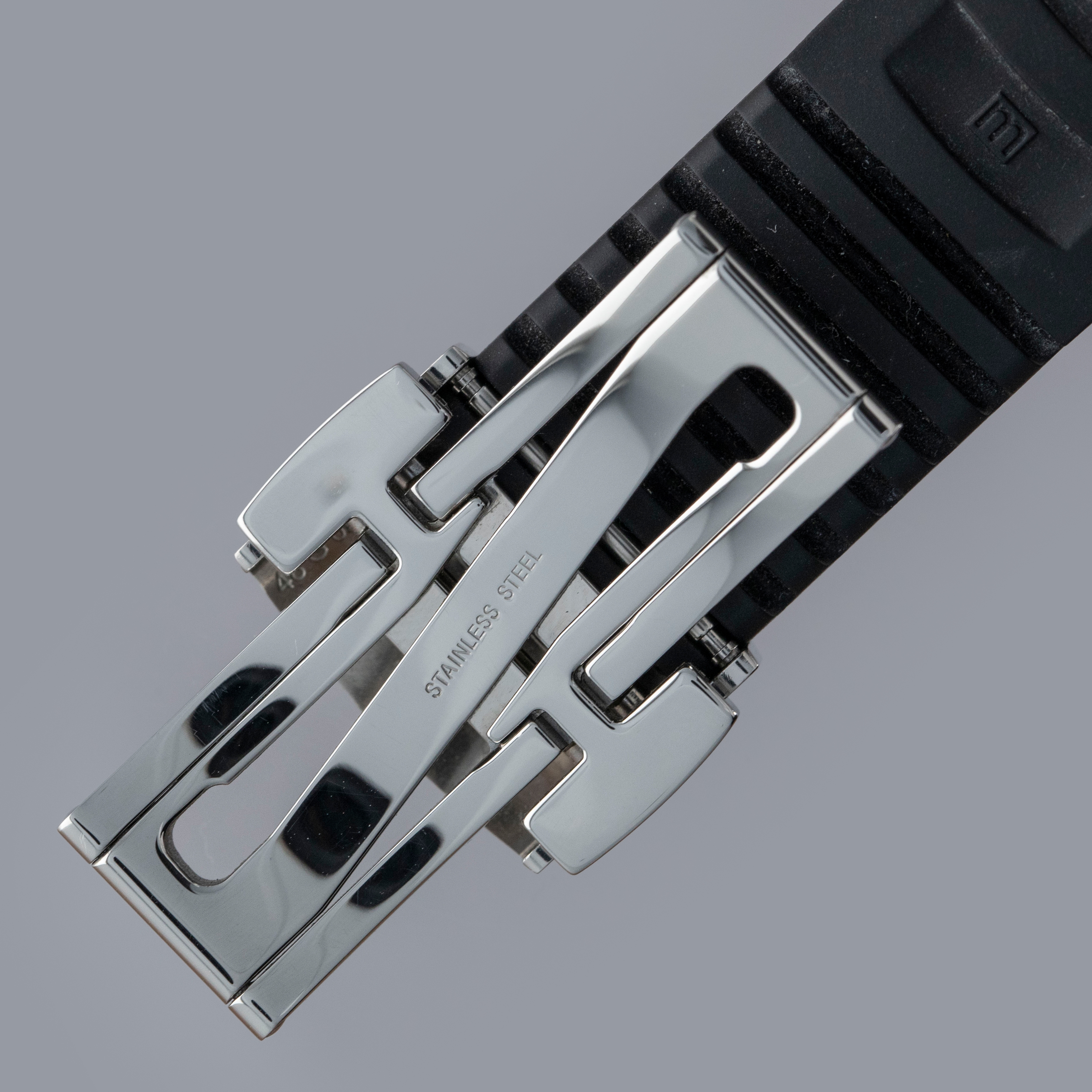Black polymer material with steel Aquanaut fold-over clasp
