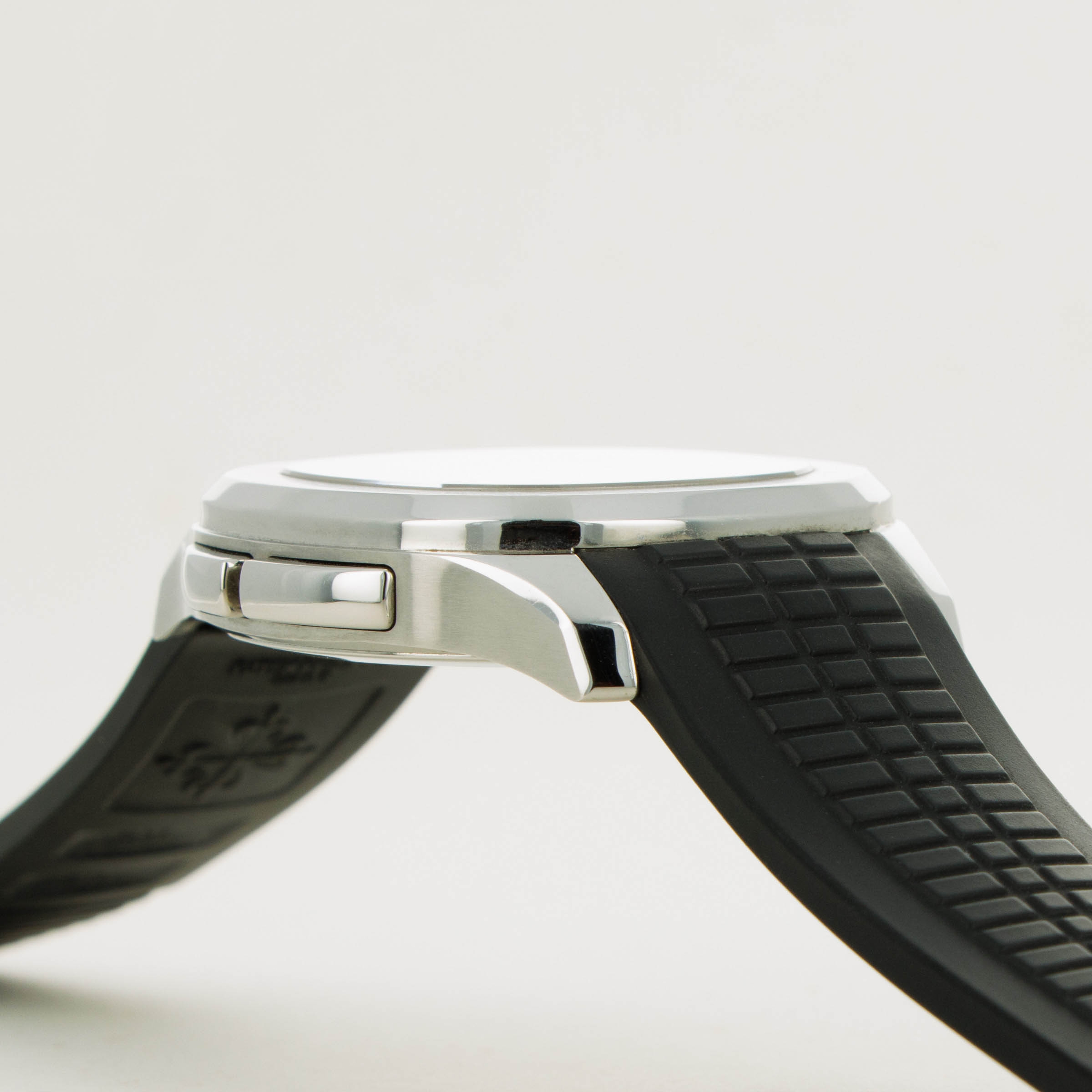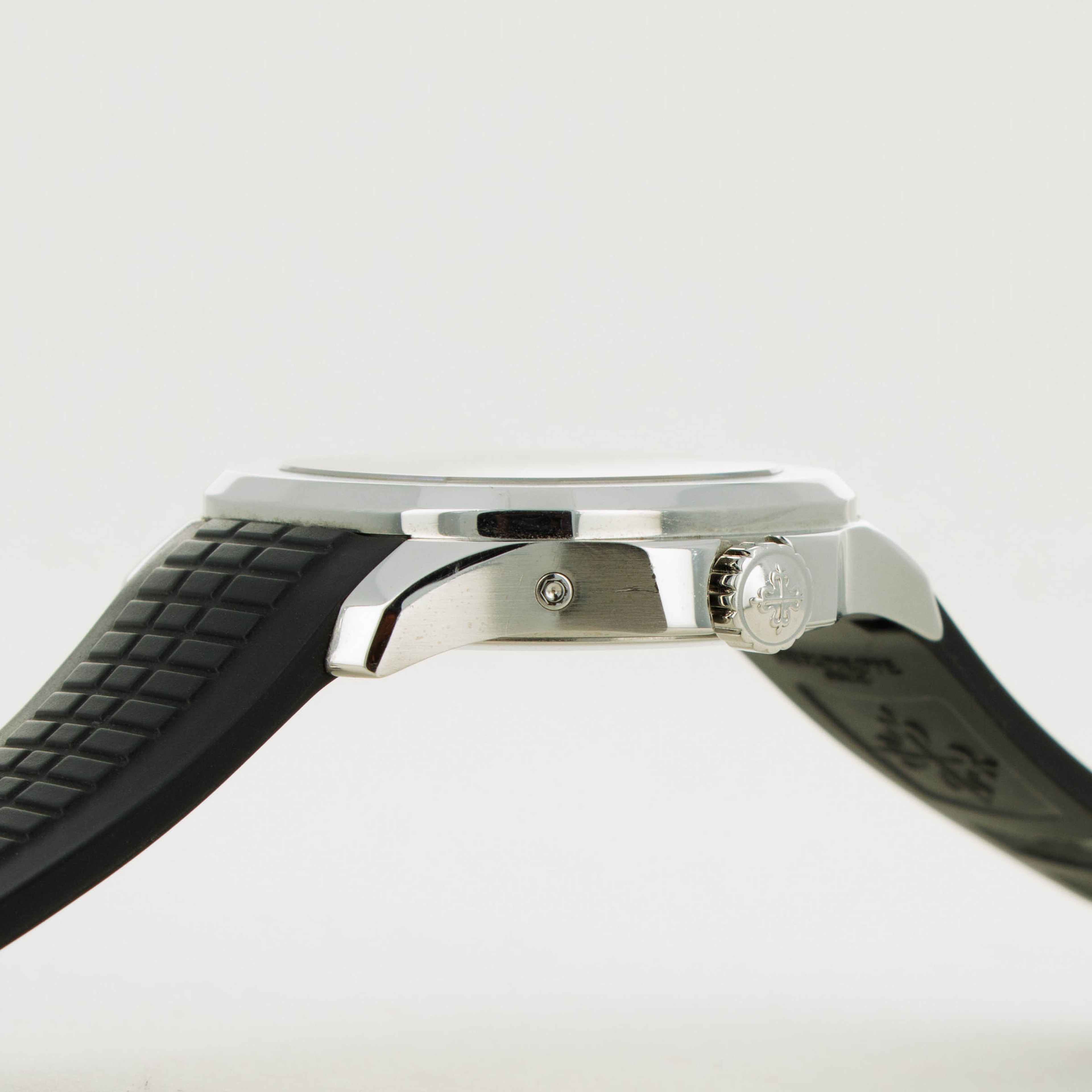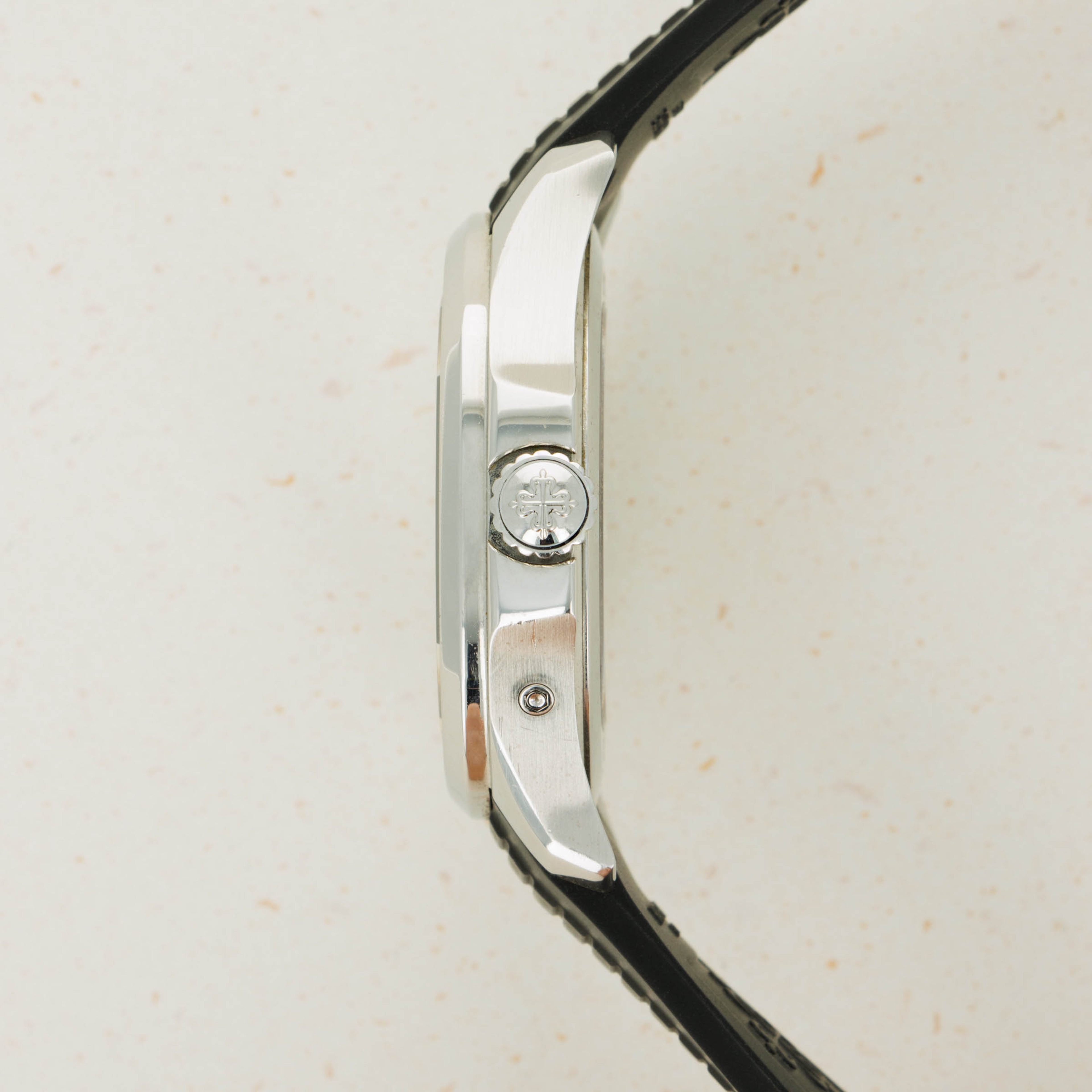 Made from stainless steel, the Aquanaut ref. 5164/1A's 40.8mm case features a softened octagonal bezel, like its sibling variants, but with dual pushers on its 9 o'clock side to conveniently operate the ghost dual-time hand forward and backward an hour.