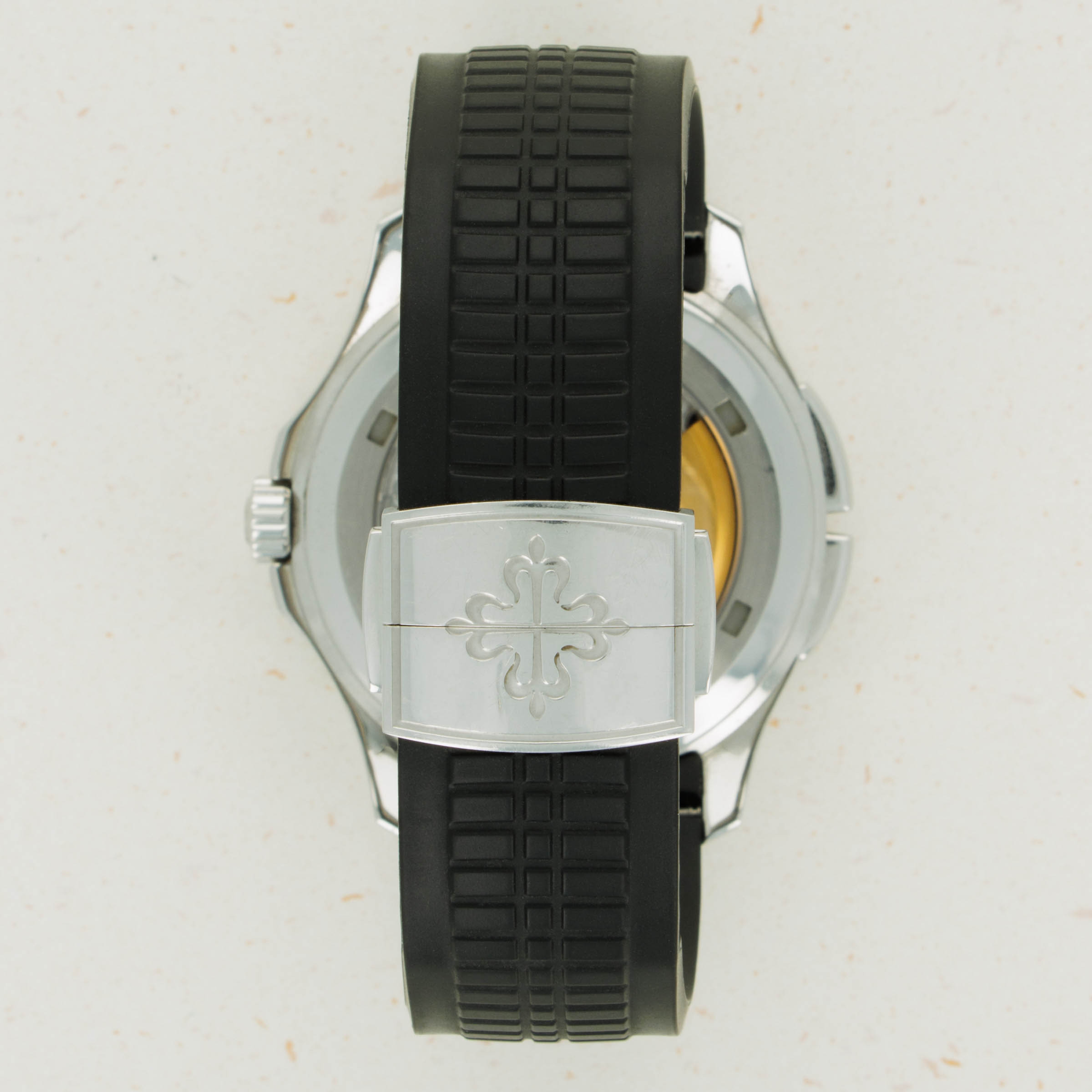 Black polymer material with steel Aquanaut fold-over clasp