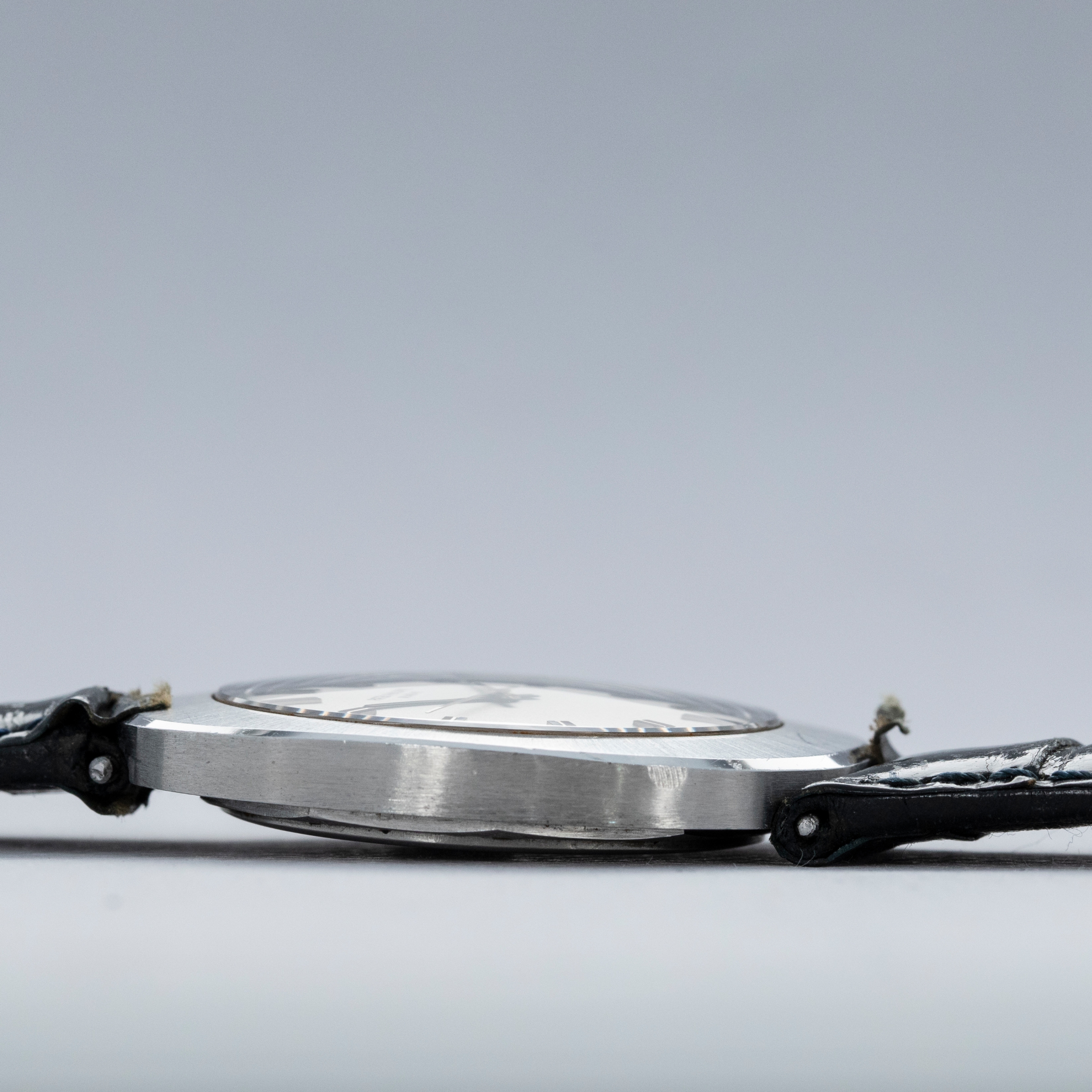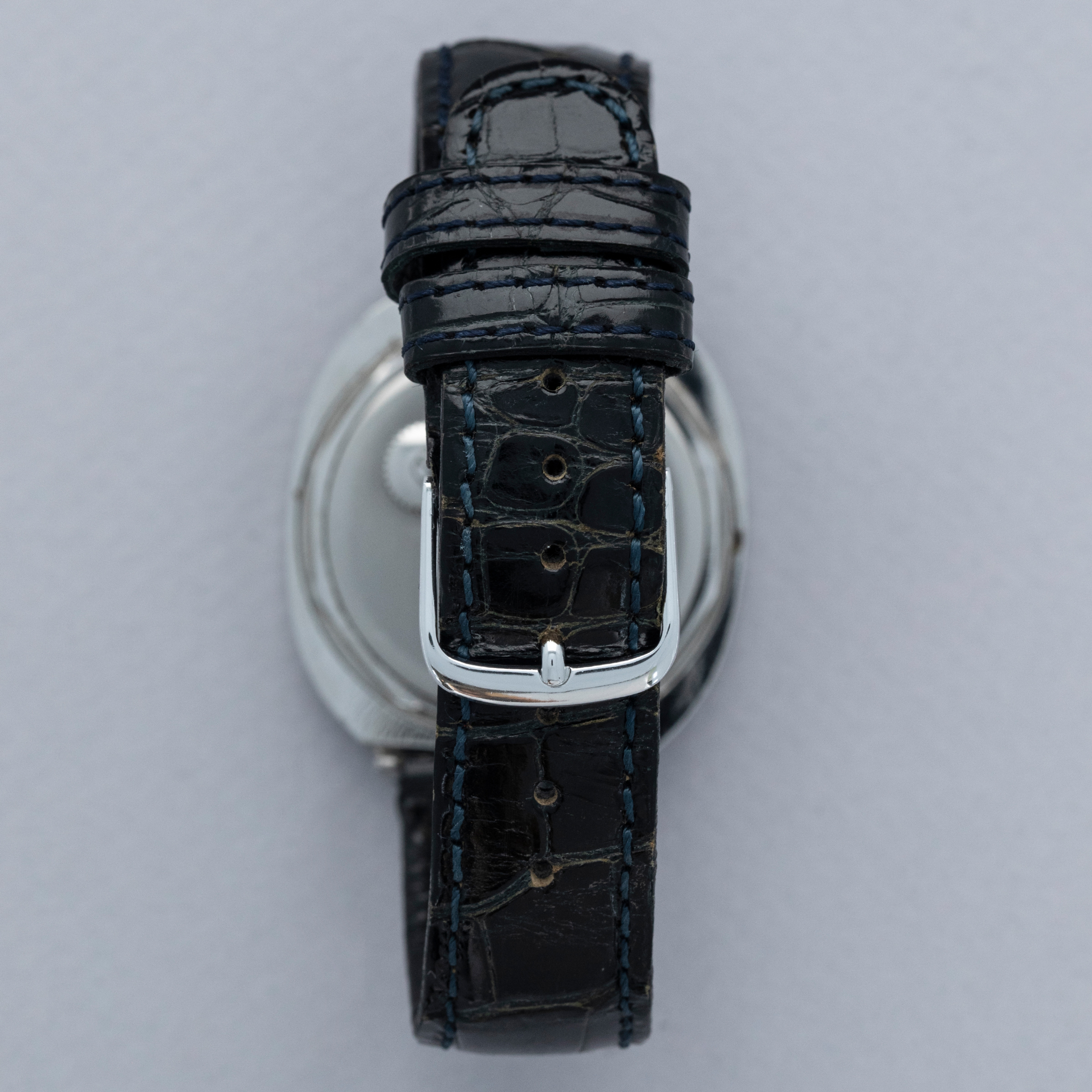 This particular Ellipse has a wider bezel than the standard and a Space-Age feel, which is consistent with the period. Furthermore, its silver dial adds to this widened design through its monochromatic aesthetic matching its stainless steel surroundings.
