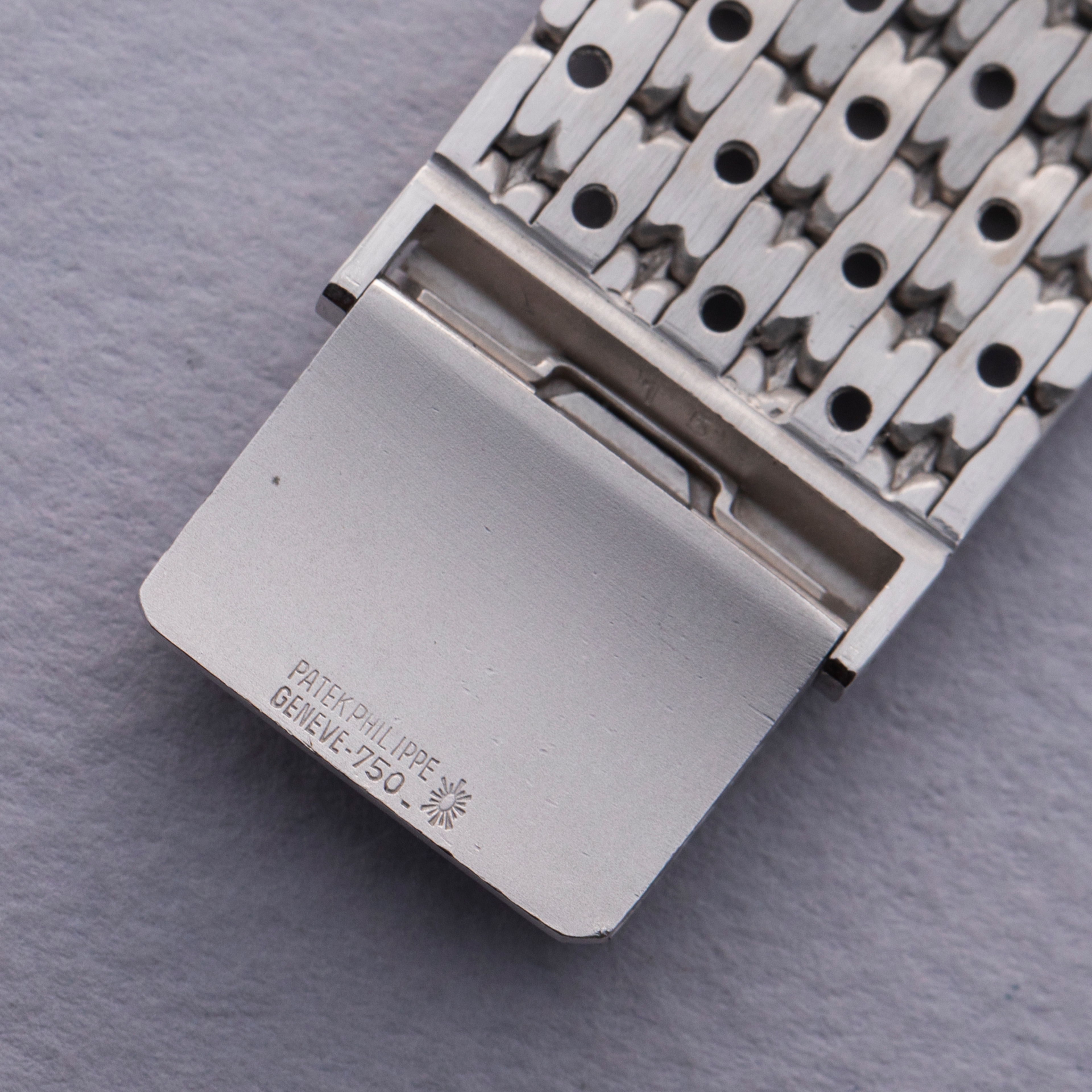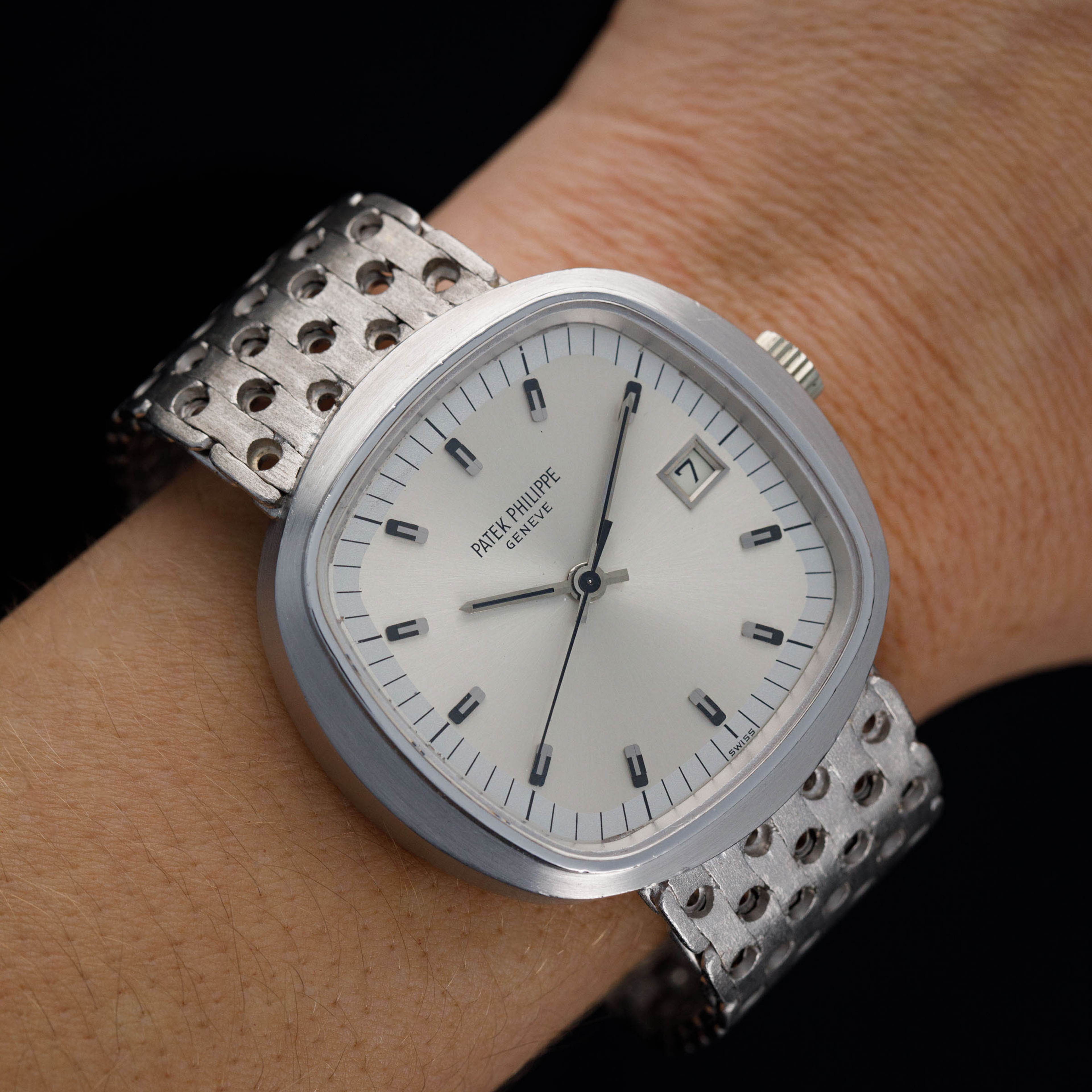 Featuring a 42mm cushion-shaped case made by Atelier Runis, the ref. 3587's 18kt white gold case featured a screw-down caseback and integrated bracelet, all design details that would prove to be very much ahead of their time.