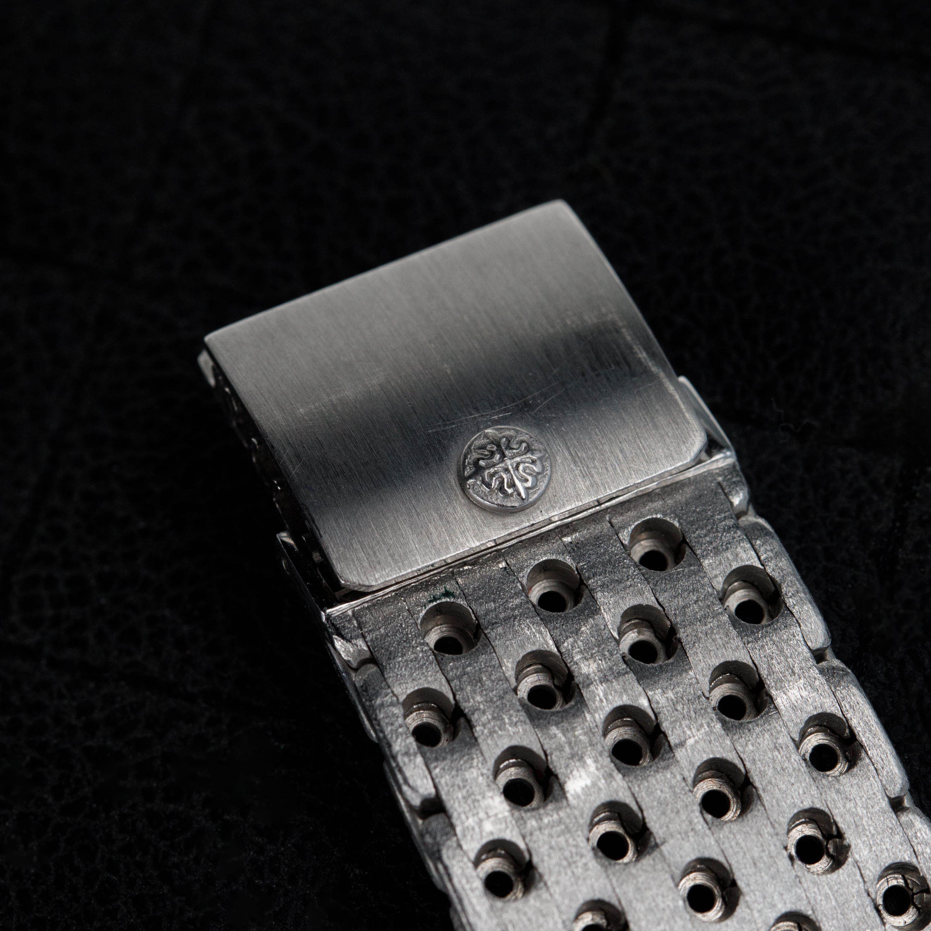Famed for its 'holed' design, the ref. 3587's second bracelet variant, as we have here, has become an iconic part of its design with its 'cheese-grater' aesthetic derived from its large links and abundance of holes.