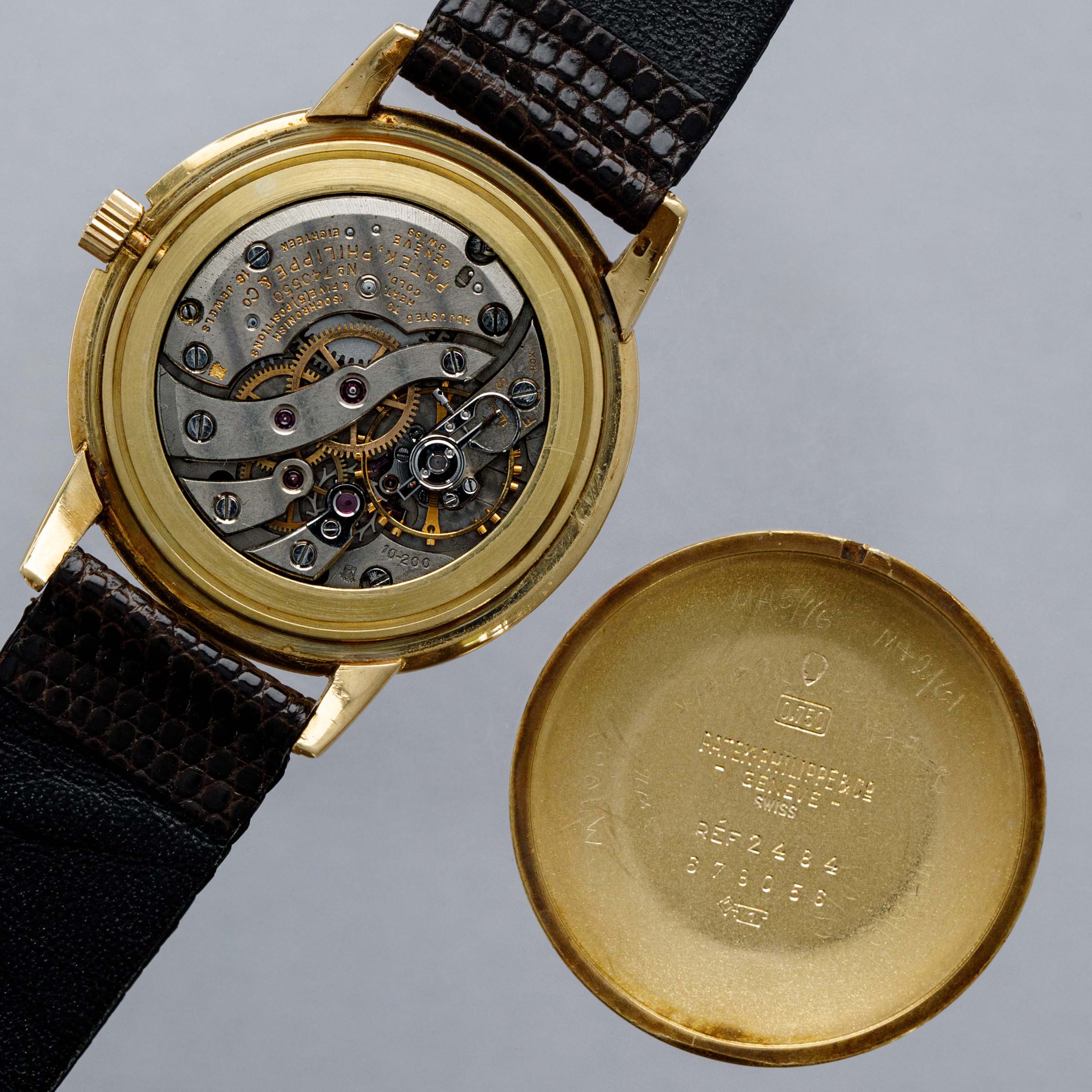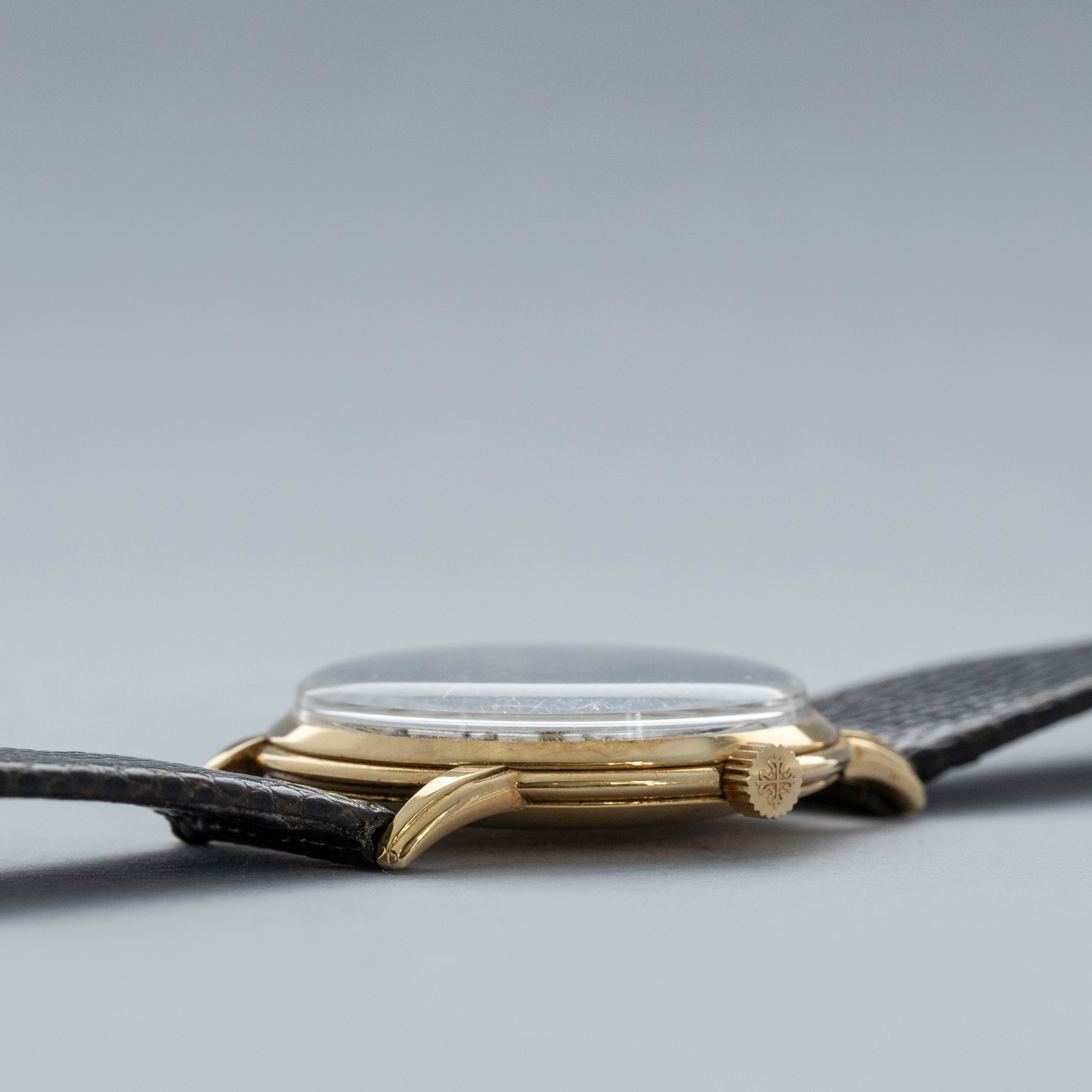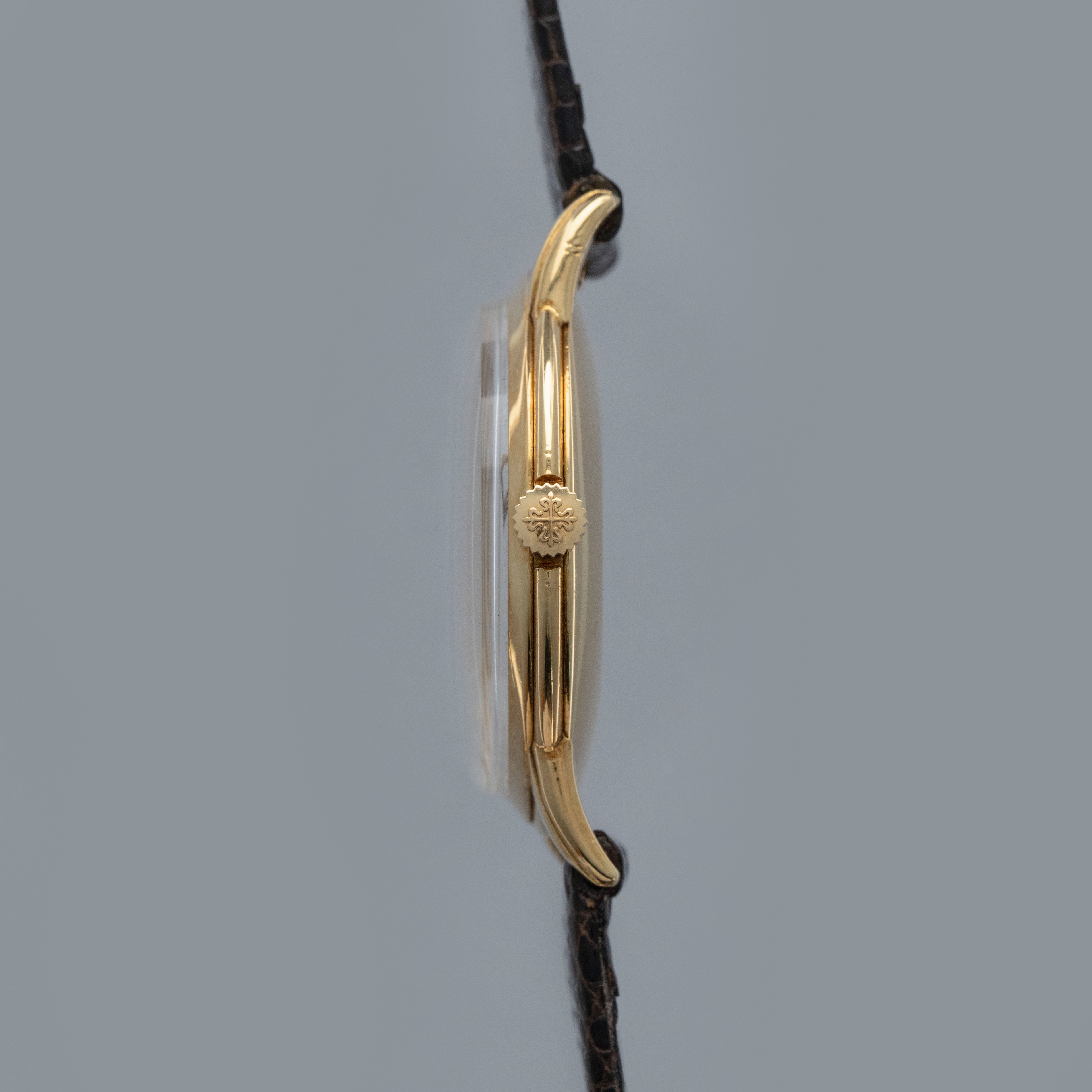 Measuring a classical 32.5mm in diameter, the ref. 2484J's 18kt yellow gold case is a wonderfully executed reminder of Patek Philippe's craftsmanship with its stepped bezel and elegant stepped lugs giving it an architectural presence on the wrist.