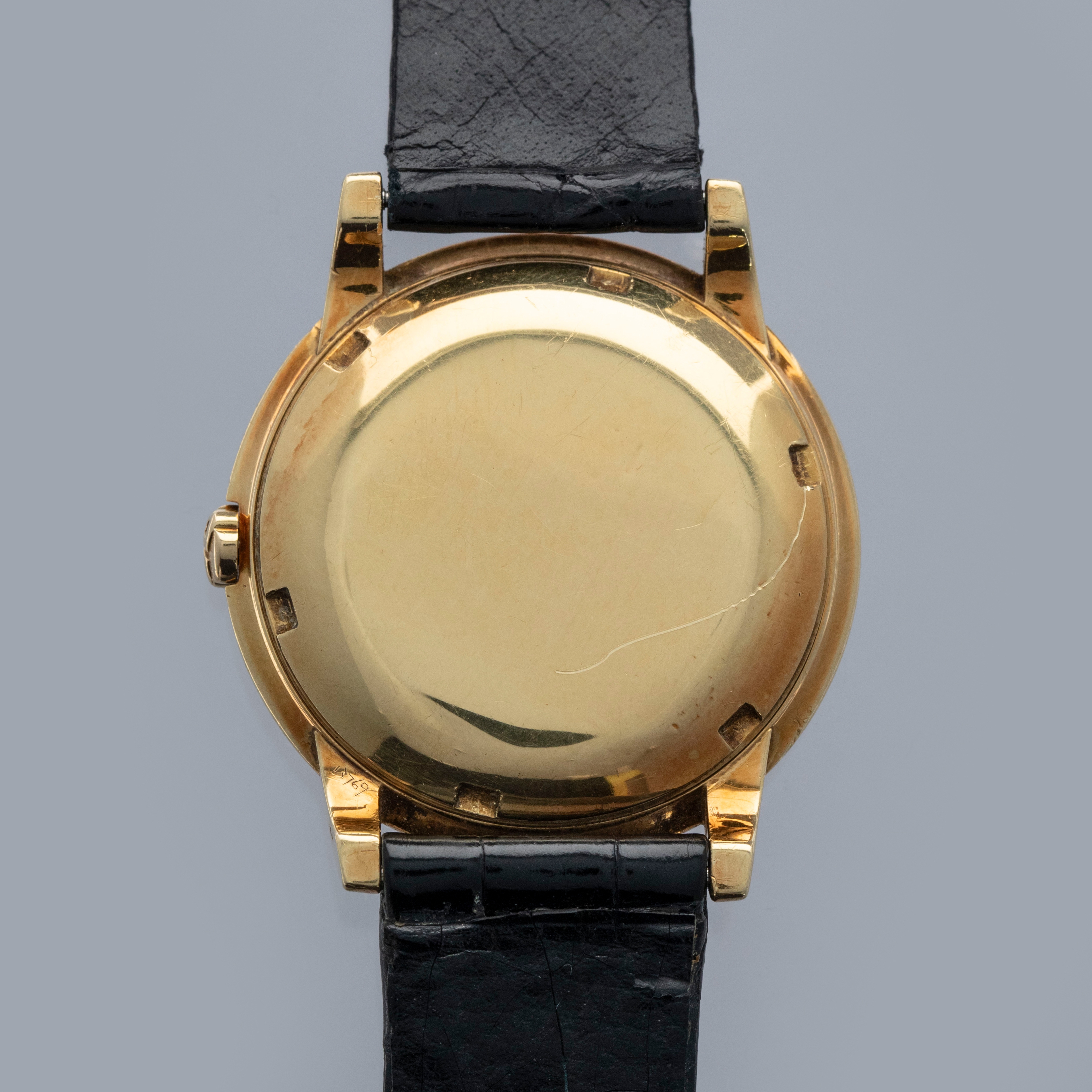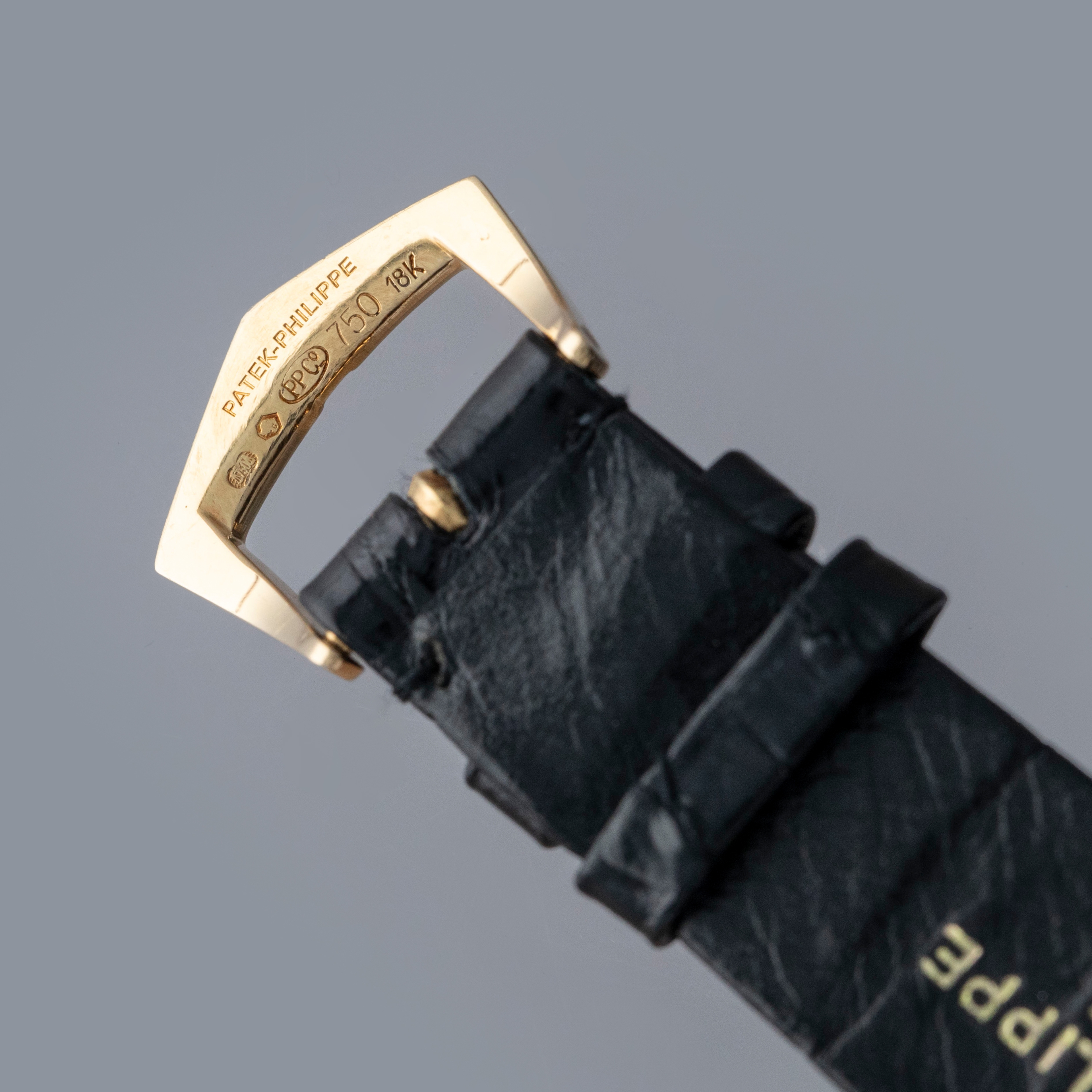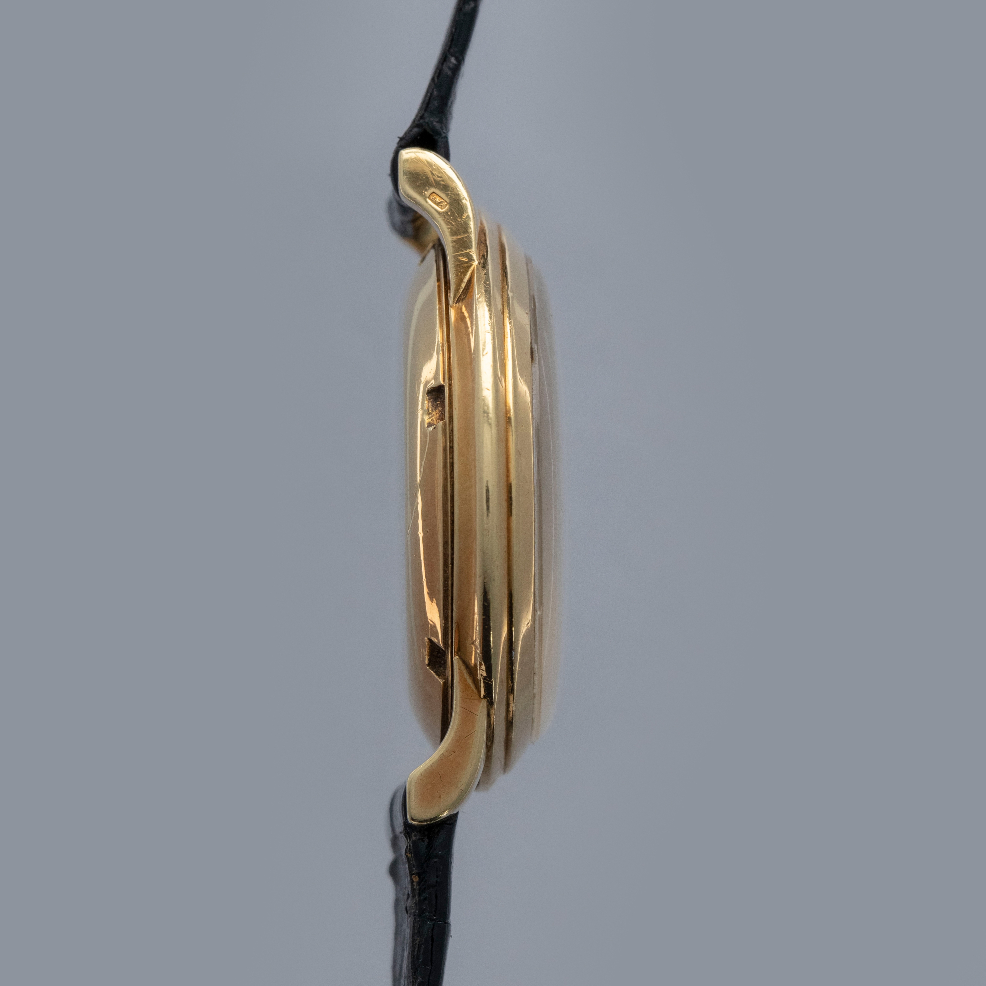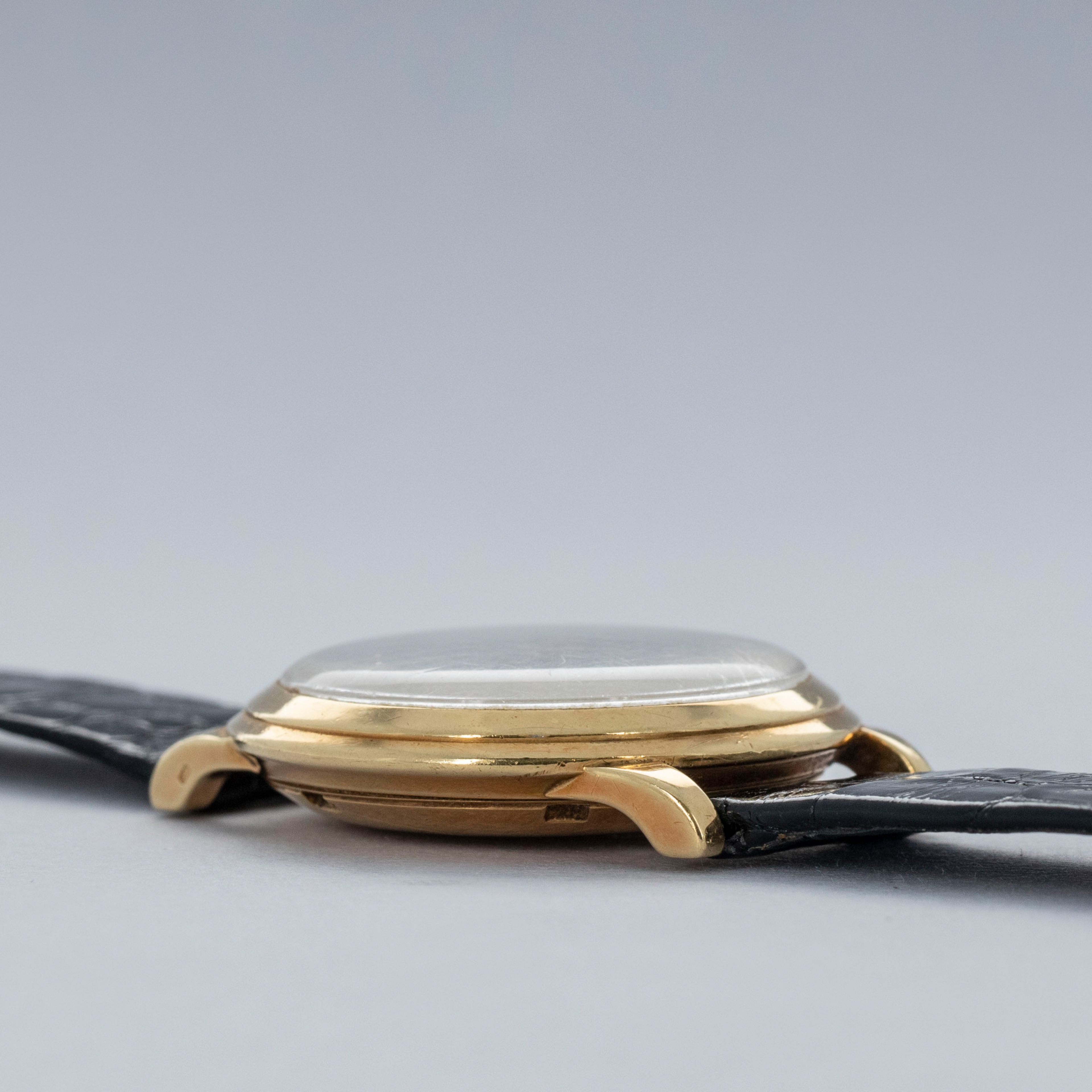Watch is in overall excellent condition. The yellow gold case shows surface scratches and small nicks as expected of a watch of this vintage. The case back has one more noticeable scratch along with light surface scratches. The rear of the lower right lug bears a retailer stock number, while two hallmarks remain legible on the case sides. The dial shows minor surface marks and retains a strong signature and Tiffany & Co stamp. The crystal has a number of scratches. It is fitted with a black Patek alligator strap and yellow gold buckle, both in excellent condition. Please note that the watch ticks at time of cataloging, but timekeeping is poor and a service is recommended.