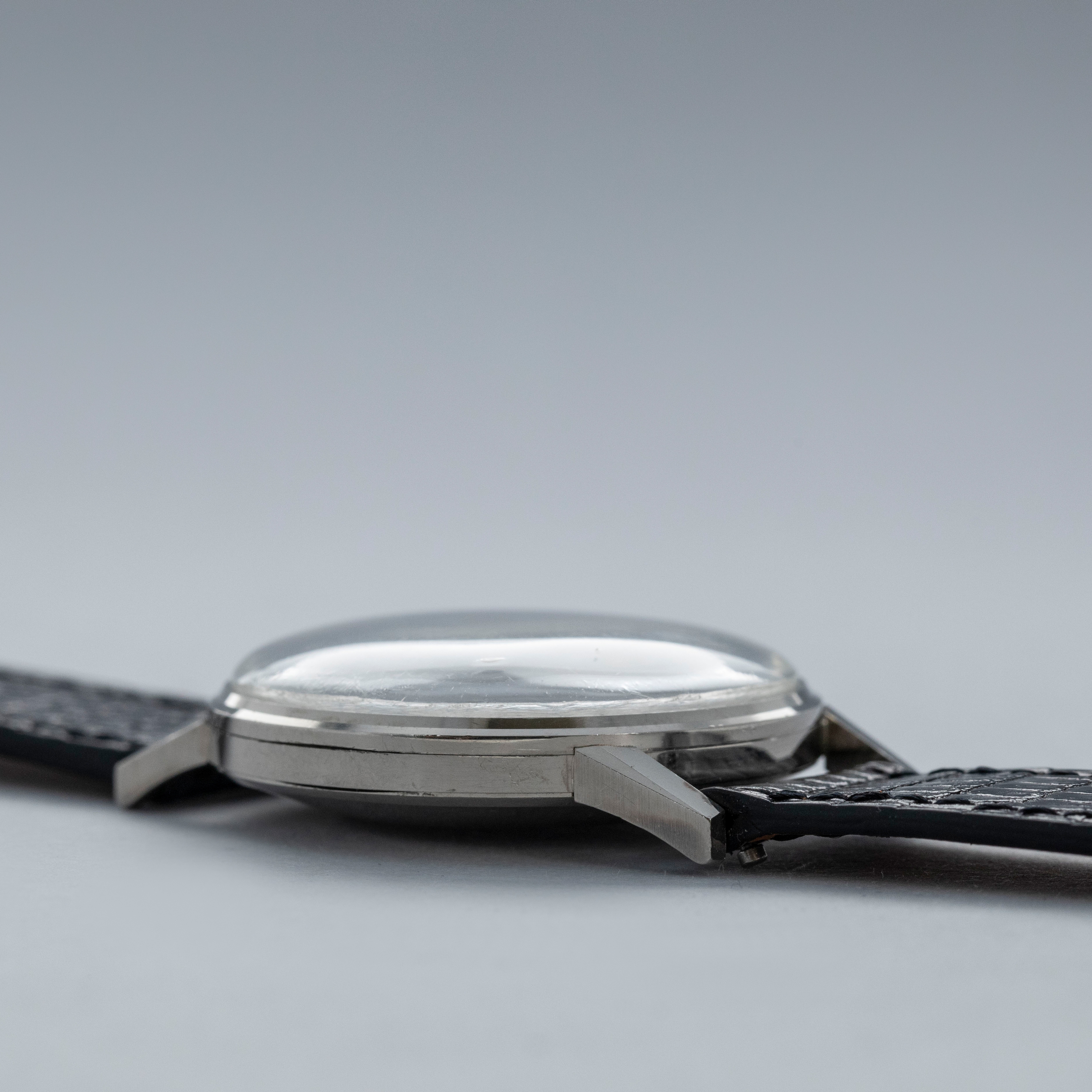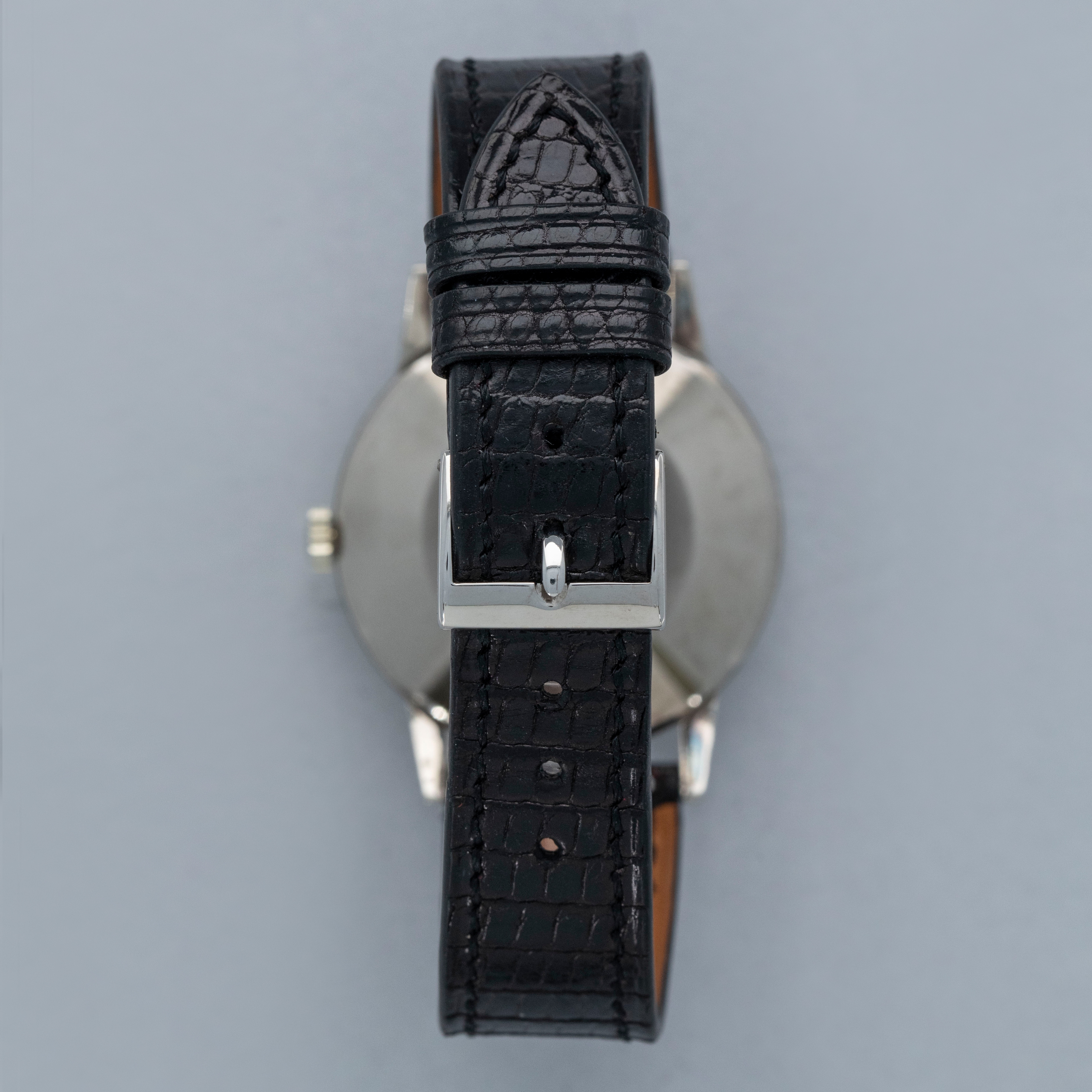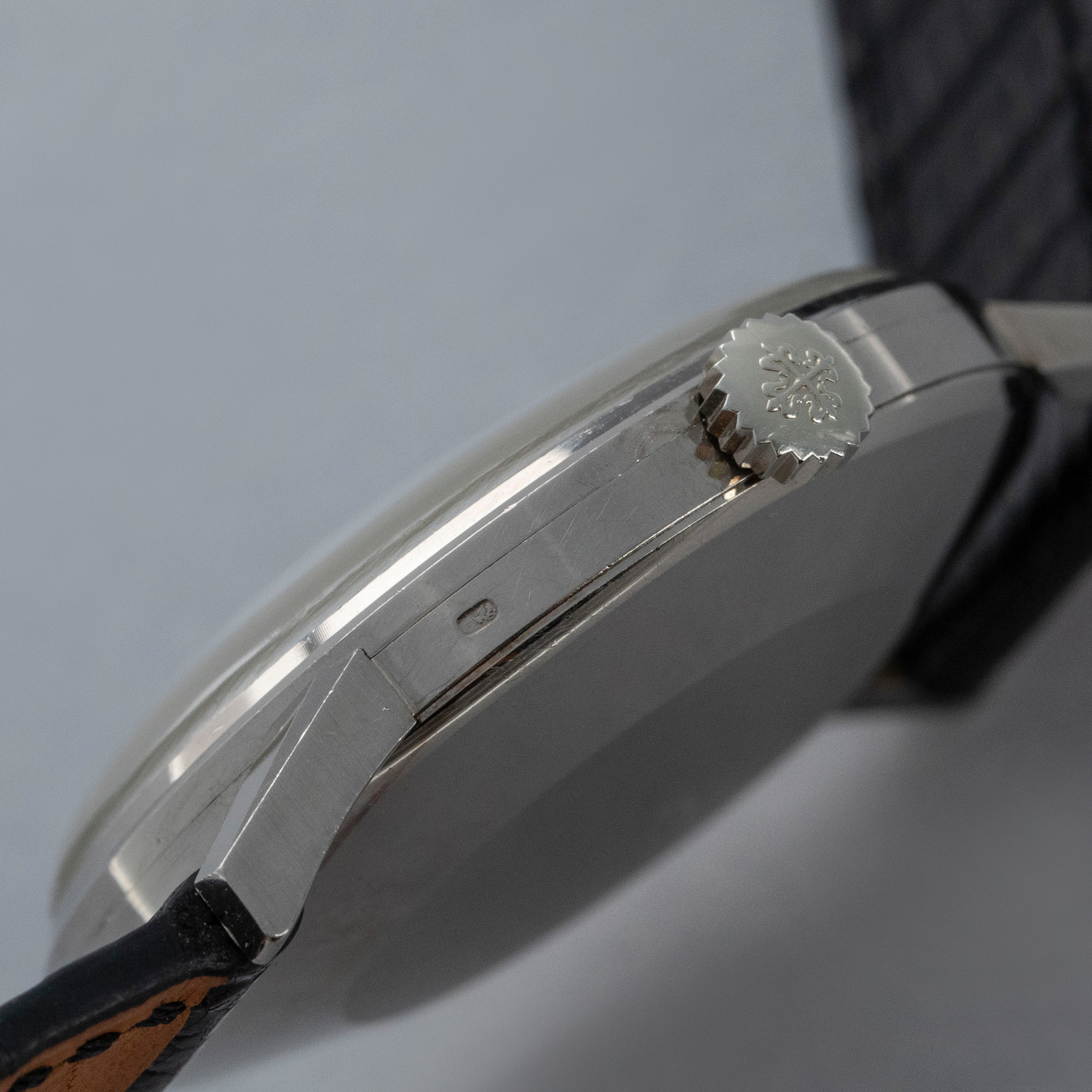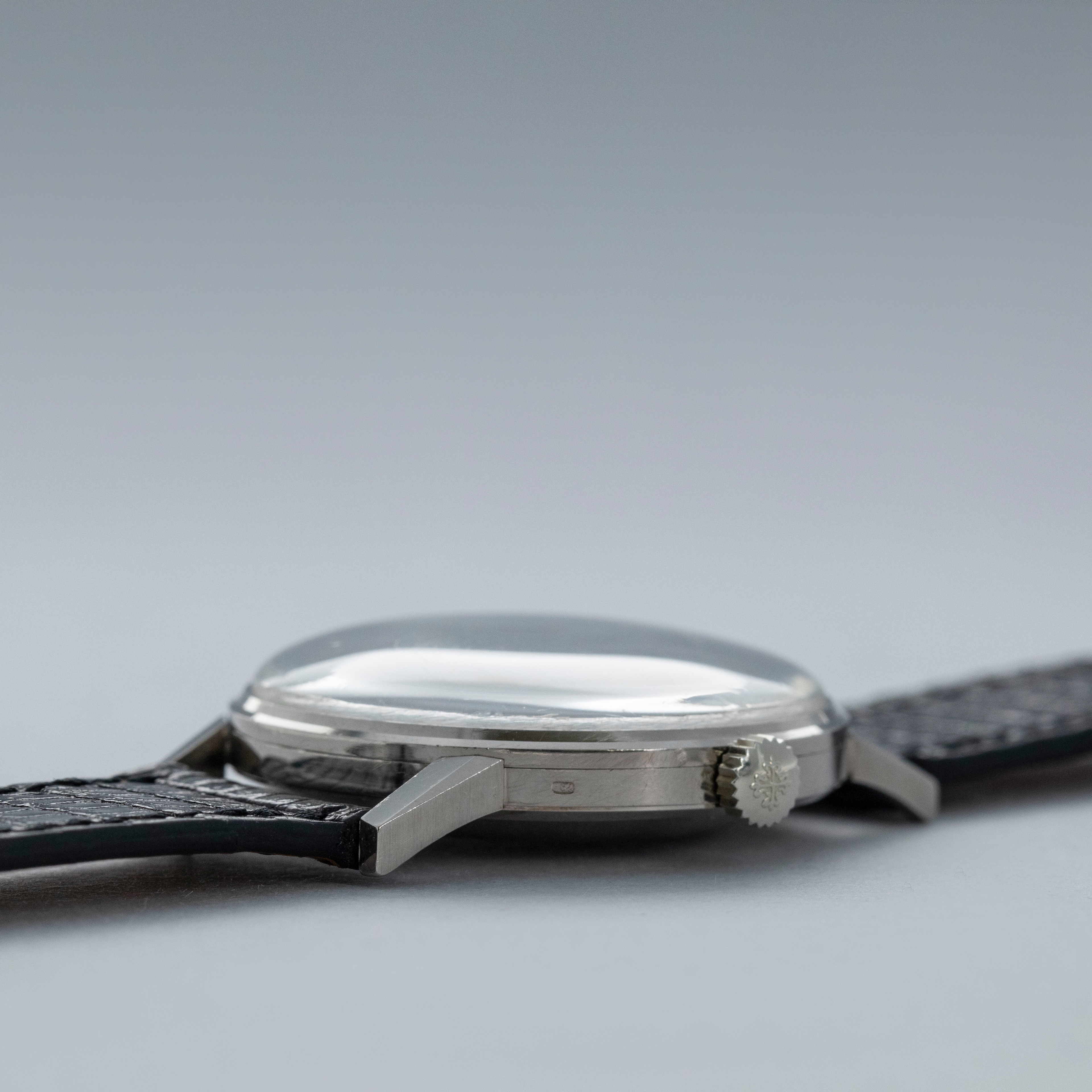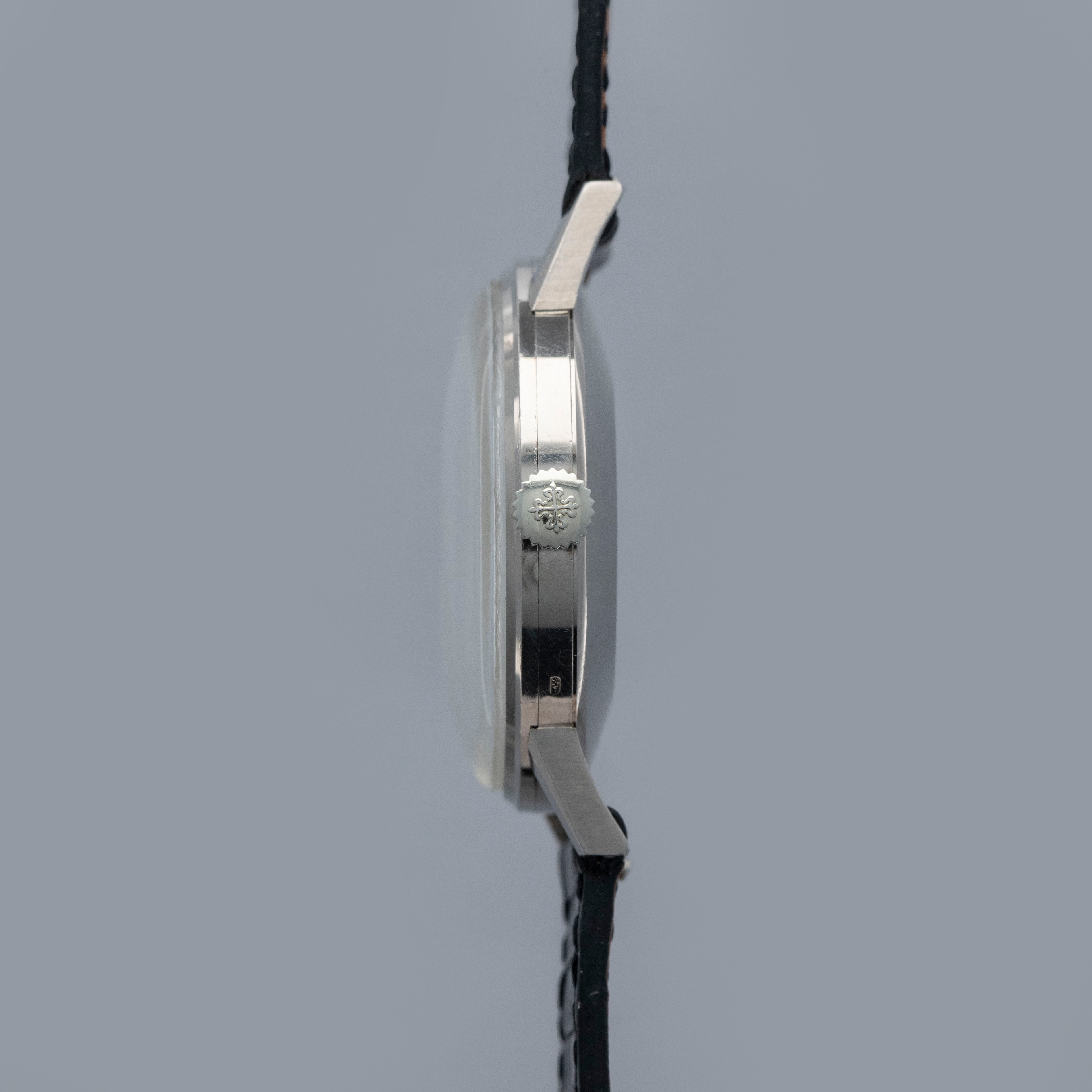 Watch is in overall excellent condition. The white gold case is well defined with some scratches and light marks as expected of a watch of this vintage. A hallmark remains clearly legible on the crown side. The dial is excellent, with just a couple of minor surface marks, and the hands are very clean. The watch is fitted with a black alligator strap and a white gold Patek Philippe buckle, both in excellent condition.