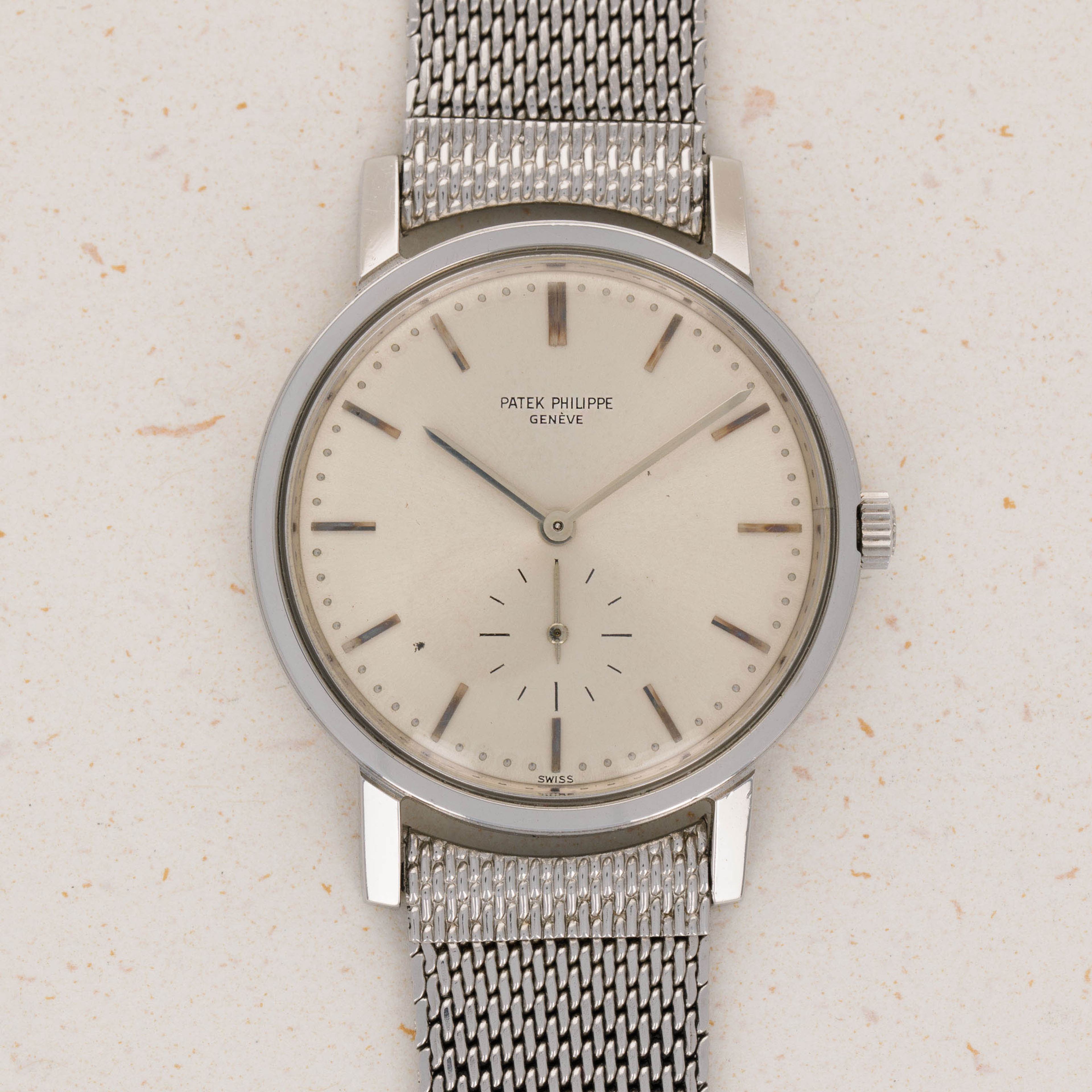 Famed for their luxurious take on horology and all of its facets, Patek Philippe seldom constructs their cases from metals that are not precious, like gold or platinum. As such, stainless steel examples of Patek Philippe’s timepieces are inherently rare, sought-after, and unusual. Offered here, we have one of those very timepieces, the Calatrava ref. 3466 made from stainless steel. Contrasting the Calatrava’s elegant dress watch persona, the ref. 3466 has become legendary due to its position as one of the very few stainless steel vintage Patek Philippe references. Combined with its stainless steel construction, the ref. 3466 is also sought-after due to its uncharacteristically large 35mm case diameter being far more significant than the 30mm-33mm cases that would have been run-of-the-mill at the time. Featuring an automatic movement and a screw-down case on top of its large steel case, the ref. 3466 seems right at home in today’s horological landscape, with its beautiful classically styled dial serving as a reminder of the time from which it has come.