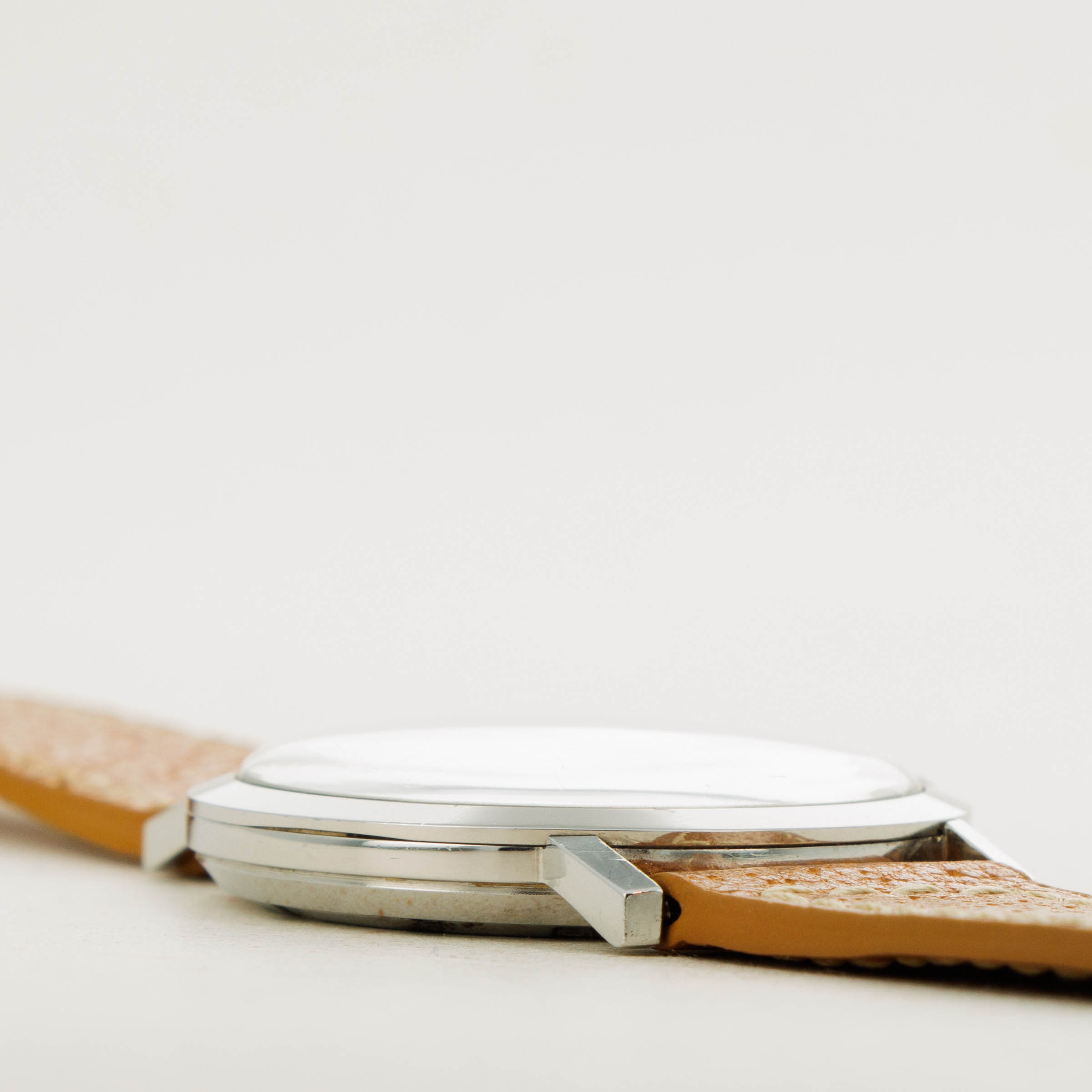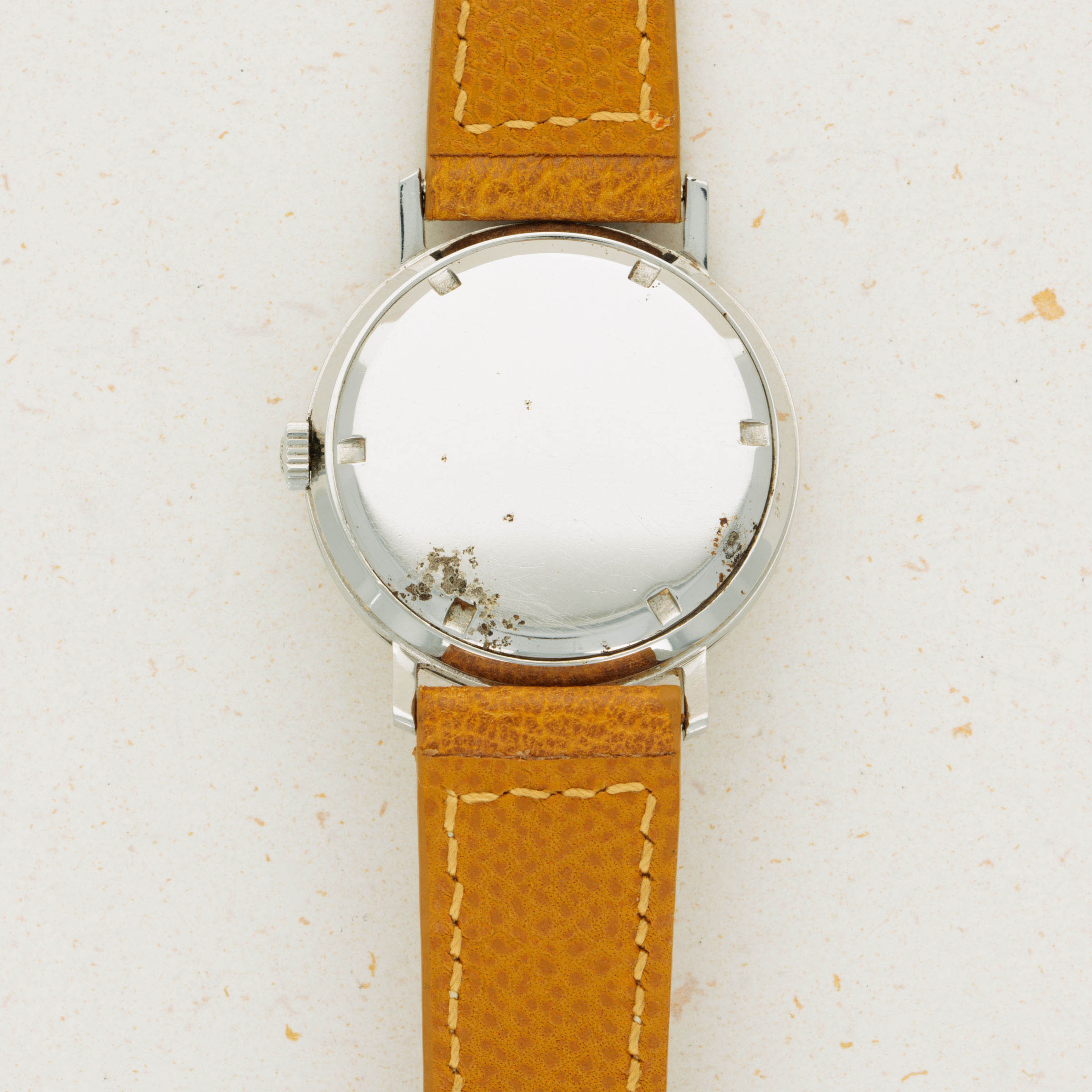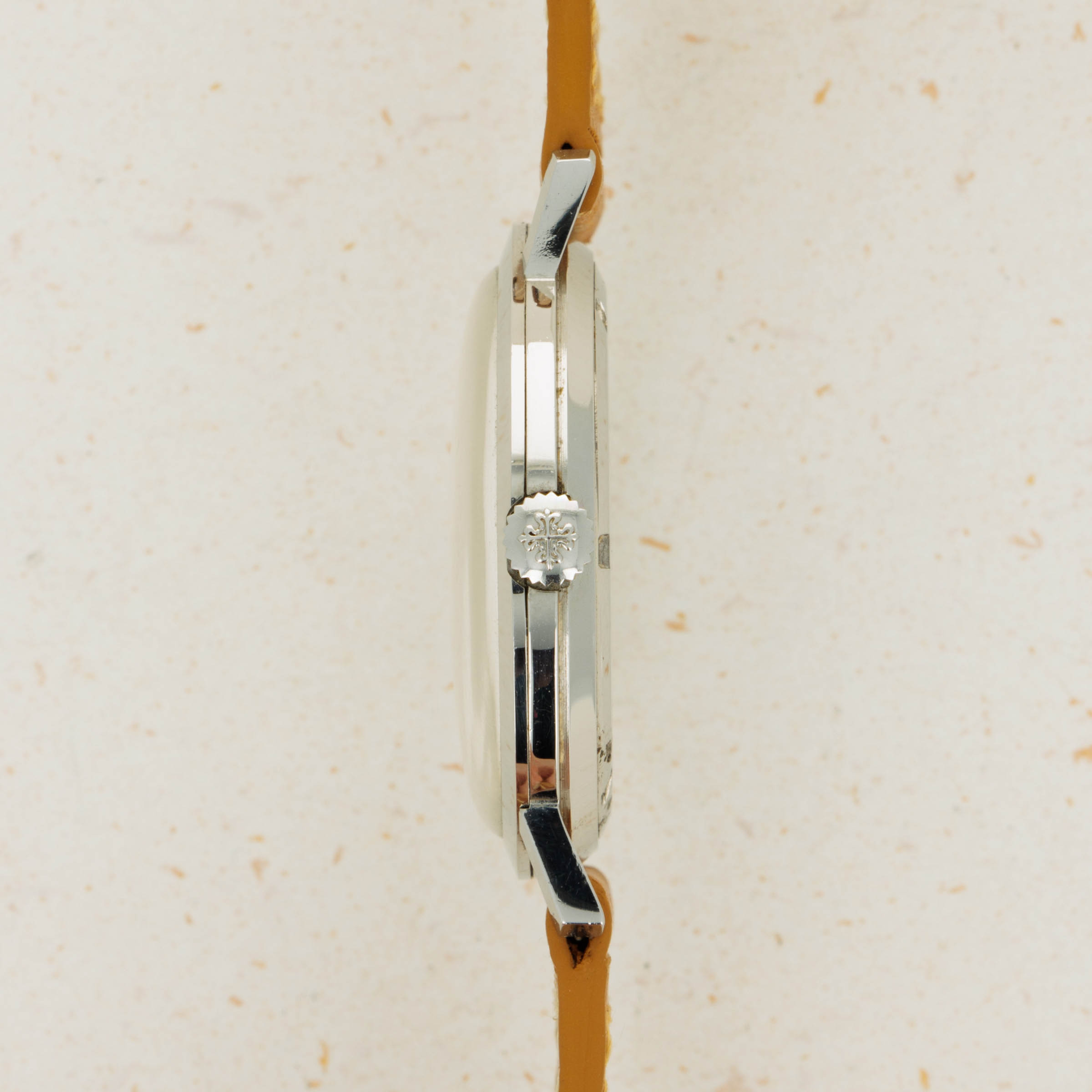 Famed for their luxurious take on horology and all of its facets, Patek Philippe seldom constructs their cases from metals that are not precious, like gold or platinum. As such, stainless steel examples of Patek Philippe’s timepieces are inherently rare, sought-after, and unusual. Offered here, we have one of those very timepieces, the Calatrava ref. 3509 made from stainless steel. Contrasting the Calatrava’s elegant dress watch persona, the ref. 3509 has become legendary due to its position as one of the very few stainless steel vintage Patek Philippe references. Combined with its stainless steel construction, the ref. 3509 is also sought-after due to screw-down caseback, which was an impressive departure from Patek’s more common snap-on casebacks. Featuring a manual-wind movement and a simple silver dial with applied indices and sword-shaped hands, the ref. 3509 seems right at home in today’s horological landscape, with its beautiful classically styled dial serving as a reminder of the time from which it has come.
