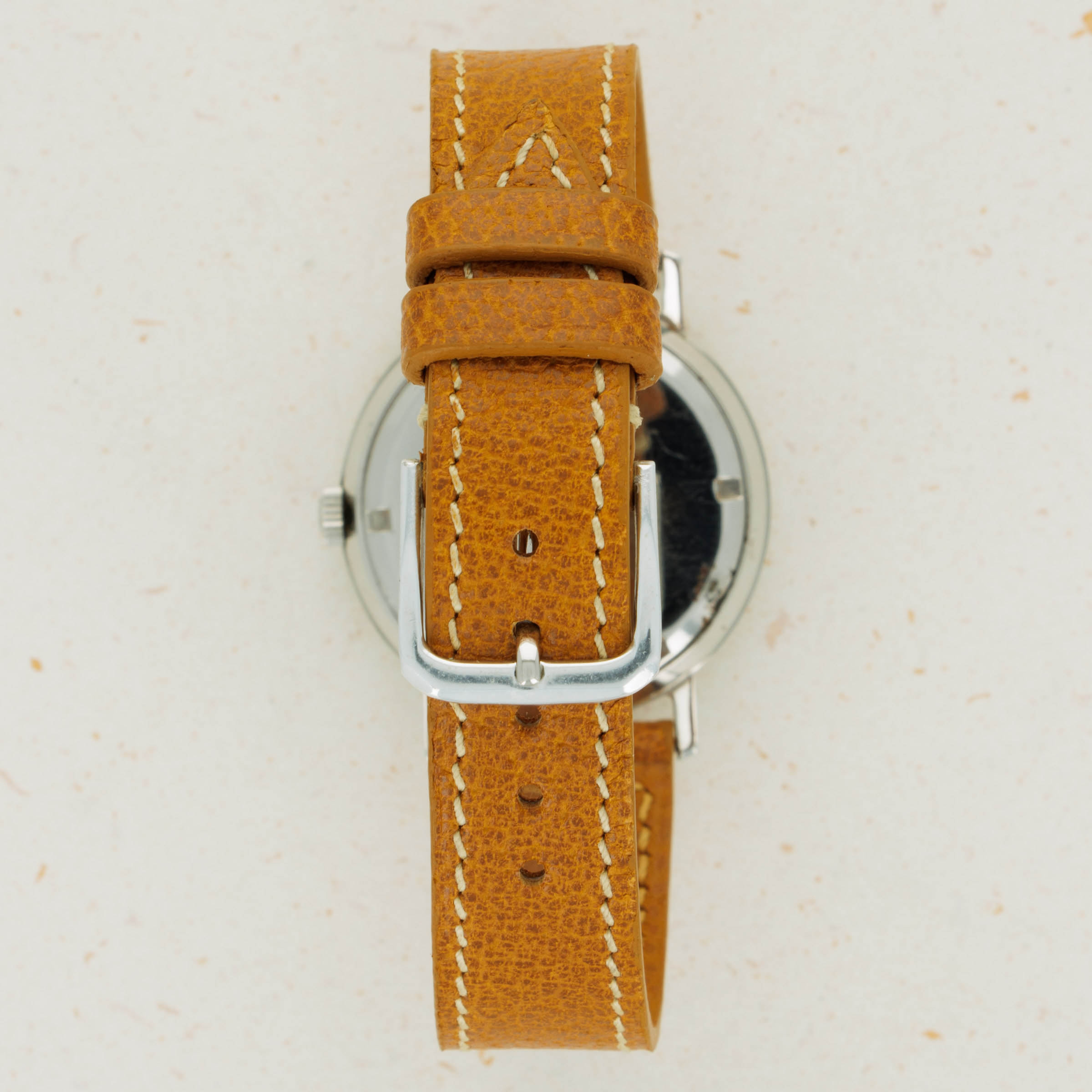 Measuring just 33mm in diameter, the ref. 3509 increases its wrist presence with its brightly polished flat bezel and relatively straight lugs that increase its profile on the wrist and make it much easier to wear in the modern horological landscape than its measurements suggest. However, it nonetheless retains its vintage charm in abundance.