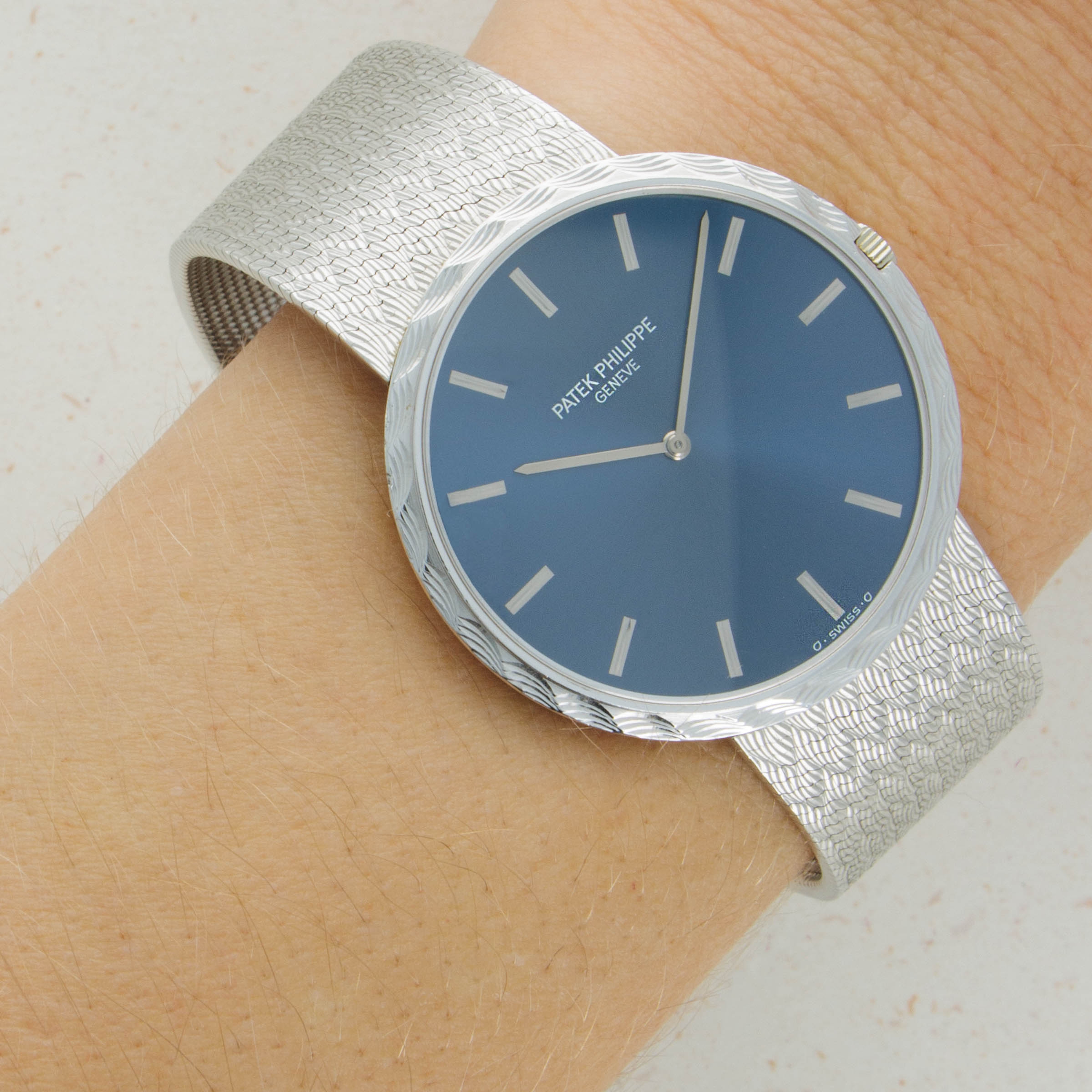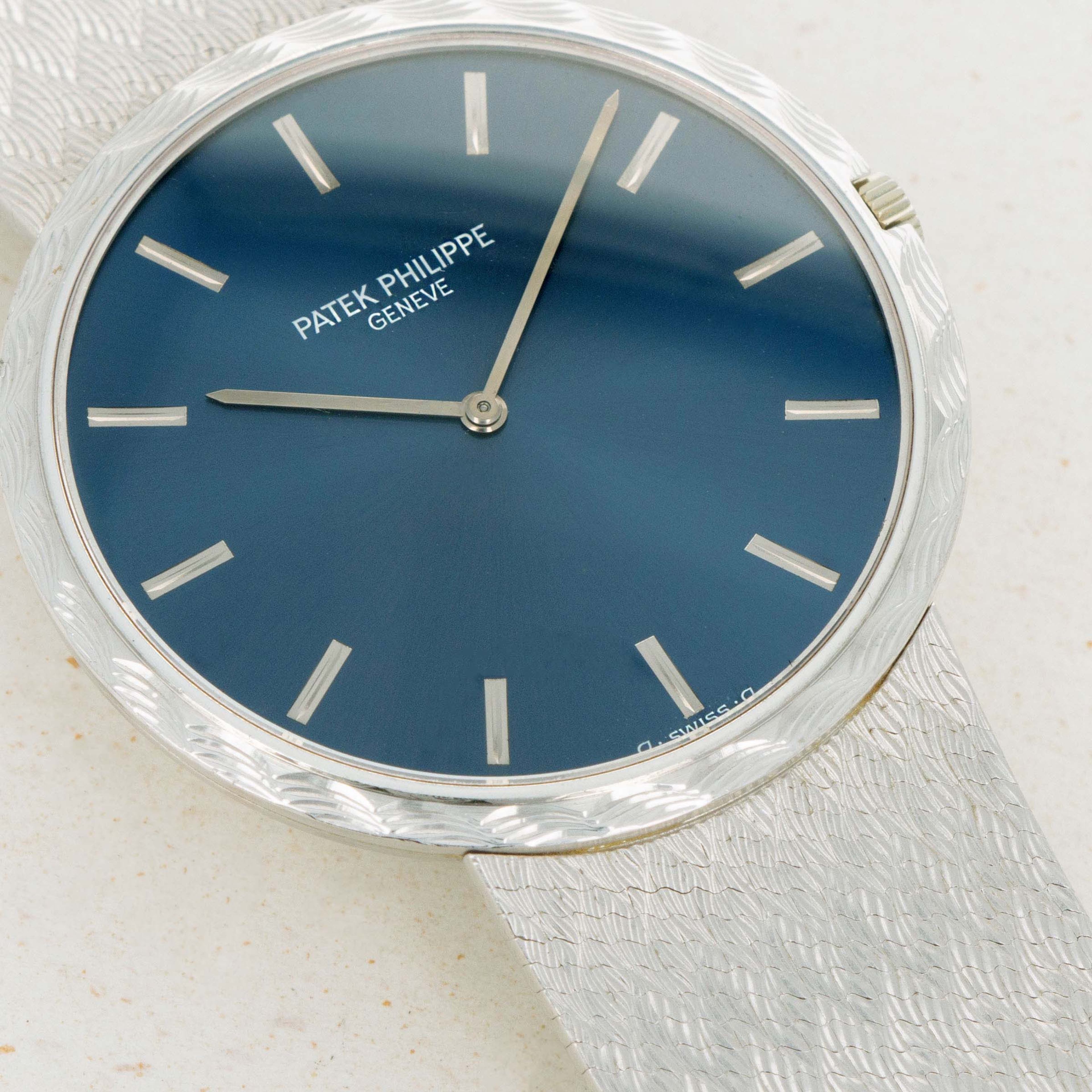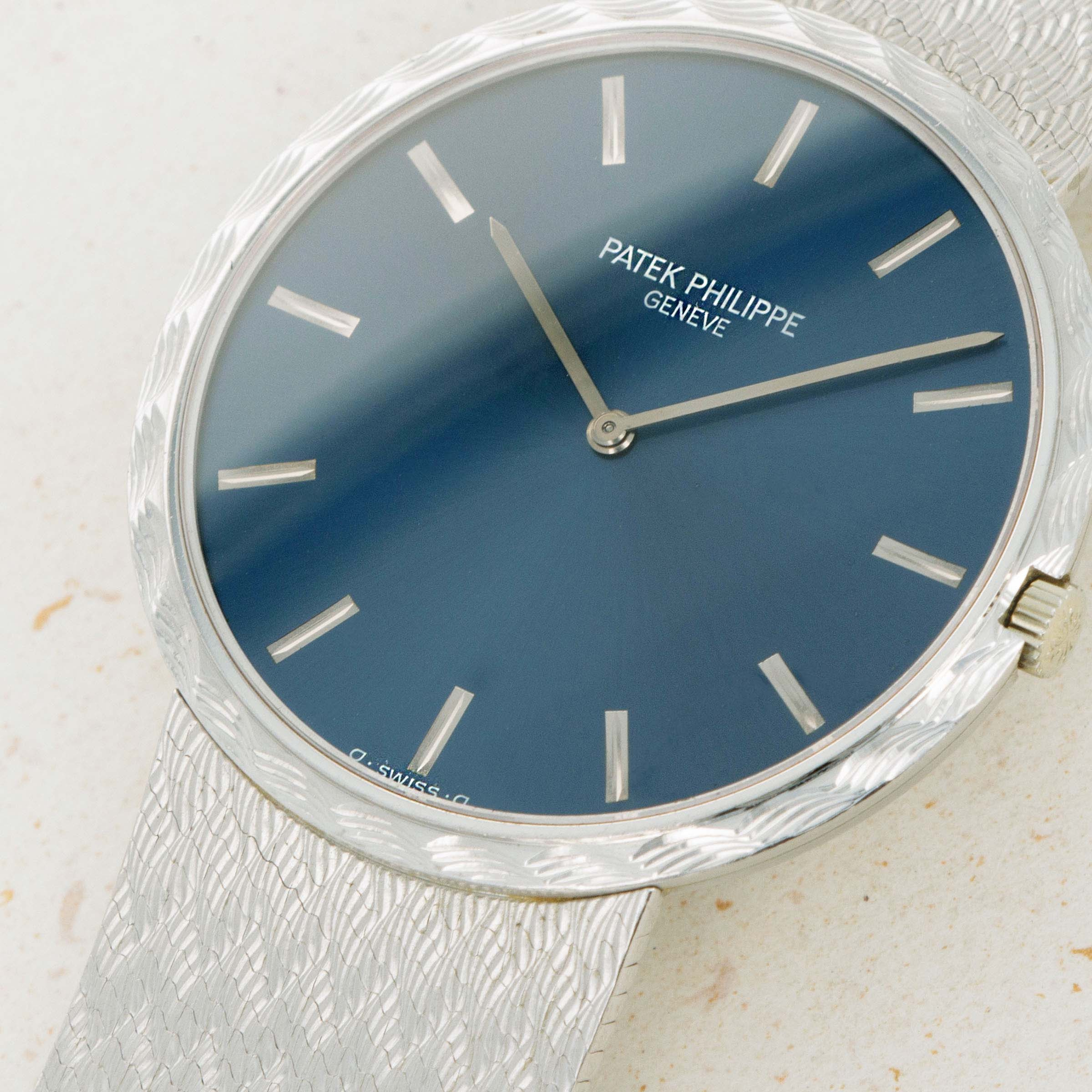 A beautiful watch, this example's striking blue dial is perfectly complemented by its 18kt white gold construction and charming aesthetic; both of which mark this ref. 3588 as a timepiece as a watch that any collector would be lucky to add to their collection.
