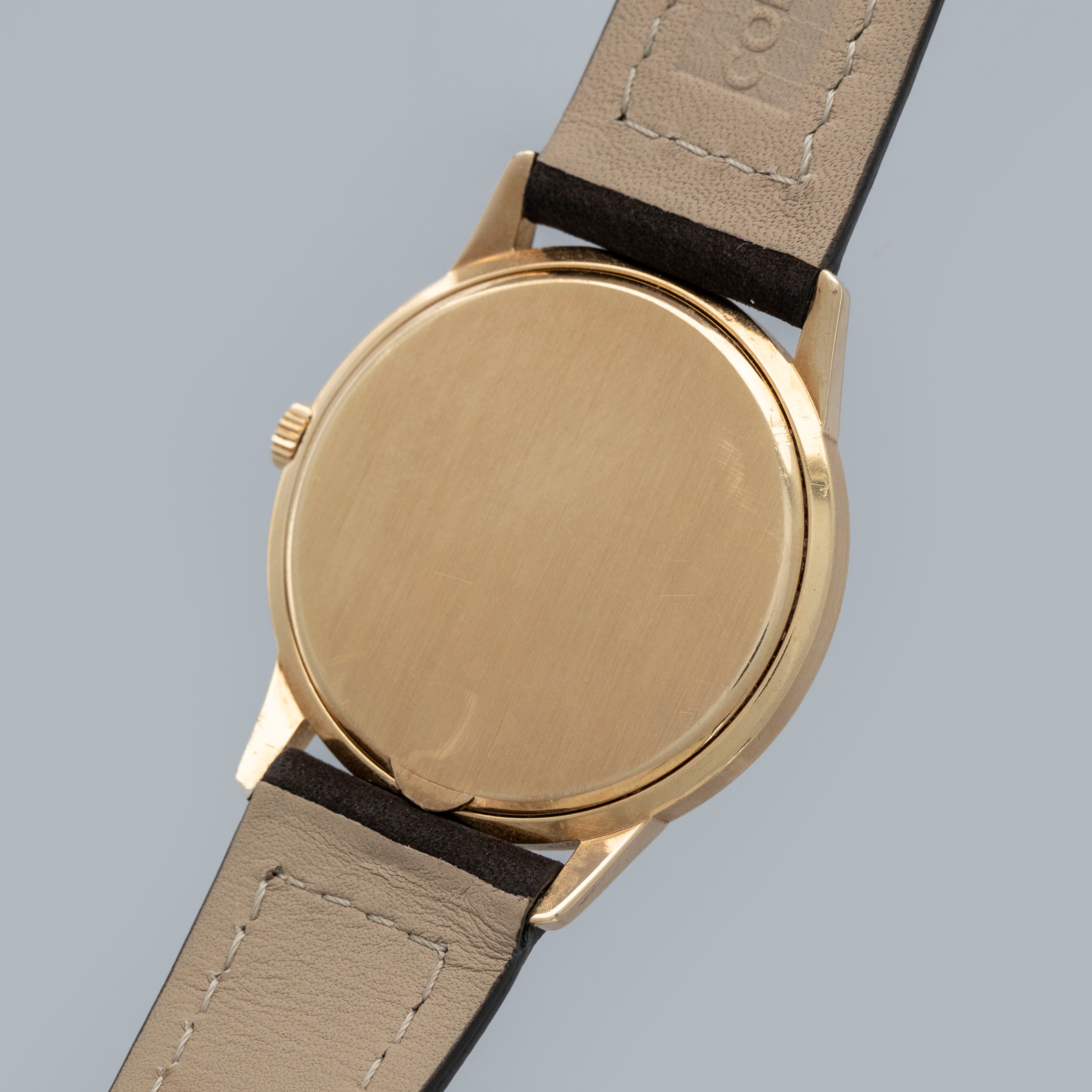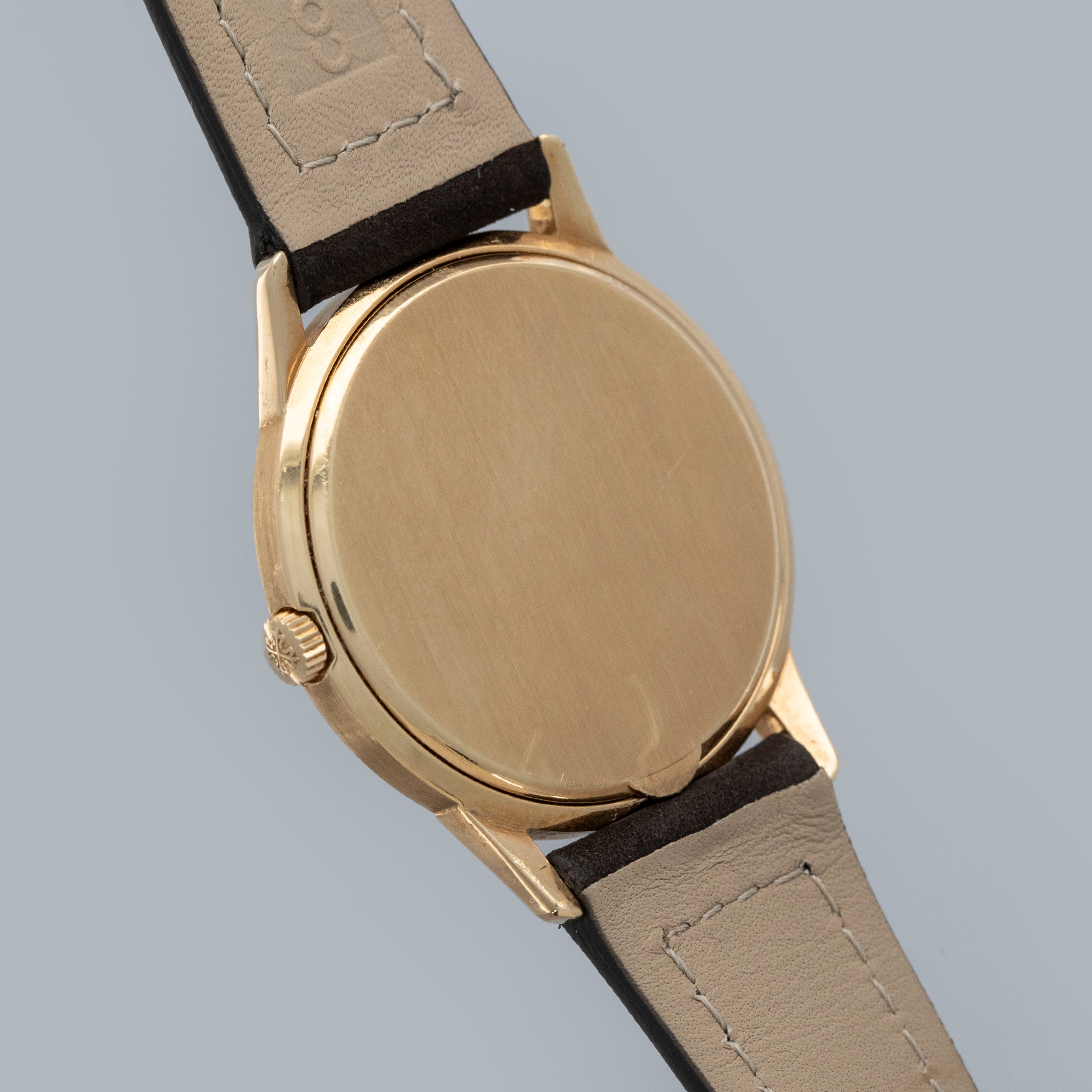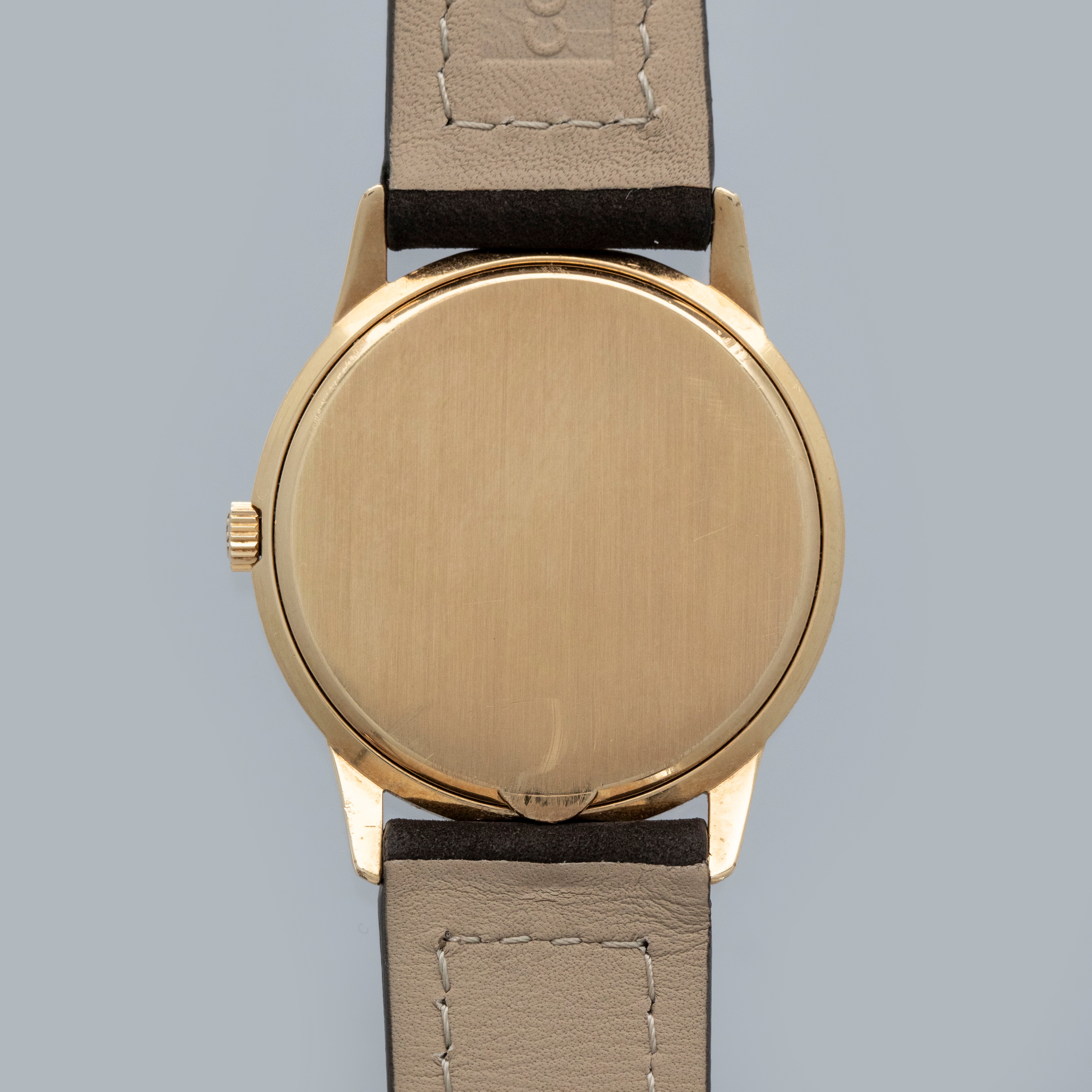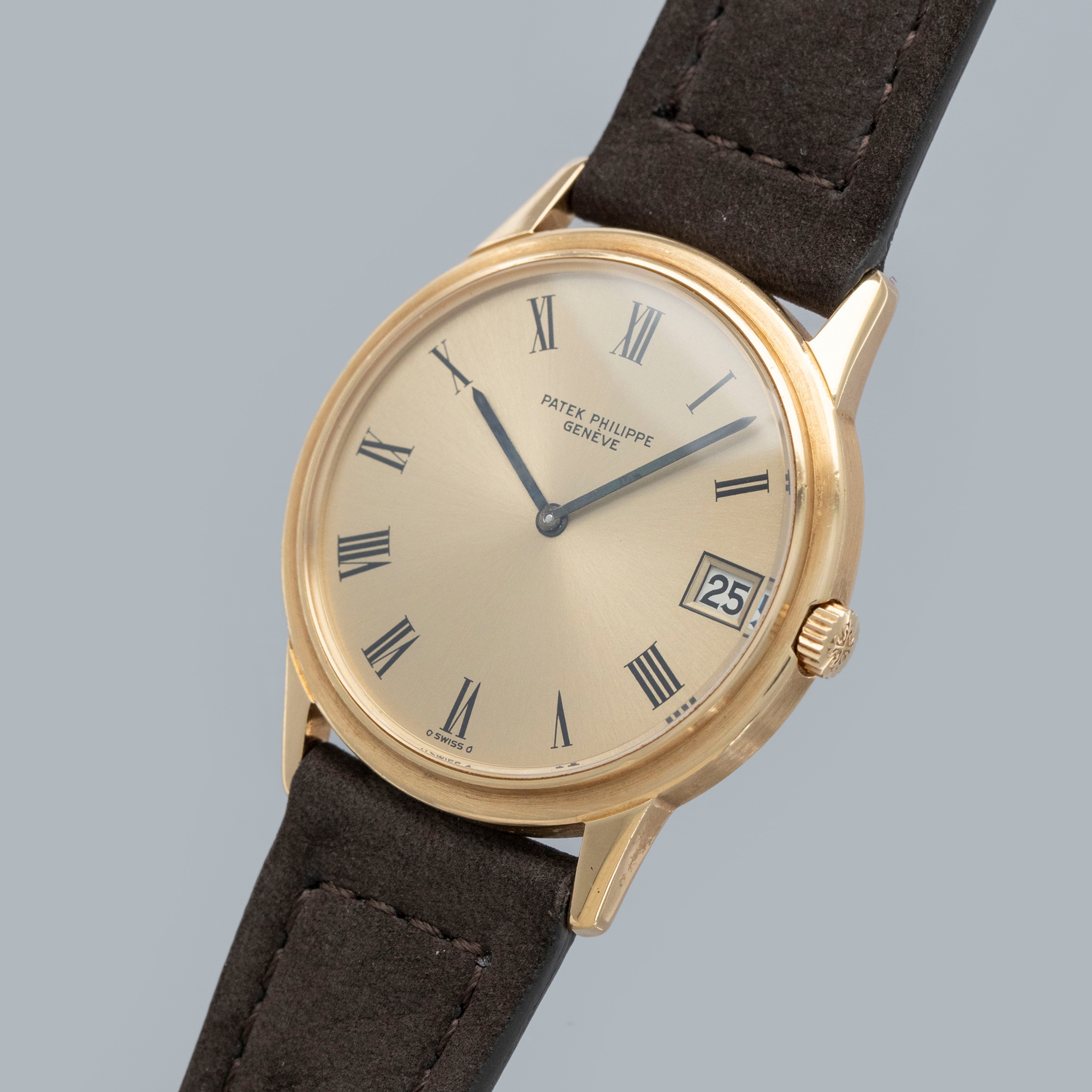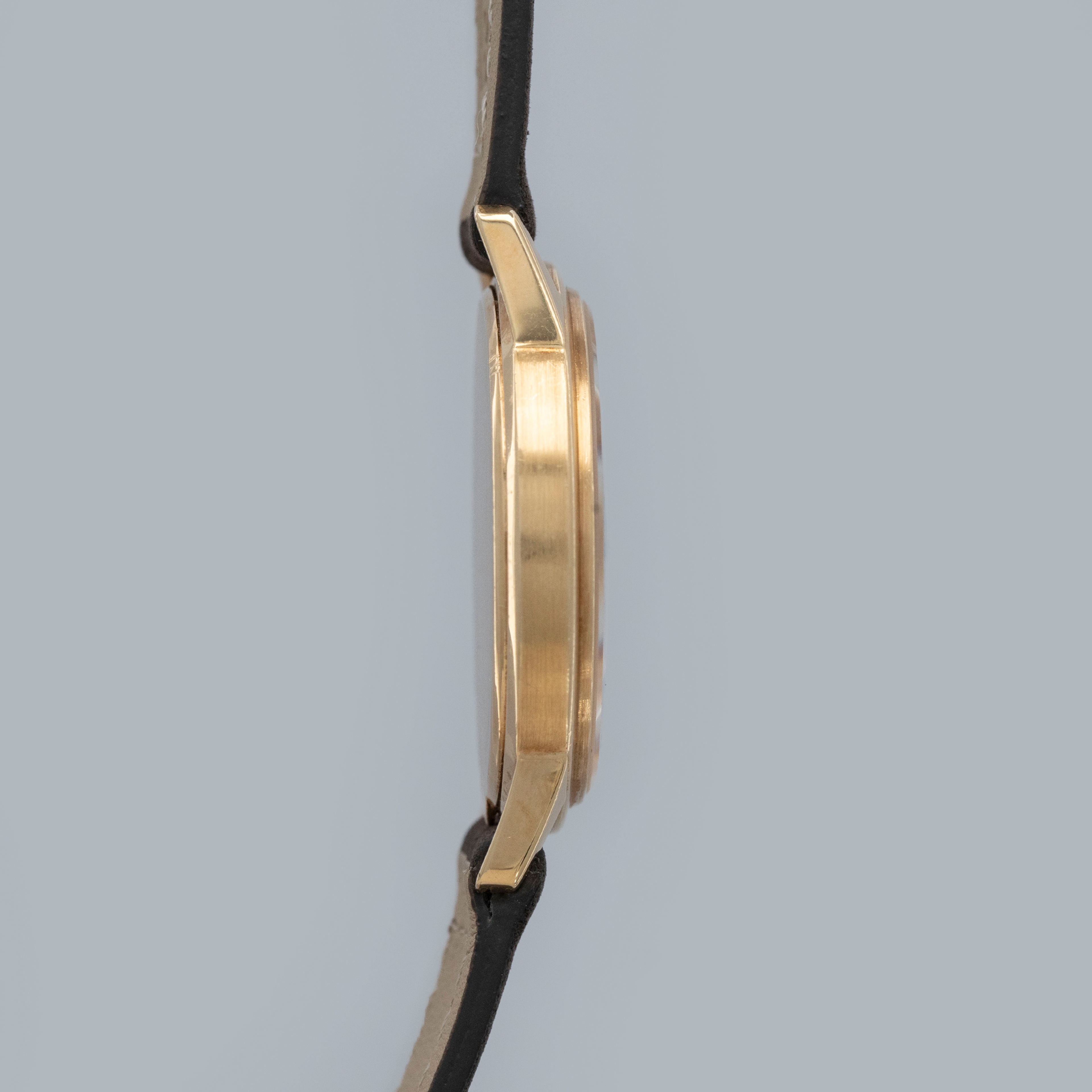 The watch is in overall excellent condition. The yellow gold case shows light scratches and a couple of tiny nicks, as expected for a watch of this vintage. The Patek Philippe logo winding crown remains very well defined. The dial and hands are near-mint. It comes fitted with a new Collectibility leather strap and a yellow gold Patek Philippe pin buckle, which is in excellent condition. The watch comes with a Patek Philippe Archive Extract.