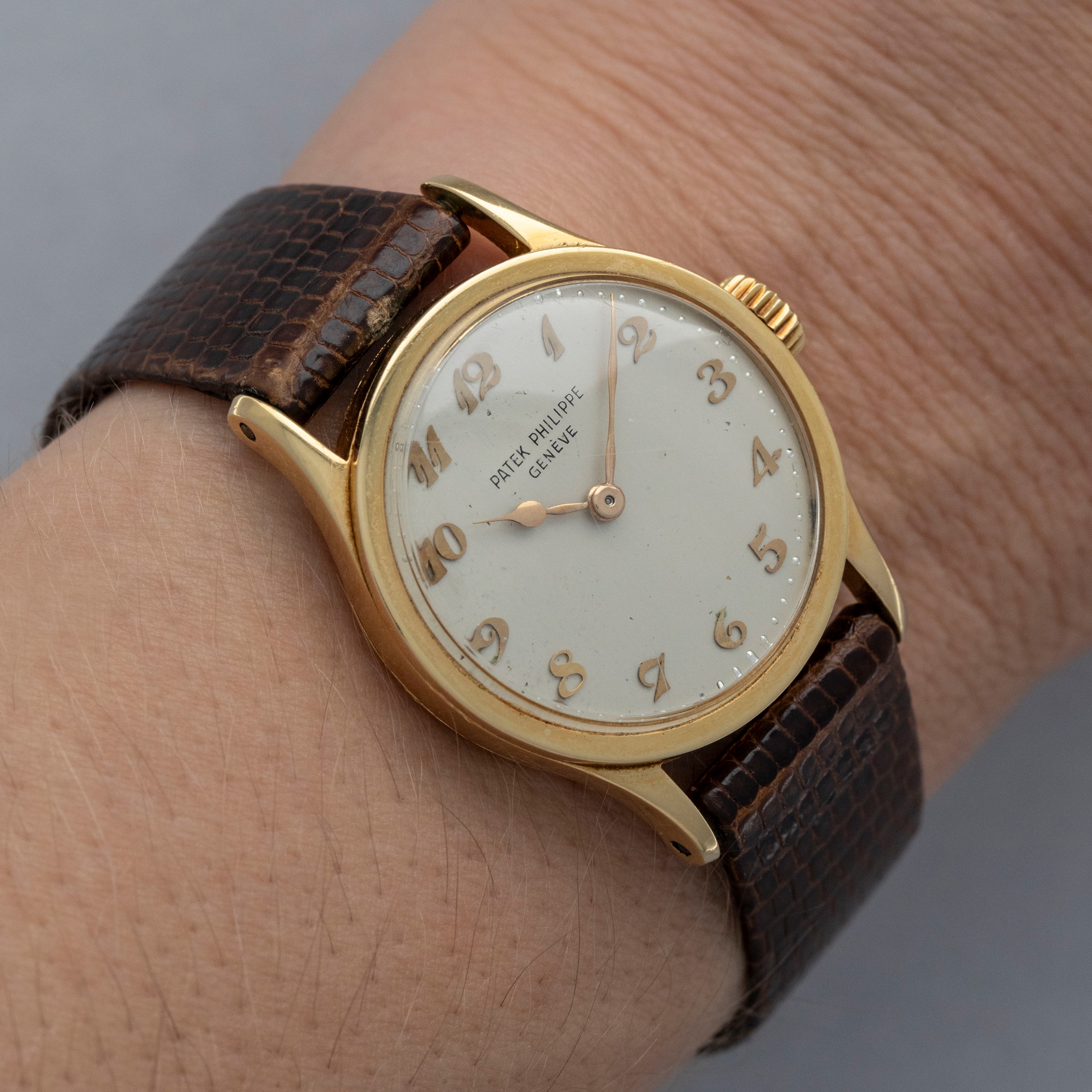 Released in 1932 and named after the cross that the Calatrava Knights paraded around Spain and Portugal during the 12th and 13th centuries, the Patek Philippe Calatrava was released as a simple timepiece with broad appeal that would help secure Patek Philippe's finances following Jean and Charles Henri Stern's investment in the brand in the same year. Designed with a strict Bauhaus-inspired aesthetic in mind, the Calatrava used, and continues to use, simplicity as its means of establishing intrigue around the craftsmanship required to construct such a stunning timepiece. Without a complicated movement or a busy design, collectors gravitate towards the Calatrava's clean aesthetic and practicality, and the ref. 3435R we have here embodies that same design language perfectly. Launched in 1935 and offered until 19556, it is a tremendously rare timepiece. Powered by a handful of different manual-wind movements depending on the production period, the ref. 448 that we have here is a 28mm Calatrava with the collection’s famously unapologetically stoic design with thin straight lugs, a thin bezel, and an uncluttered silver dial made, which includes beautiful applied Breguet numerals.