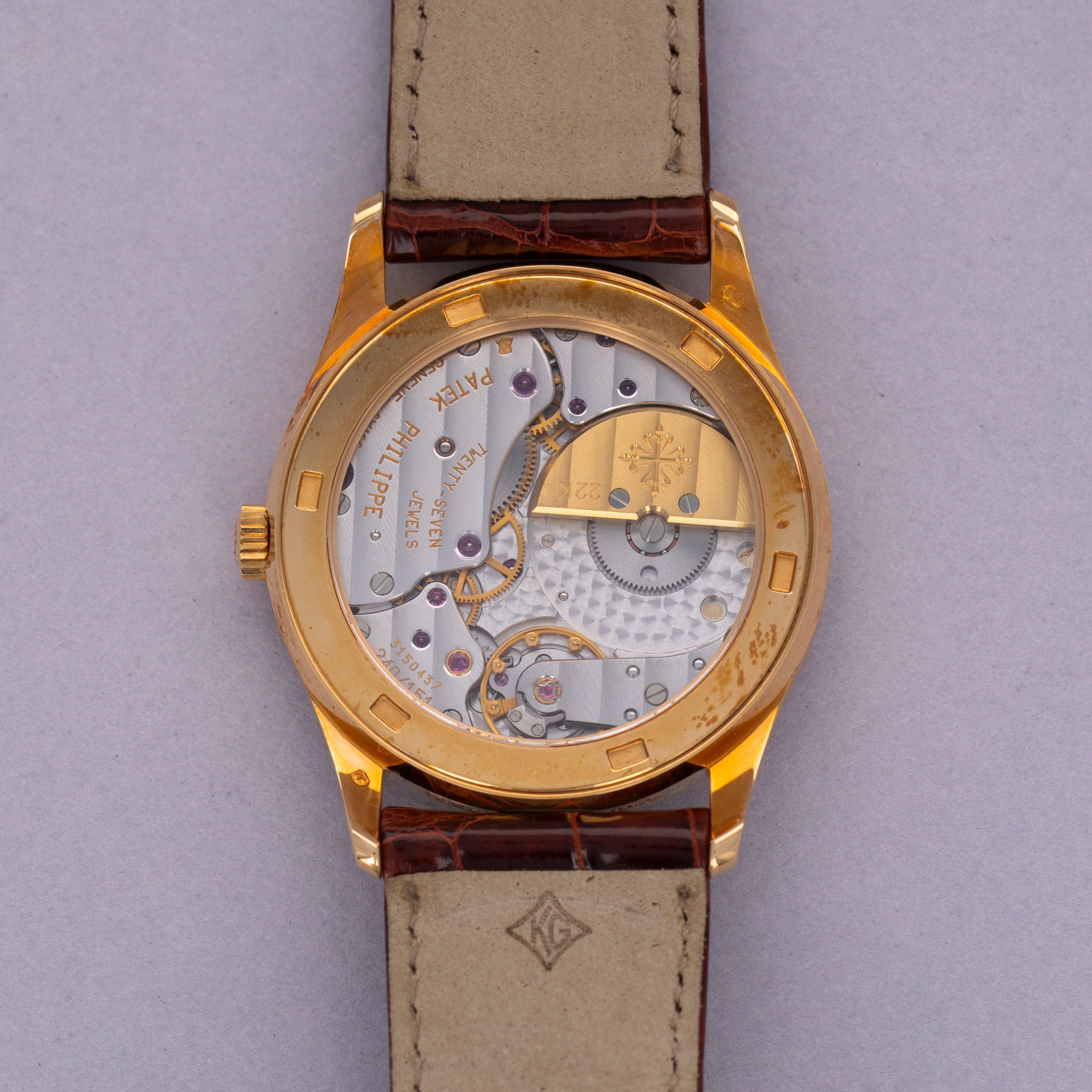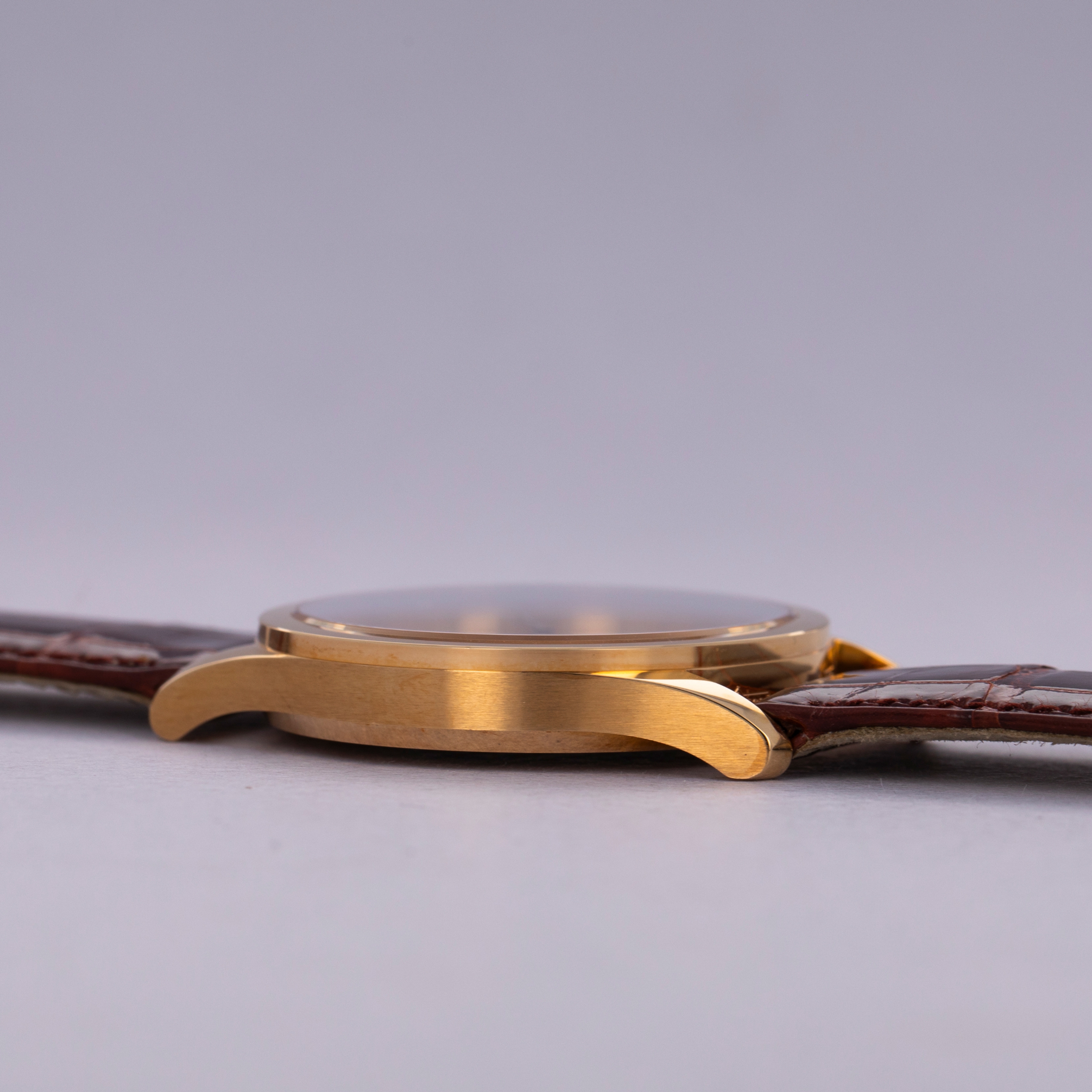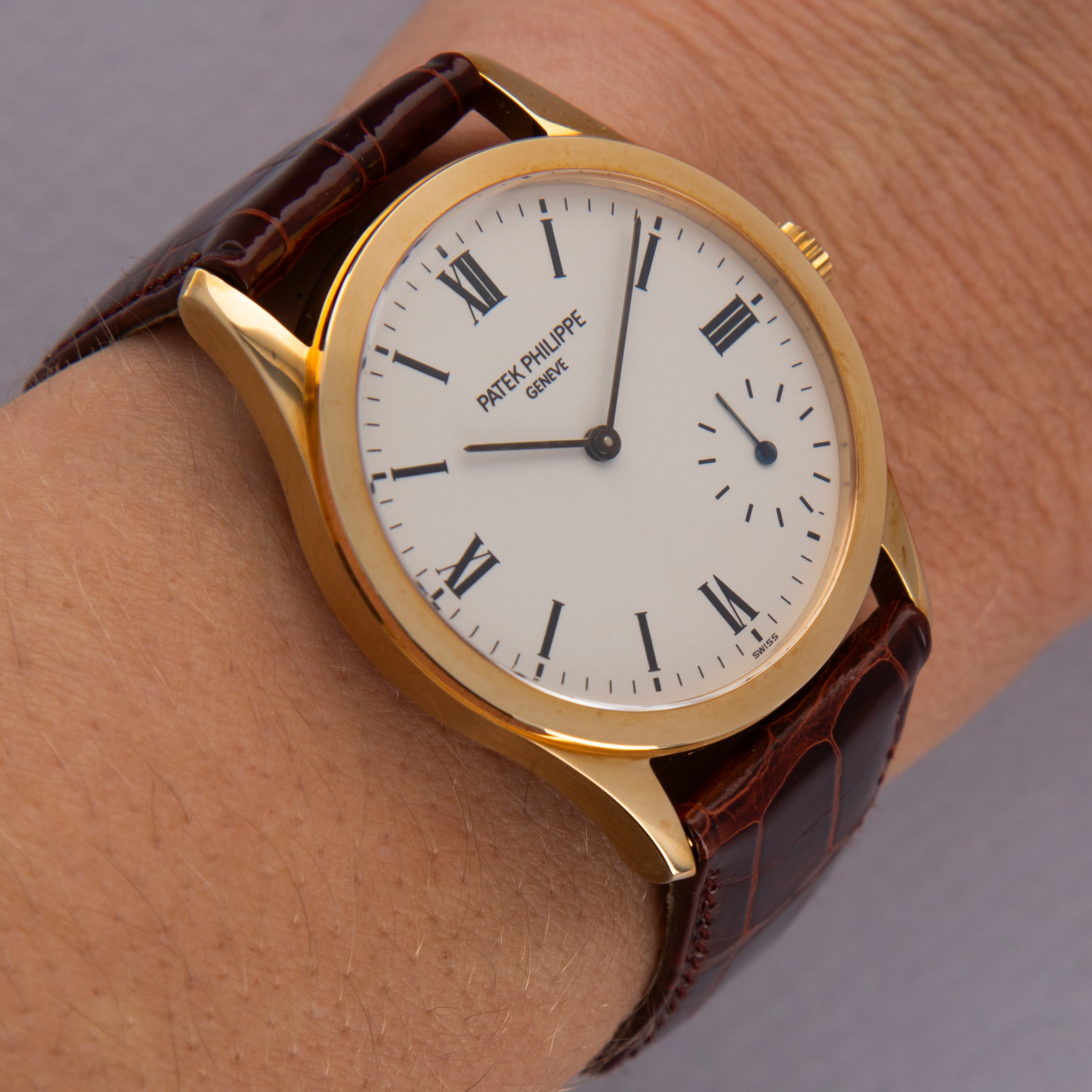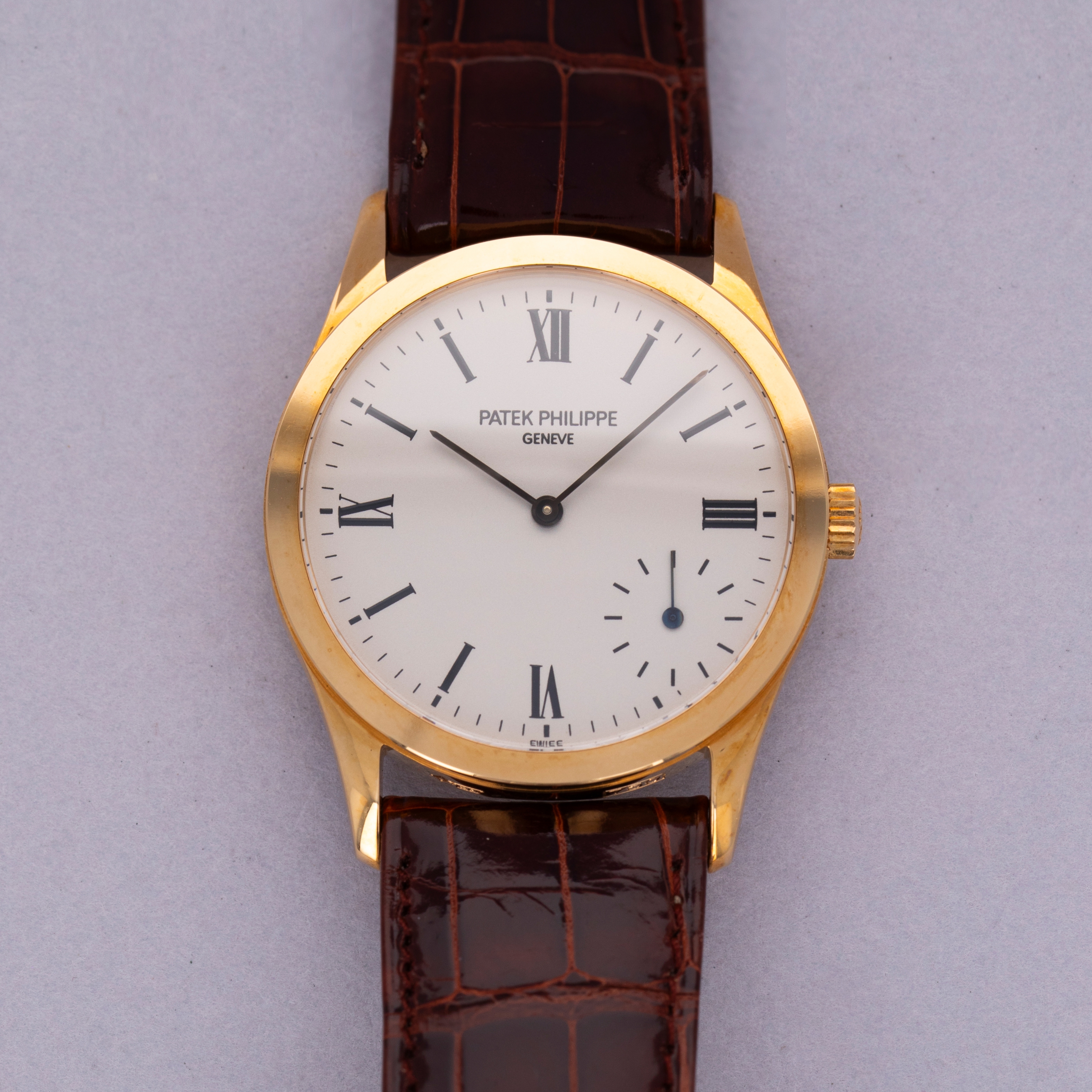 Resembling the Calatrava's original reference, the ref. 96, with a slight facelift, the Calatrava ref. 5026 builds upon the Calatrava collection's history as one of Patek Philippe's best-known and best-looking dress watches. Merging Patek's esteemed design language with another iconic watchmaker, Breguet, the ref. 5026 blends the Calatrava's clean aesthetic and design with Breguet's eponymous Arabic numeral font for its applied markers to create an utterly stunning dial. However, as a Millenium edition variant that was launched specifically in 2000 and limited to just 130 pieces, this example’s dial features painted Roman numerals at the quarter hours and stick indices throughout the rest of the dial. Powered by the automatic micro-rotor movement cal. 240 PP which debuted in 1977, the ref. 5026 features an eccentric seconds subdial and a svelte 33.5mm case that have combined to become emblematic of the ref. 5026's design. Launched in 1997 and discontinued in 2002, this short-lived reference blurred the lines between two of watchmaking's most iconic brands as Patek Philippe created a genuinely fashionable timepiece that still exists at the forefront of watchmaking fashion to this day.
