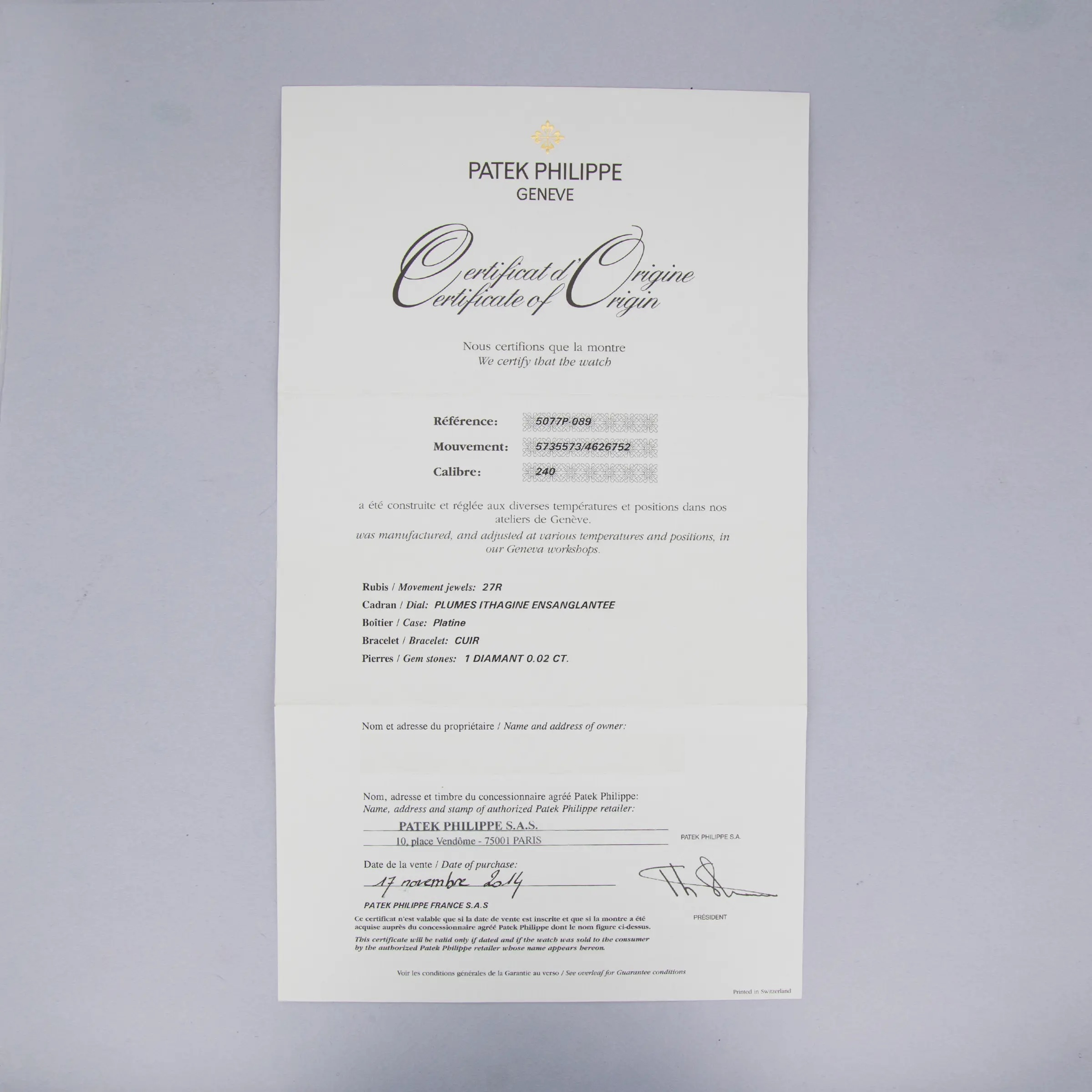 Patek Philippe Calatrava 5077P-089 Pheasant Feathers Cloisonne Dial