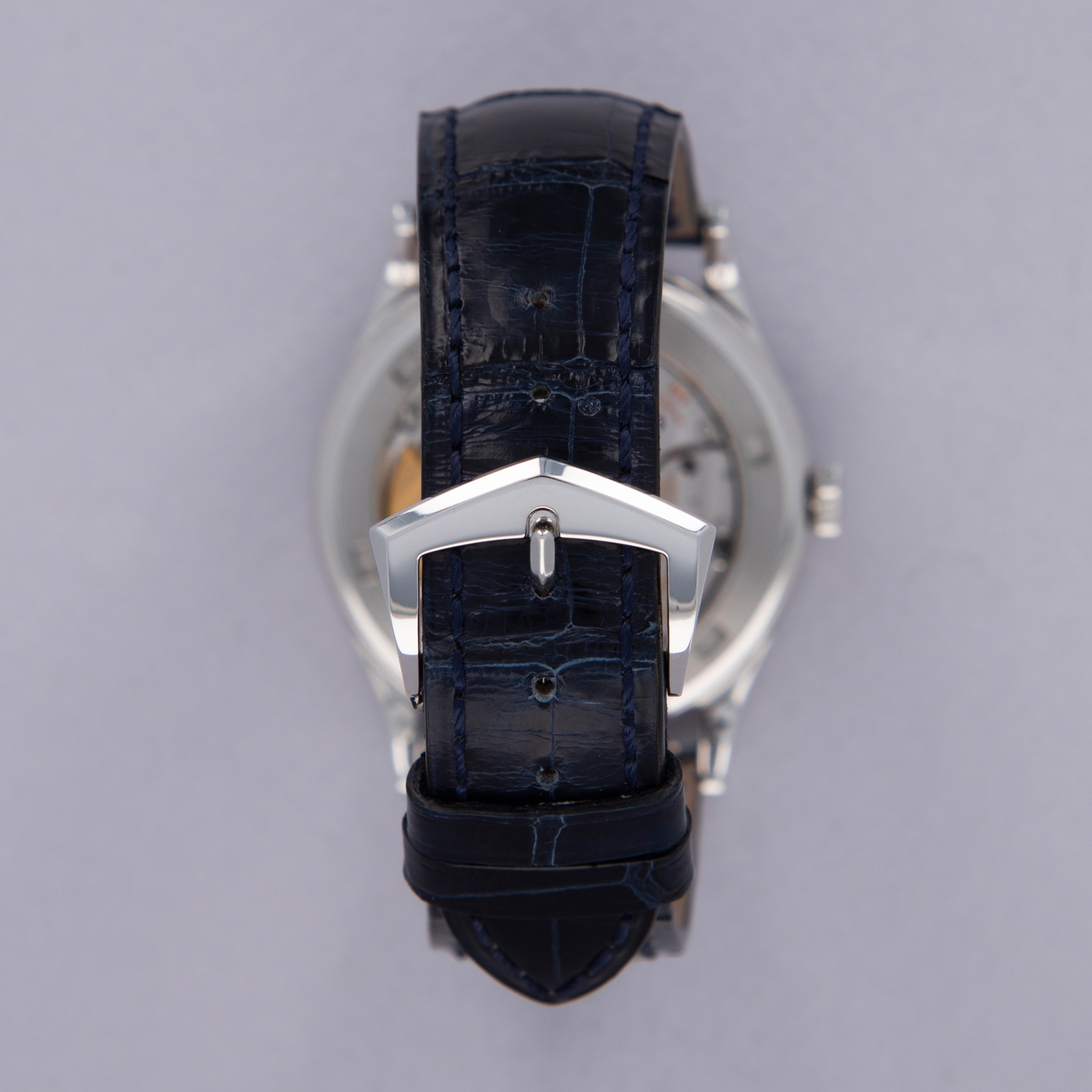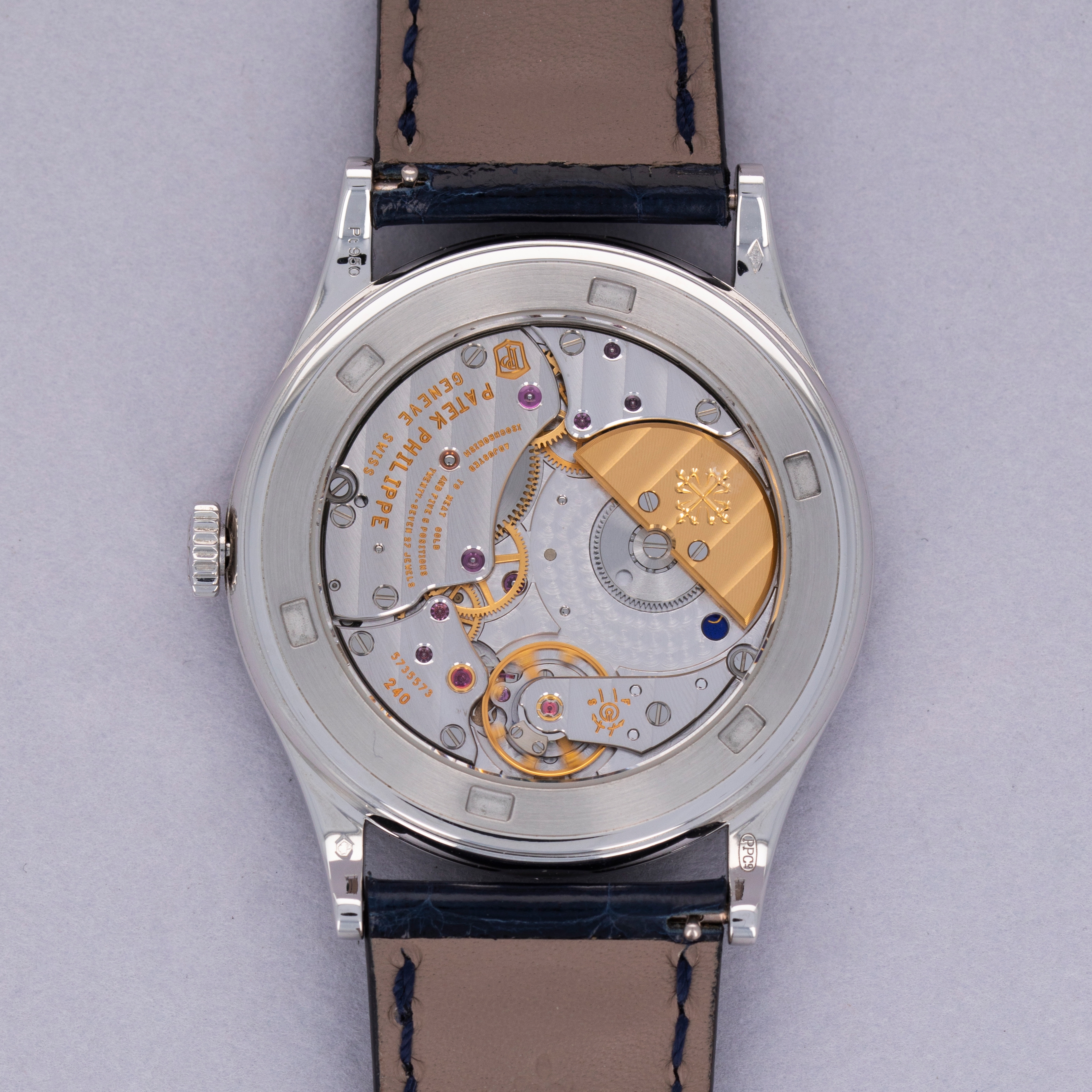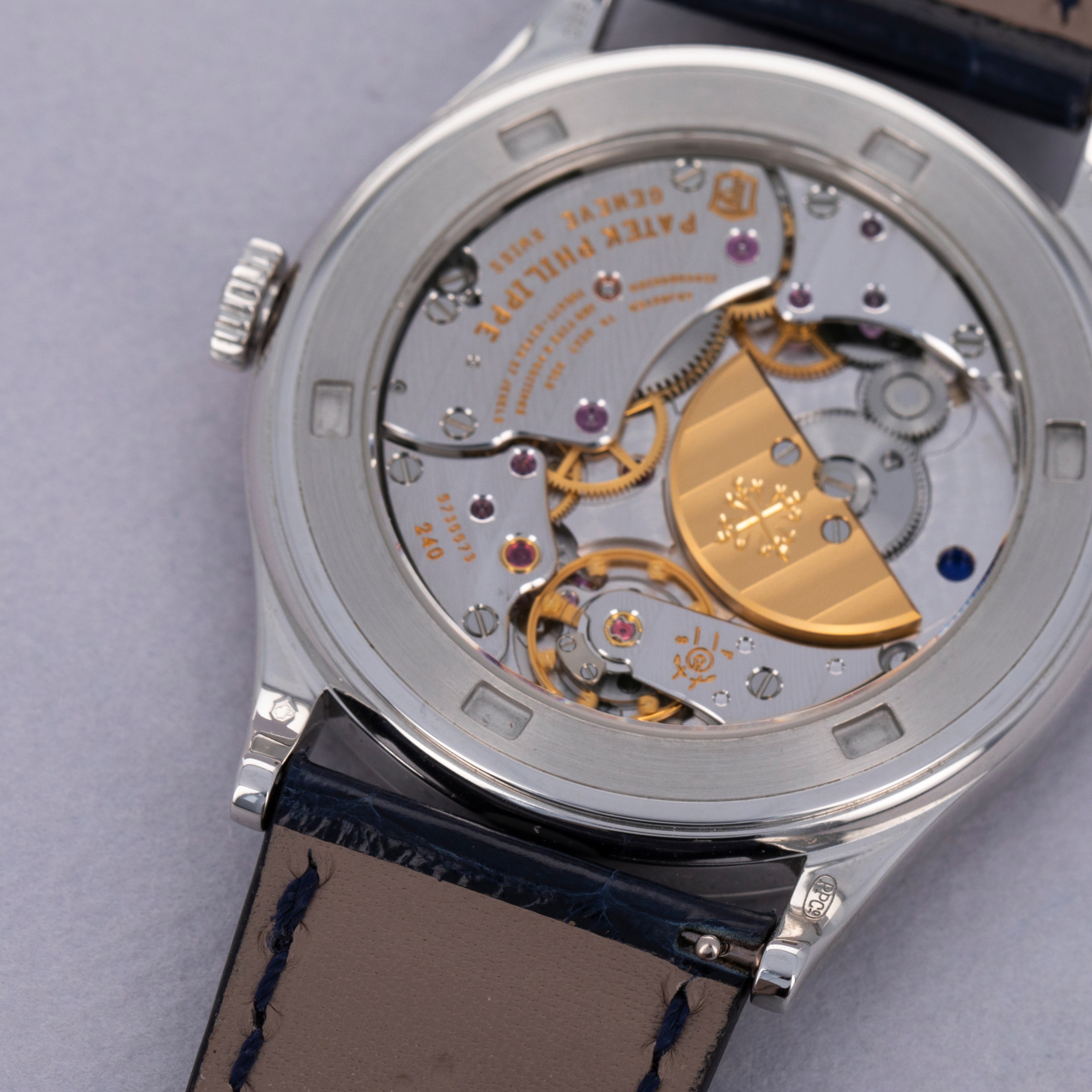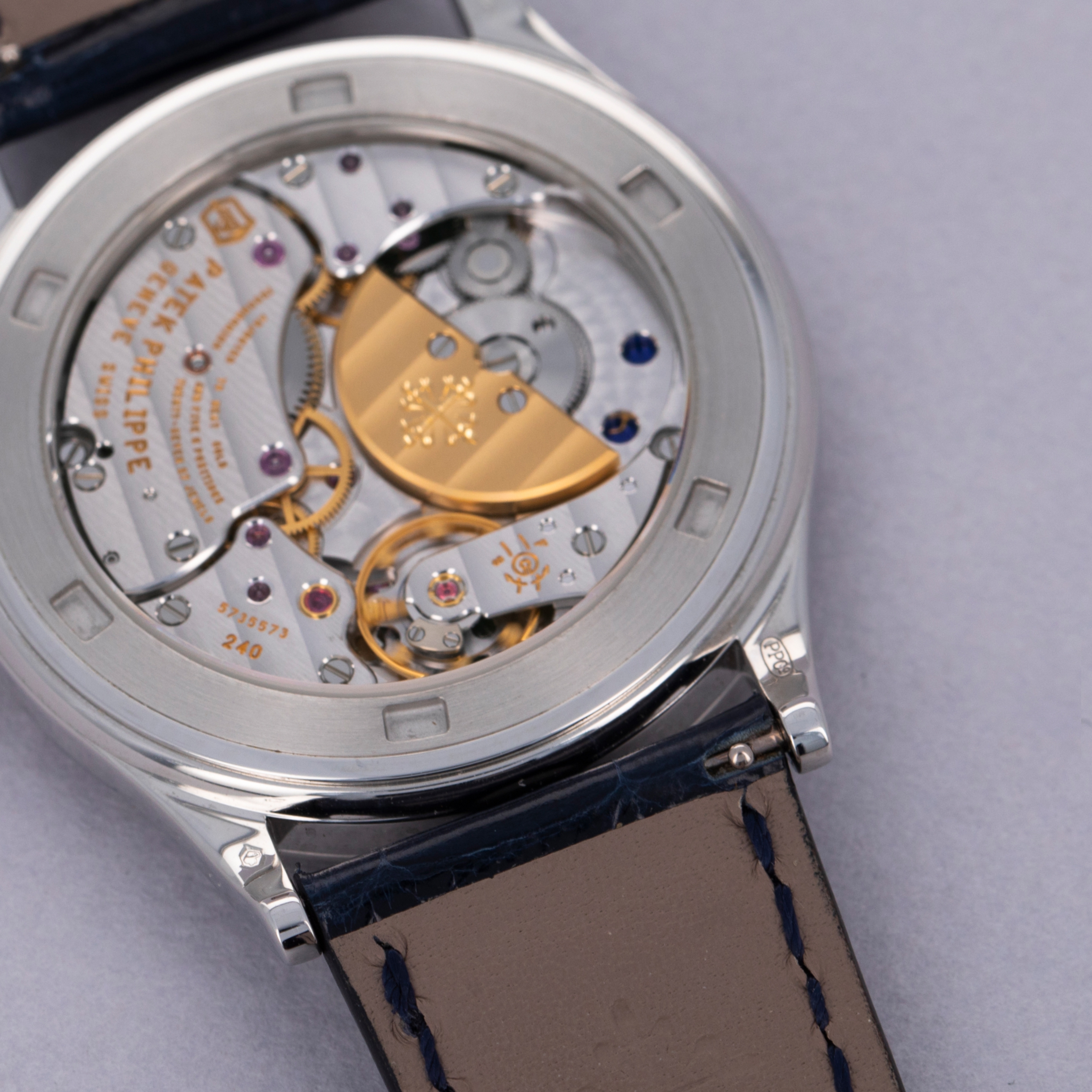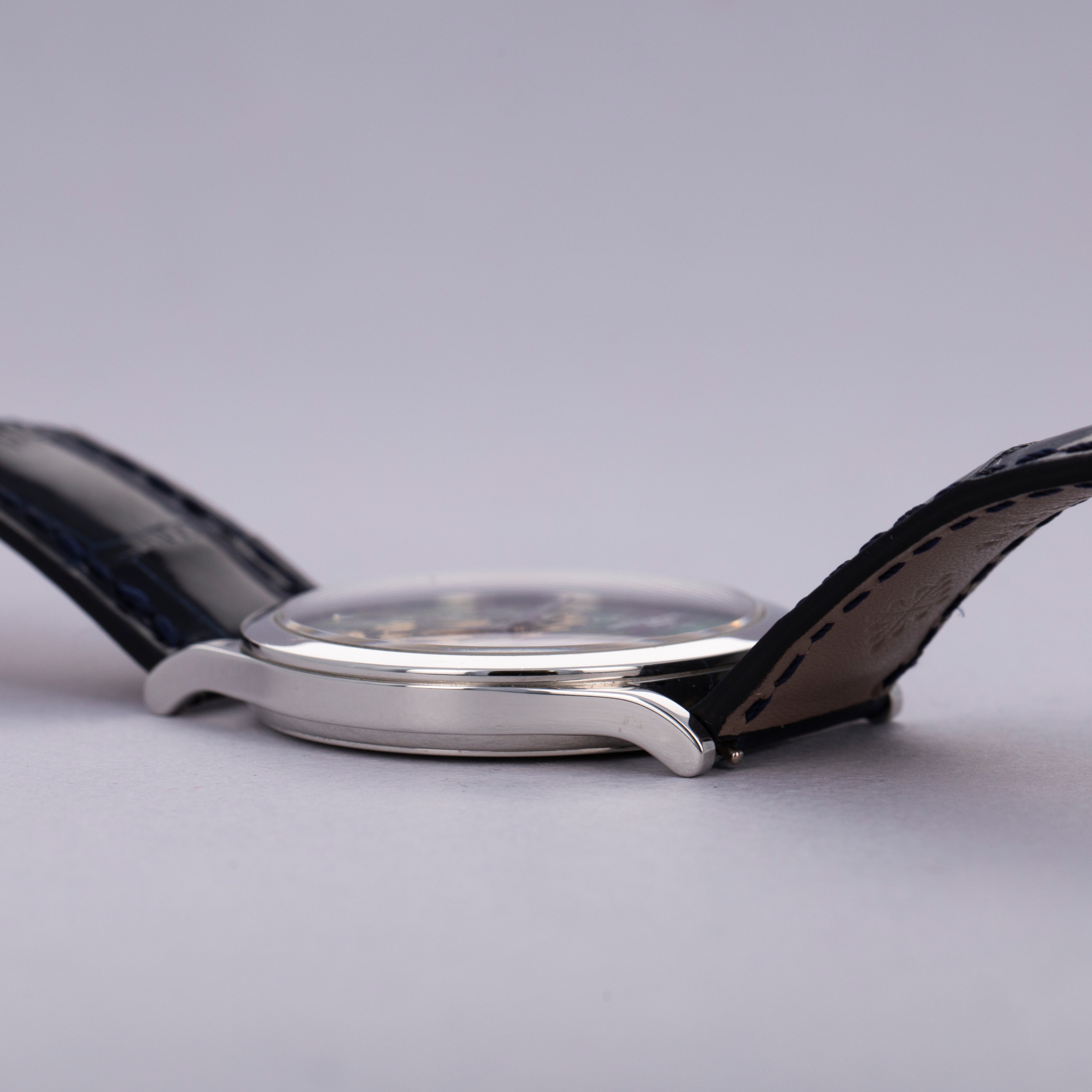 Boasting a relatively understated 38mm platinum construction, the ref. 5077P has clearly been designed so that the majority of its attention goes to its dial.