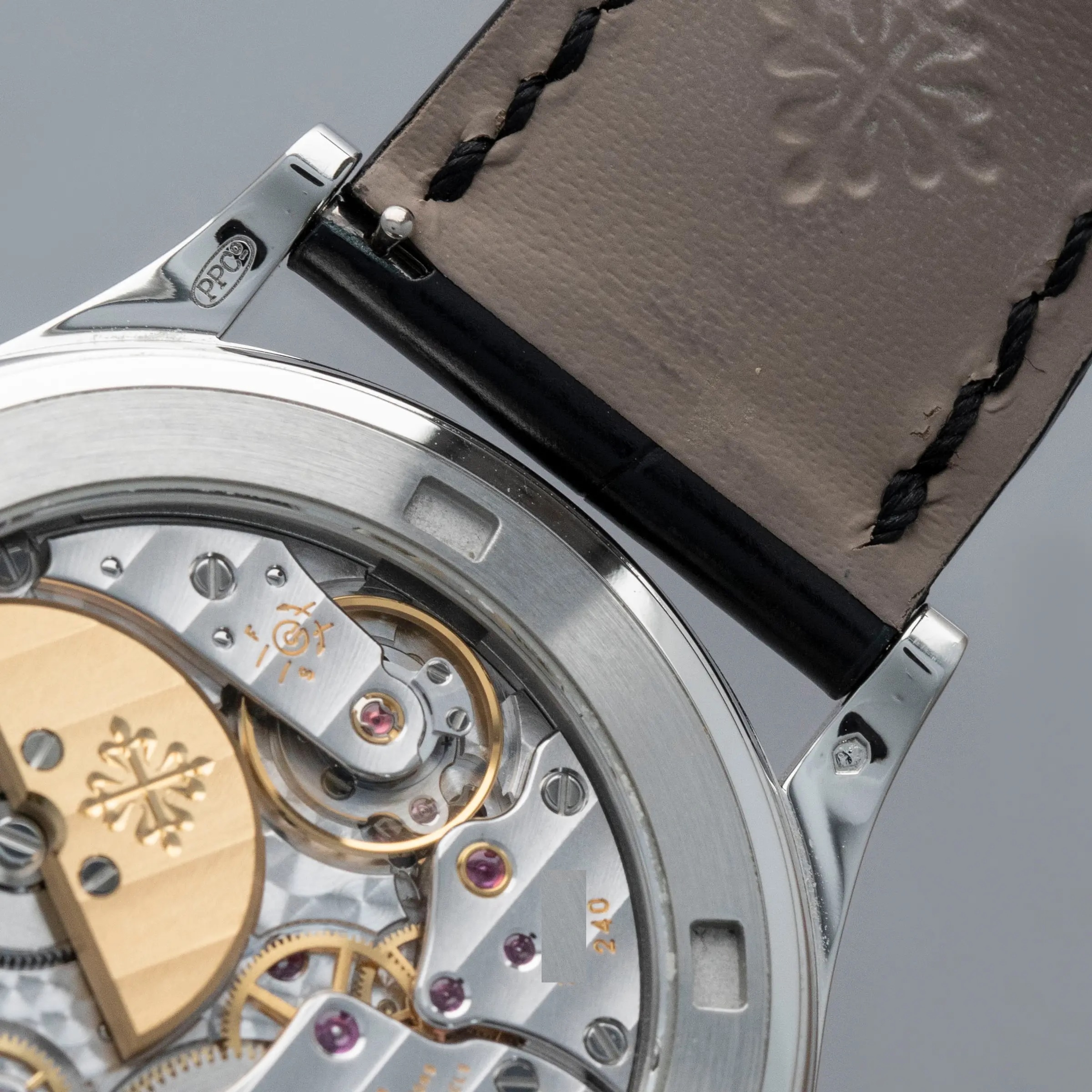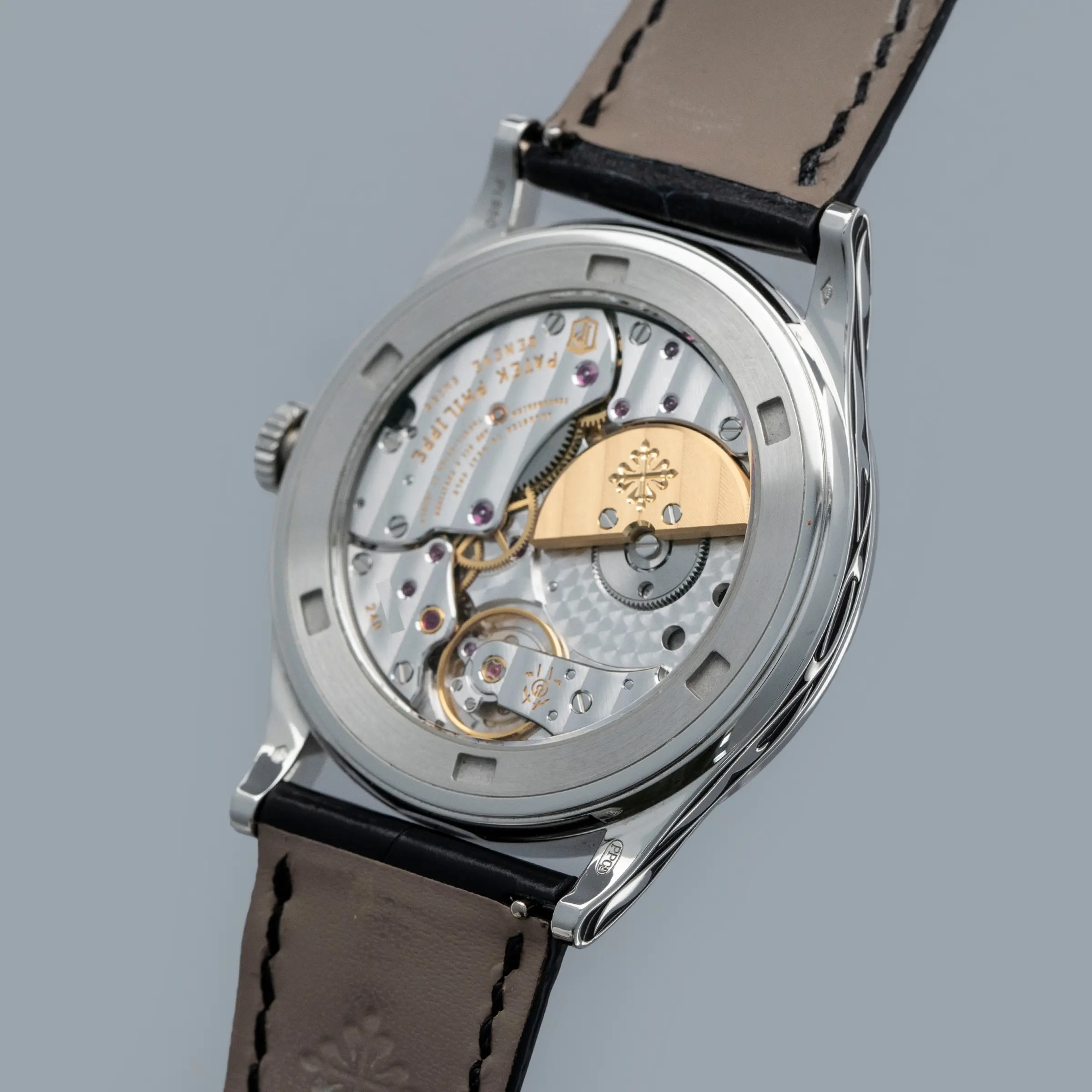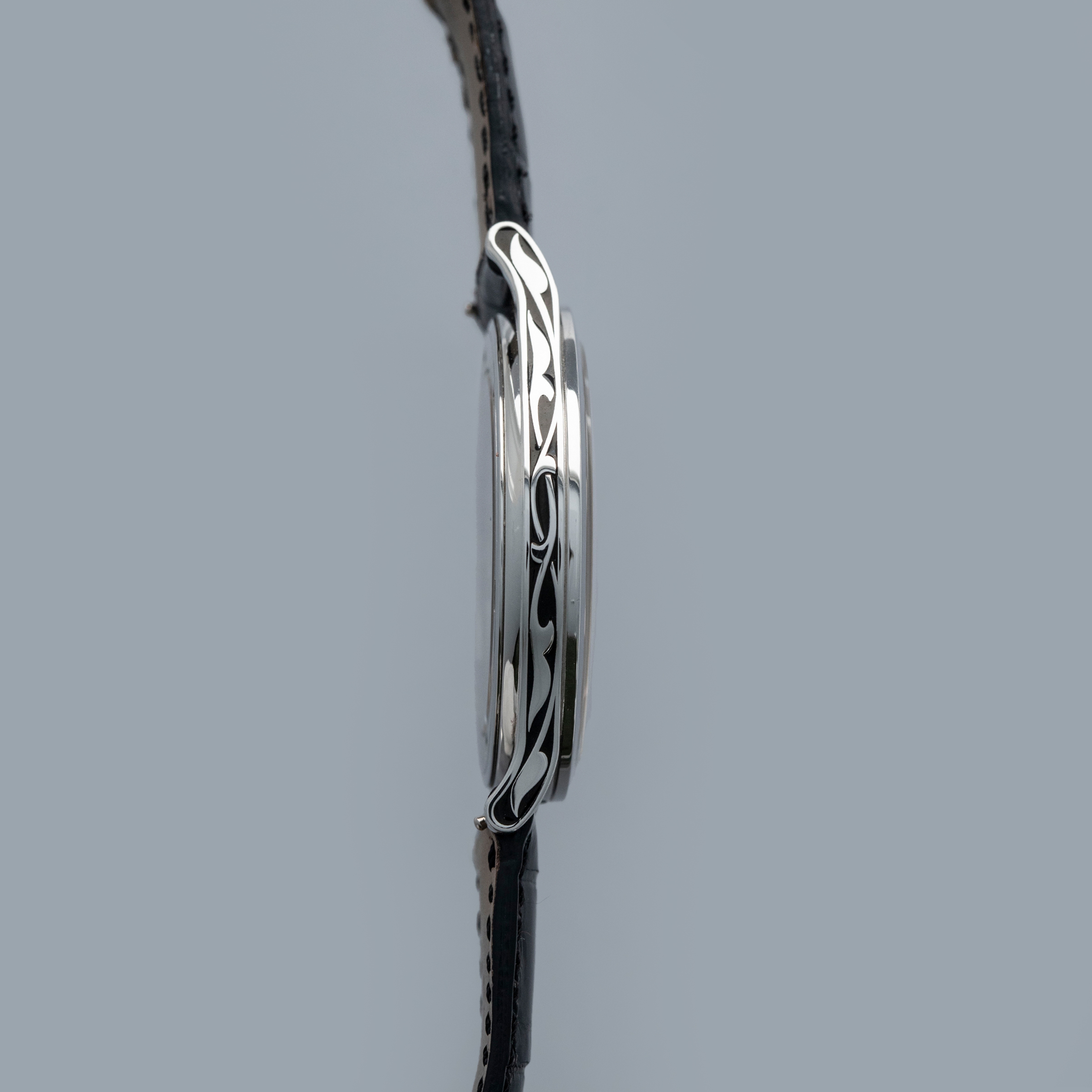 Ensuring no stone is left unturned, but still keen to leave its dial as the focal point, Patek decided to decorate both sides of the ref. 5088P's platinum midcase with the same decorative engraved patterns and black enamel as its dial.