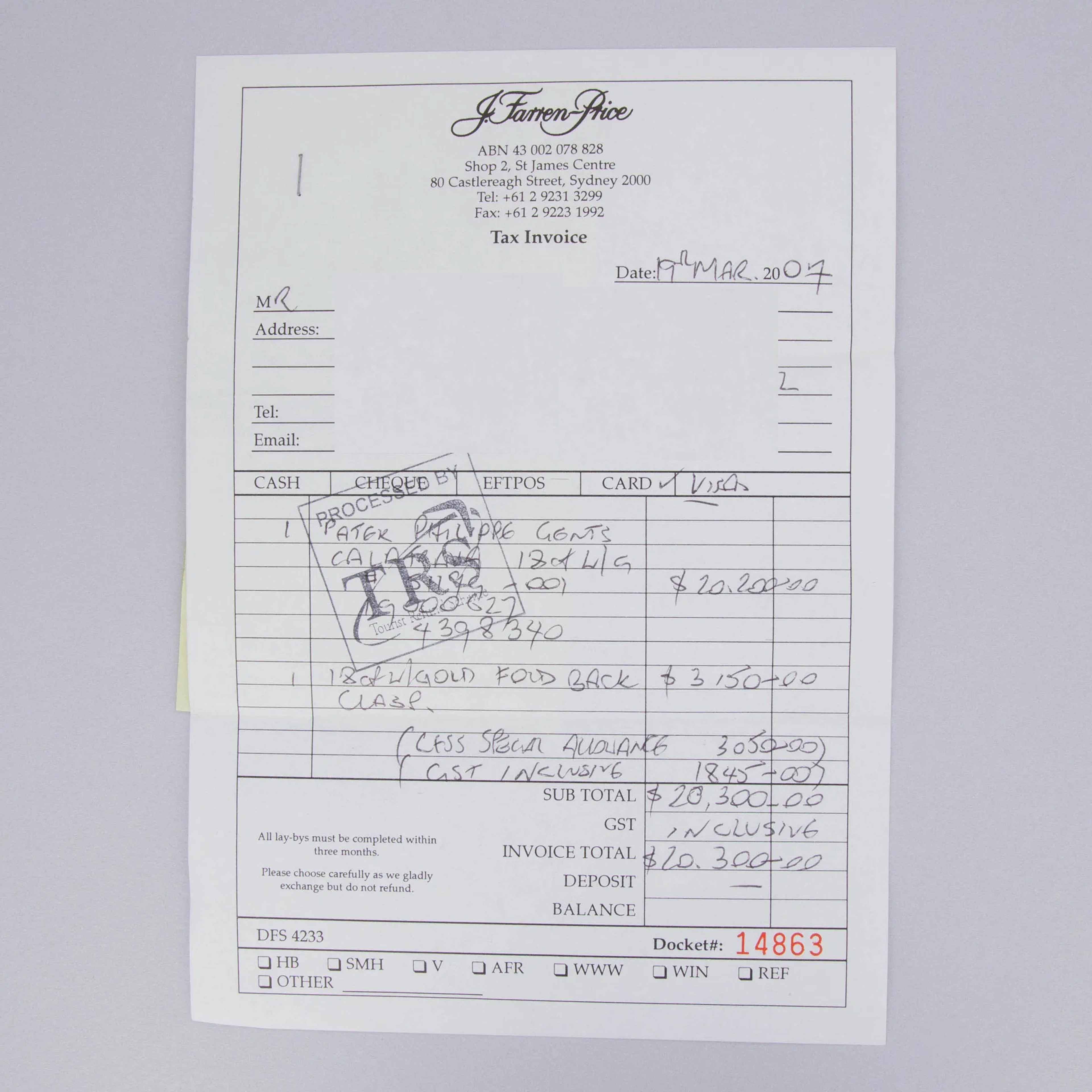 Watch, box, papers and booklets