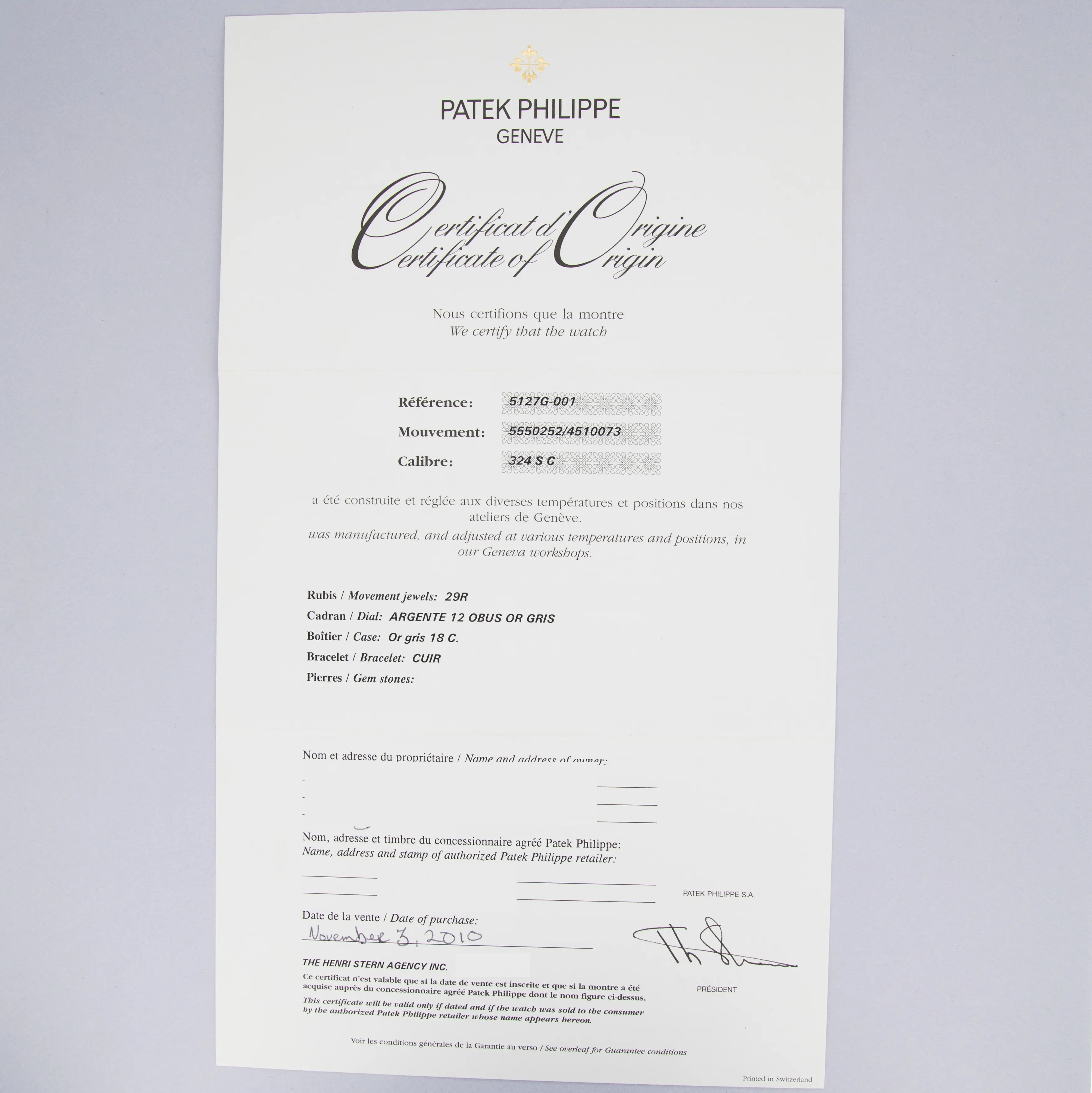 Patek Philippe Calatrava 5127G-001 18k WG Box and Papers
