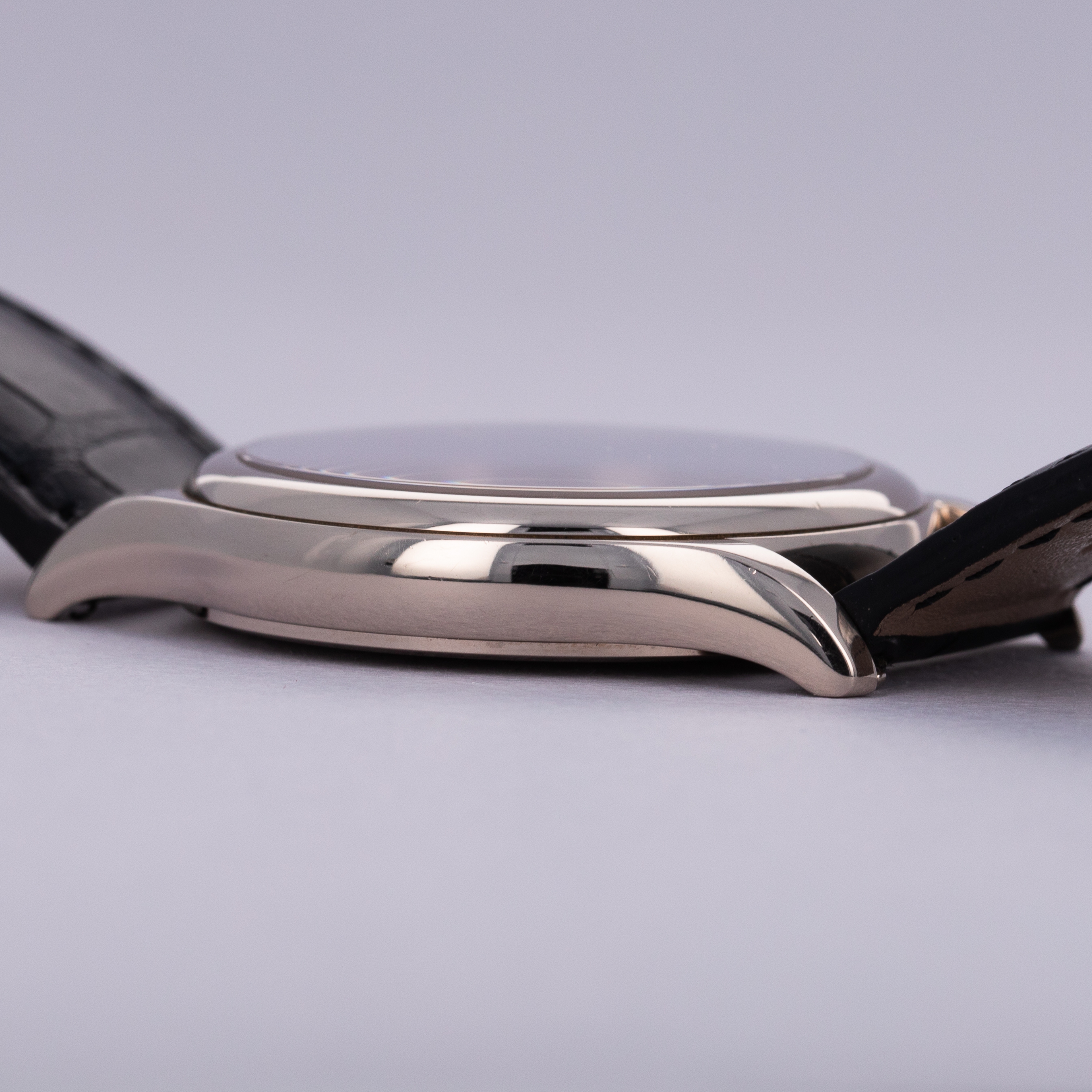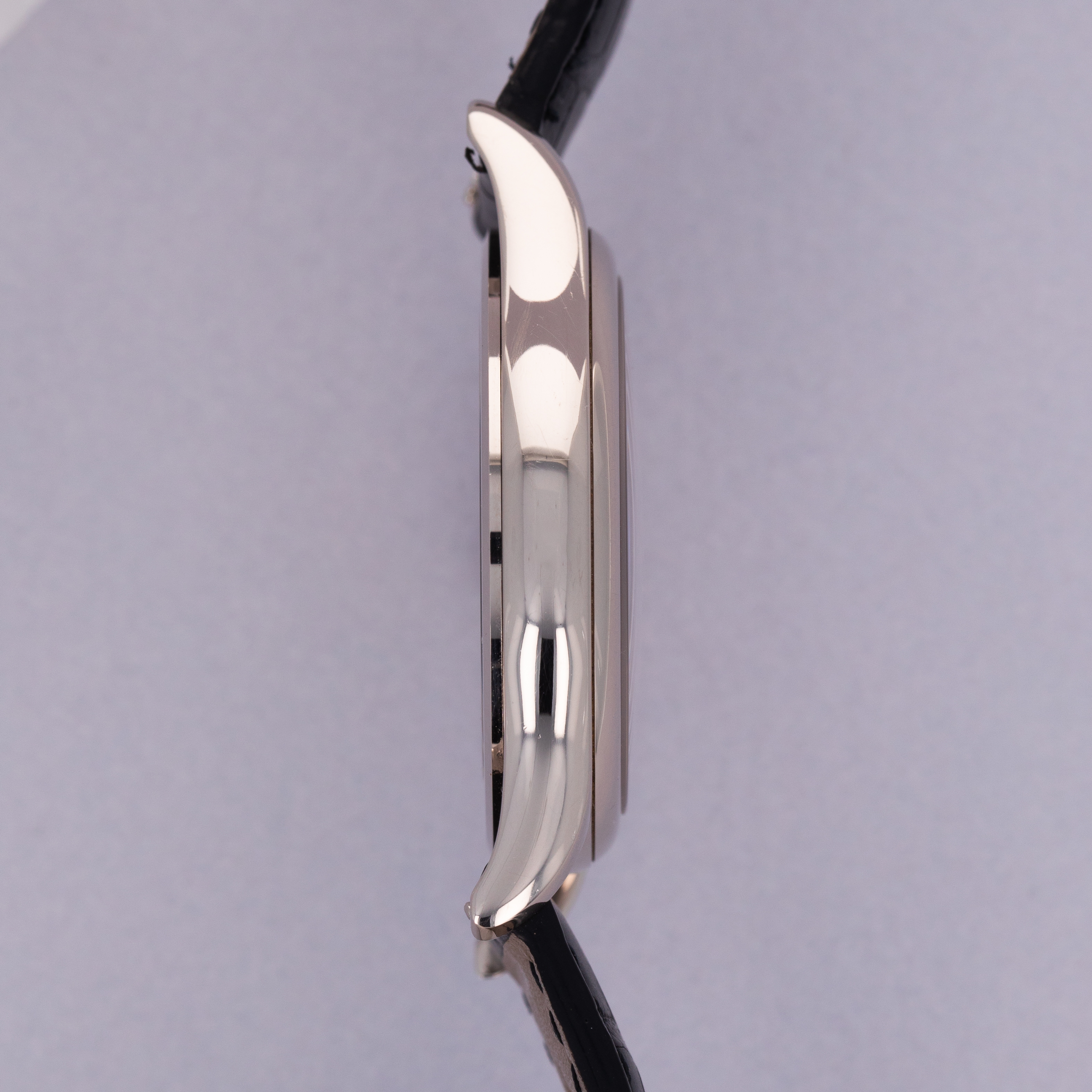 Measuring 37mm in diameter and made of 18kt white gold, the ref. 5127G features the perfectly-sized case for a modern dress watch. With its elegant domed bezel, polished surfaces, and thin 9mm profile, it wears with a supreme sense of decorum, as one might expect from Patek.