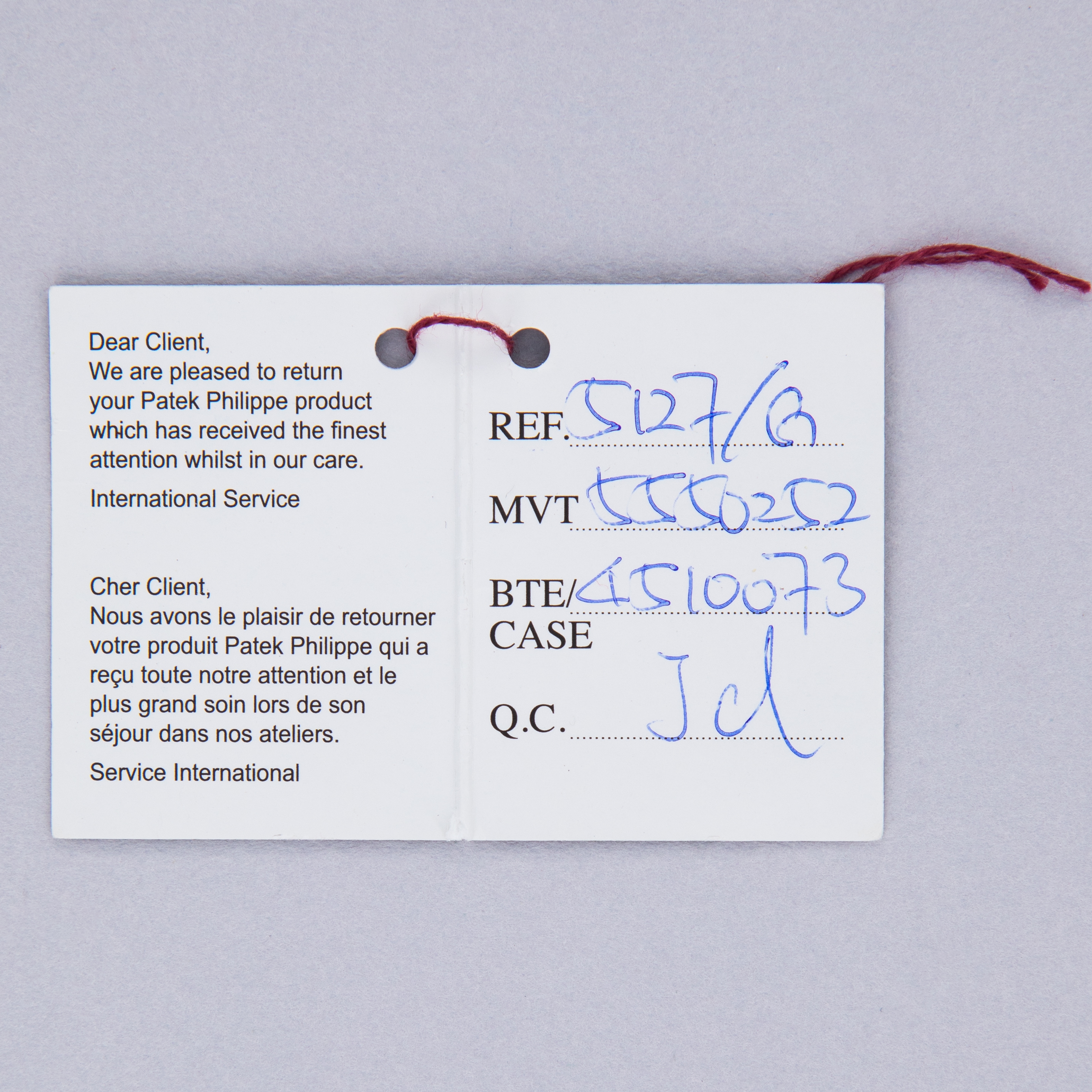 Box and Papers, Service Tag