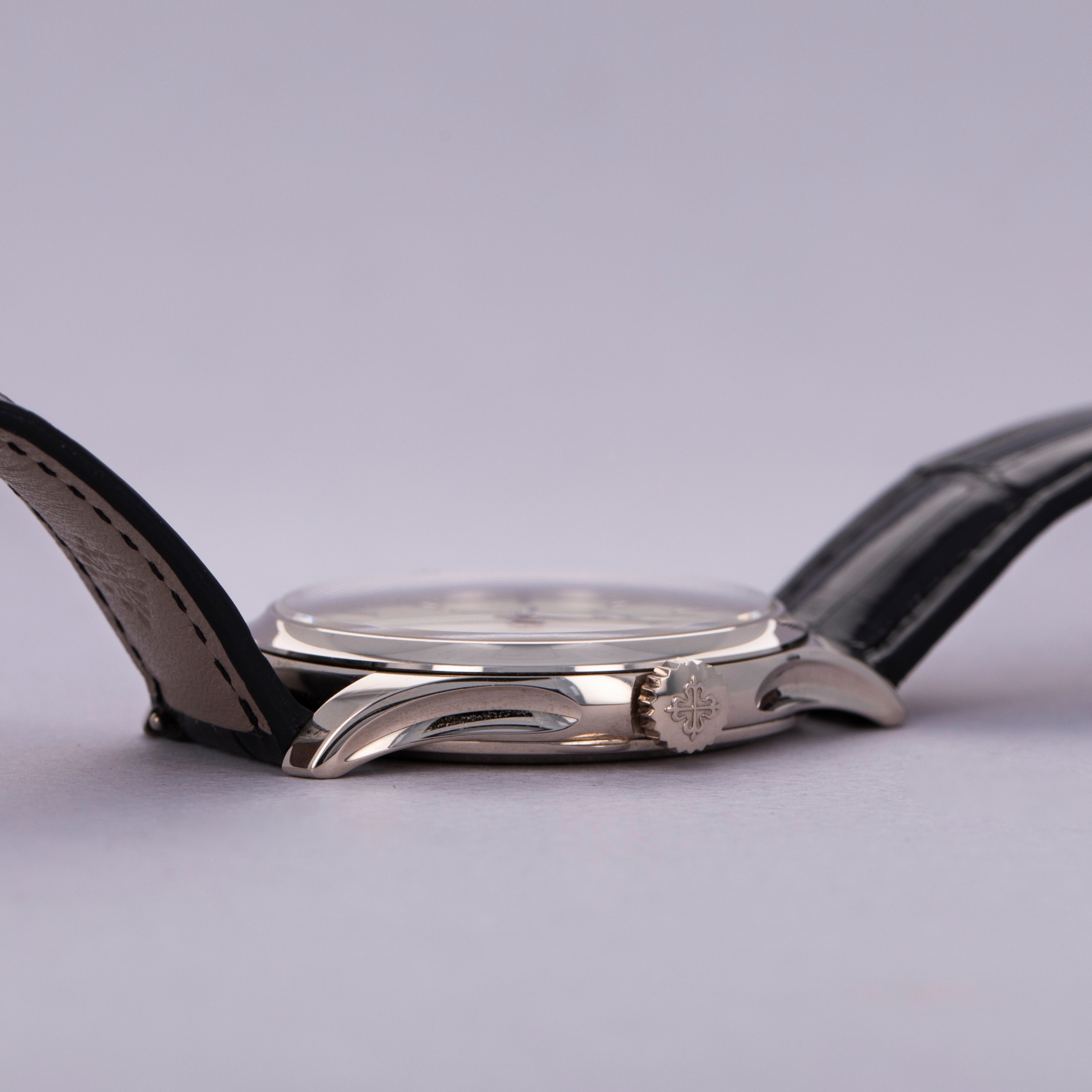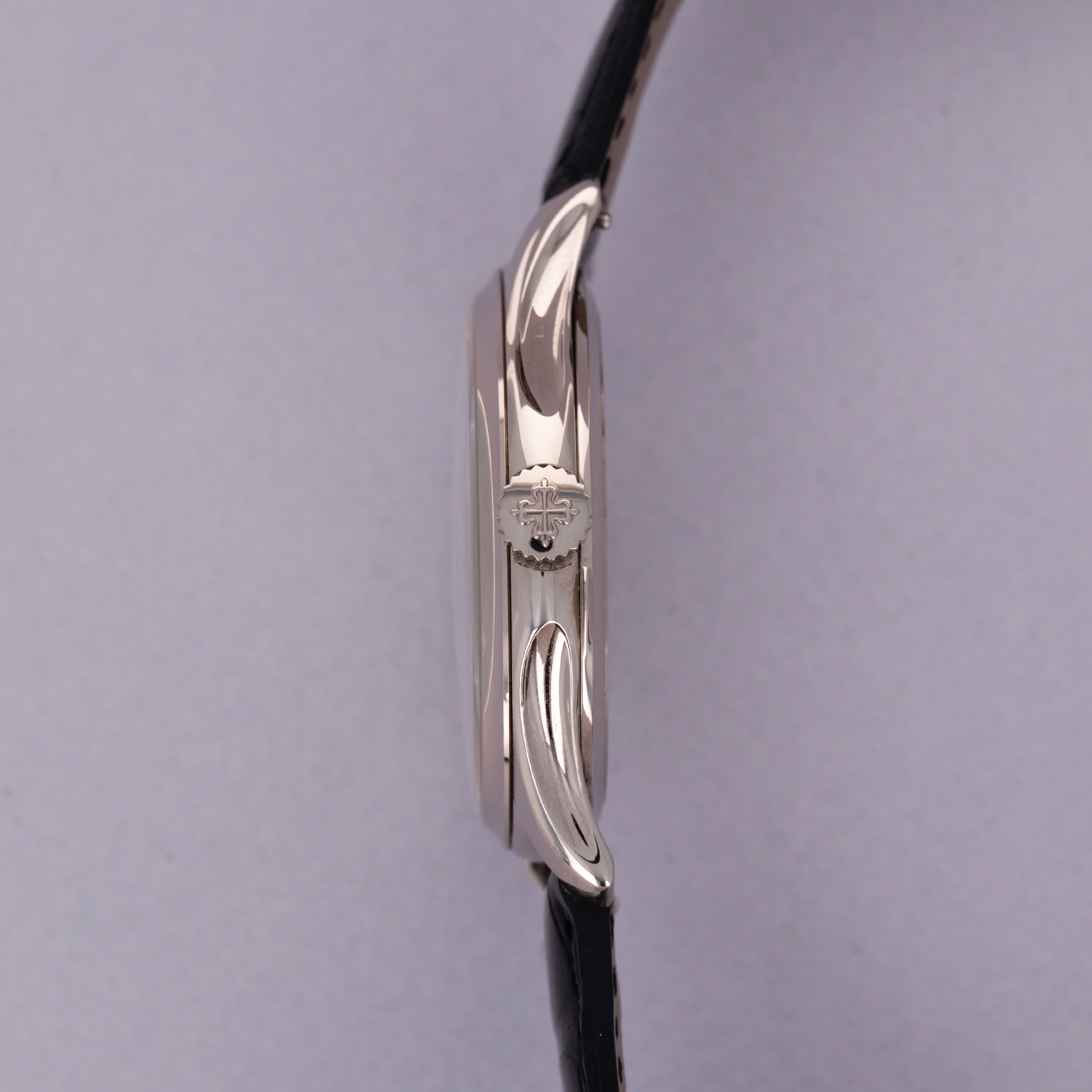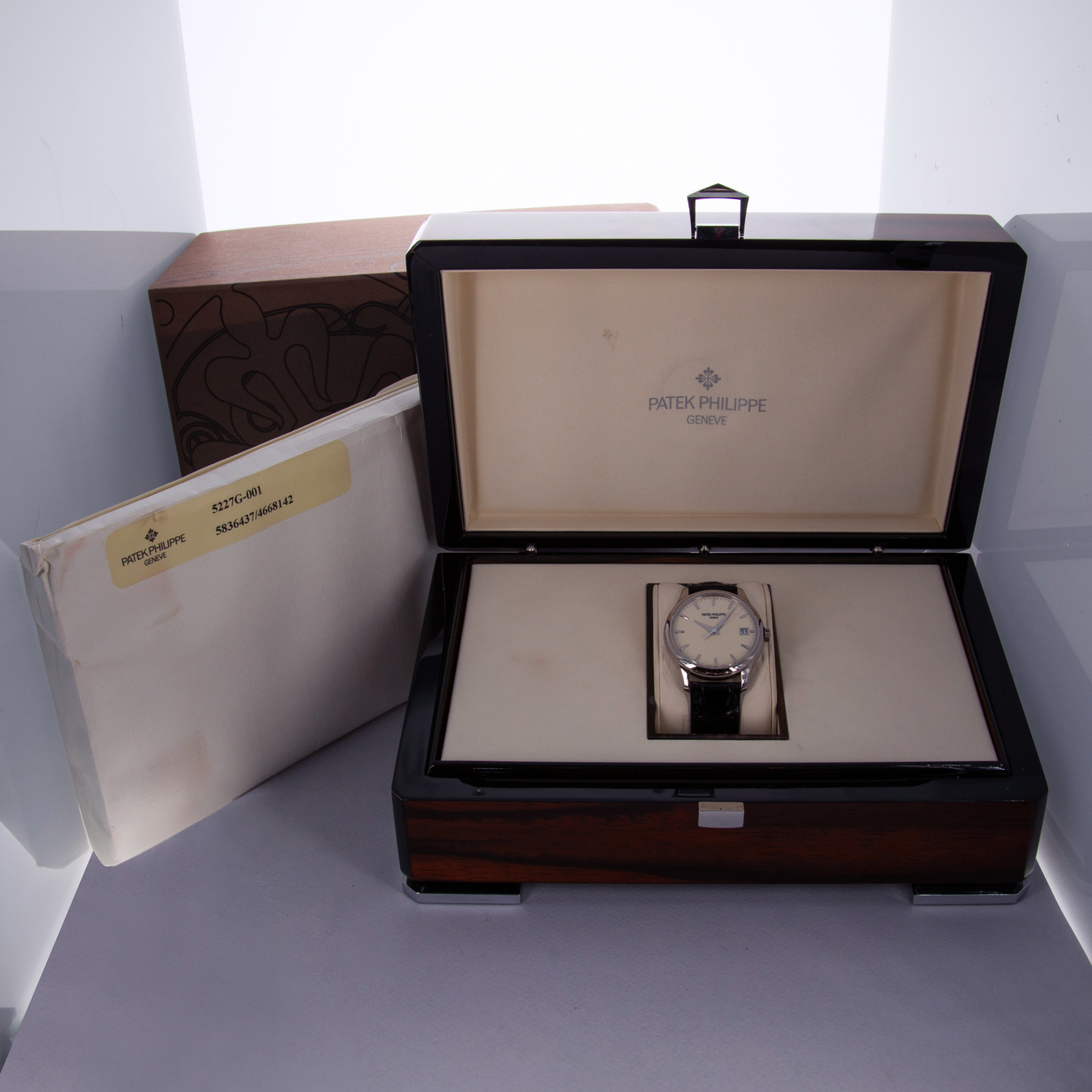 Easily situated amongst the most iconic dress watches ever, the Patek Philippe Calatrava embodies the very essence of what a classically styled timepiece should look like. Defining the entire market niche in 1932 when it debuted, the Calatrava has become the foundation of Patek Philippe’s elegant offerings, with the collection growing to include a multitude of references of various designs across a variety of dials, materials, complications and more. Offered here we have the Calatrava ref. 5227G, which builds upon the Calatrava collection's history as one of Patek Philippe's best-known and best-looking dress watches. Boasting Patek's esteemed design language and launched in 2013, the ref. 5227G features an 18kt white gold case with polished surfaces, a domed bezel and a gorgeous off-white lacquered dial that houses white gold dauphine hour hands and applied indices. An exercise in minimalism, as per the Calatrava’s Bauhaus-inspired design language, the Calatrava’s clean aesthetic has been the bedrock of its offering for decades, on which the ref. 5227G builds upon with one subtle difference, the inclusion of an Officer’s caseback that hinges open to reveal a sapphire crystal caseback that proudly displays the automatic cal. 324 SC movement that powers the ref. 5227G.
