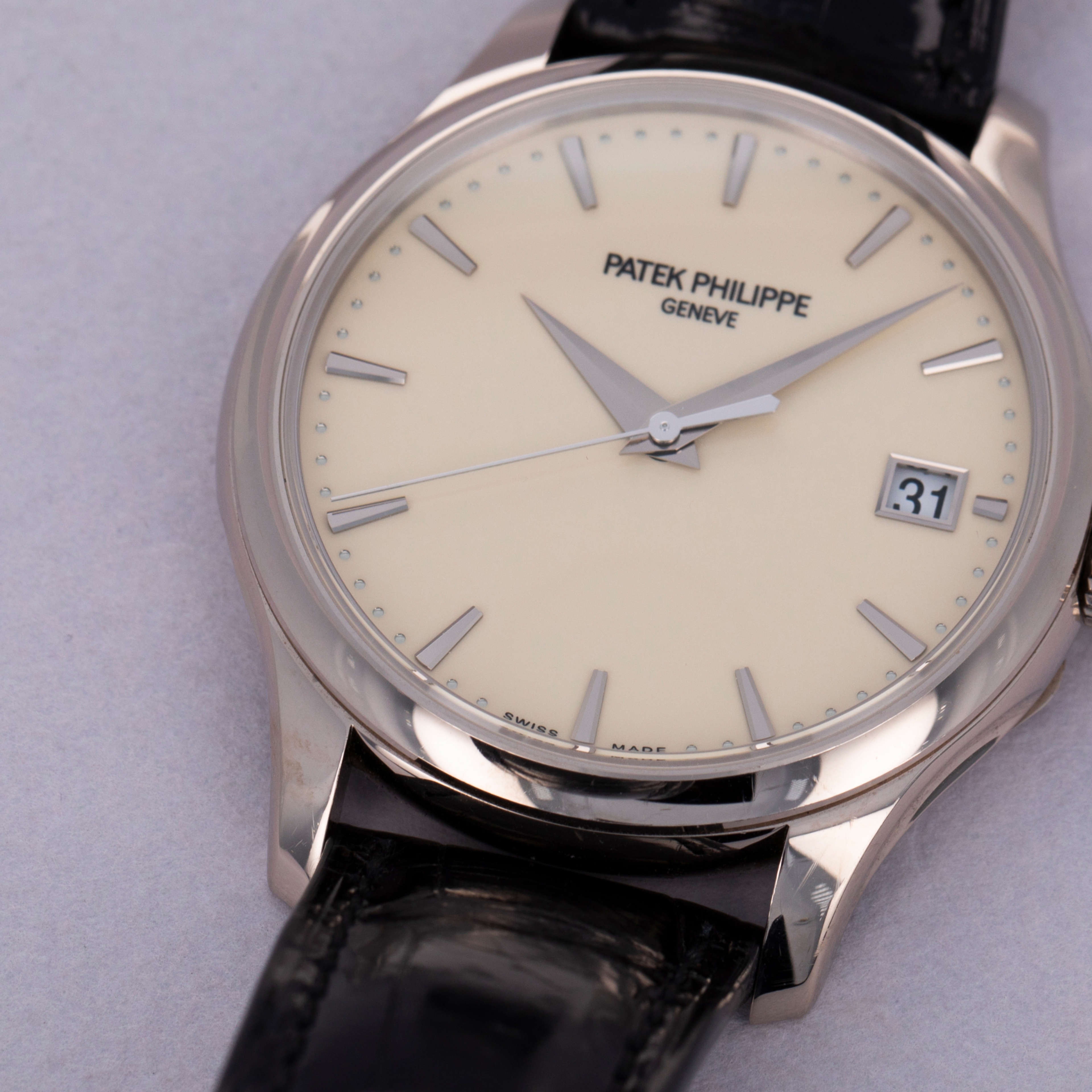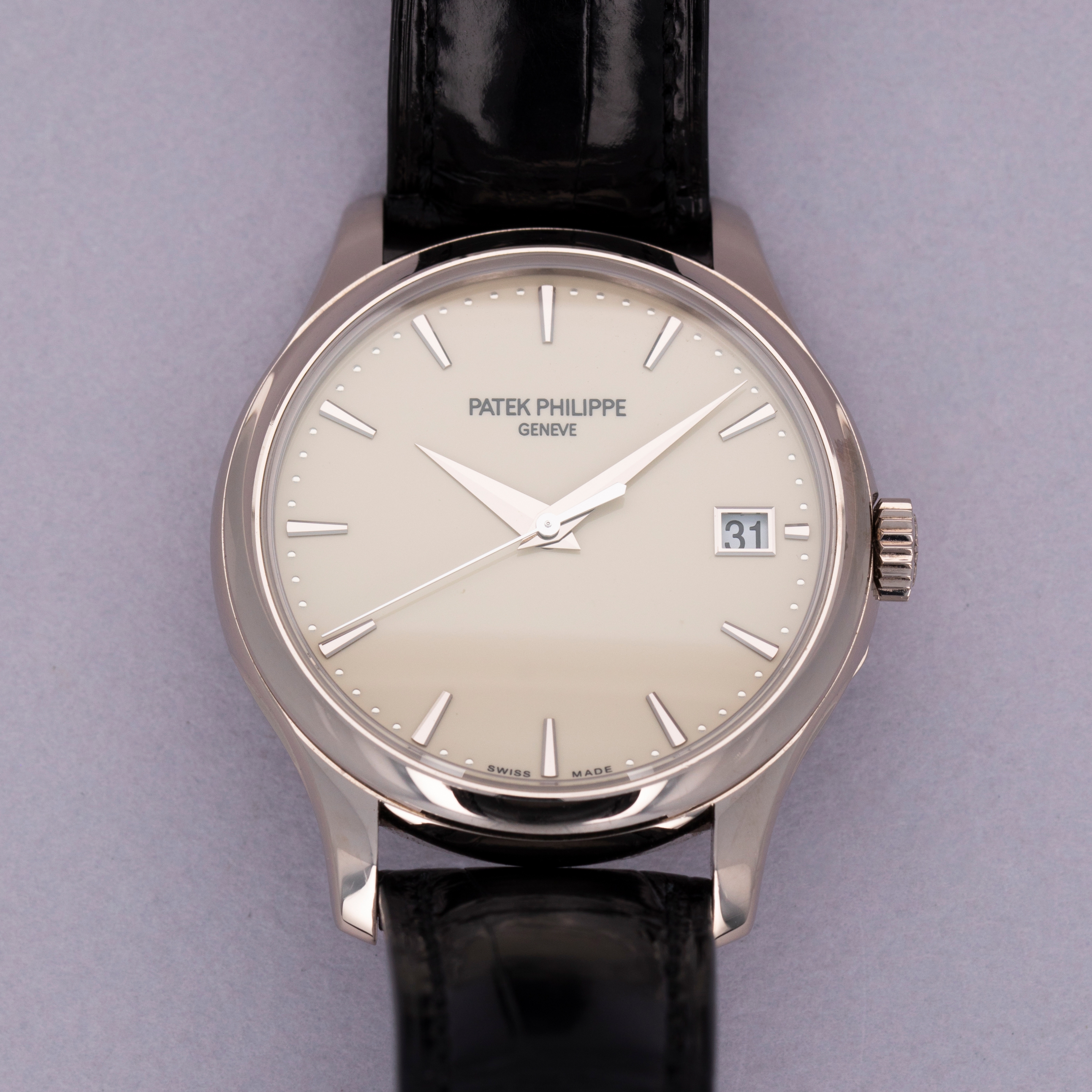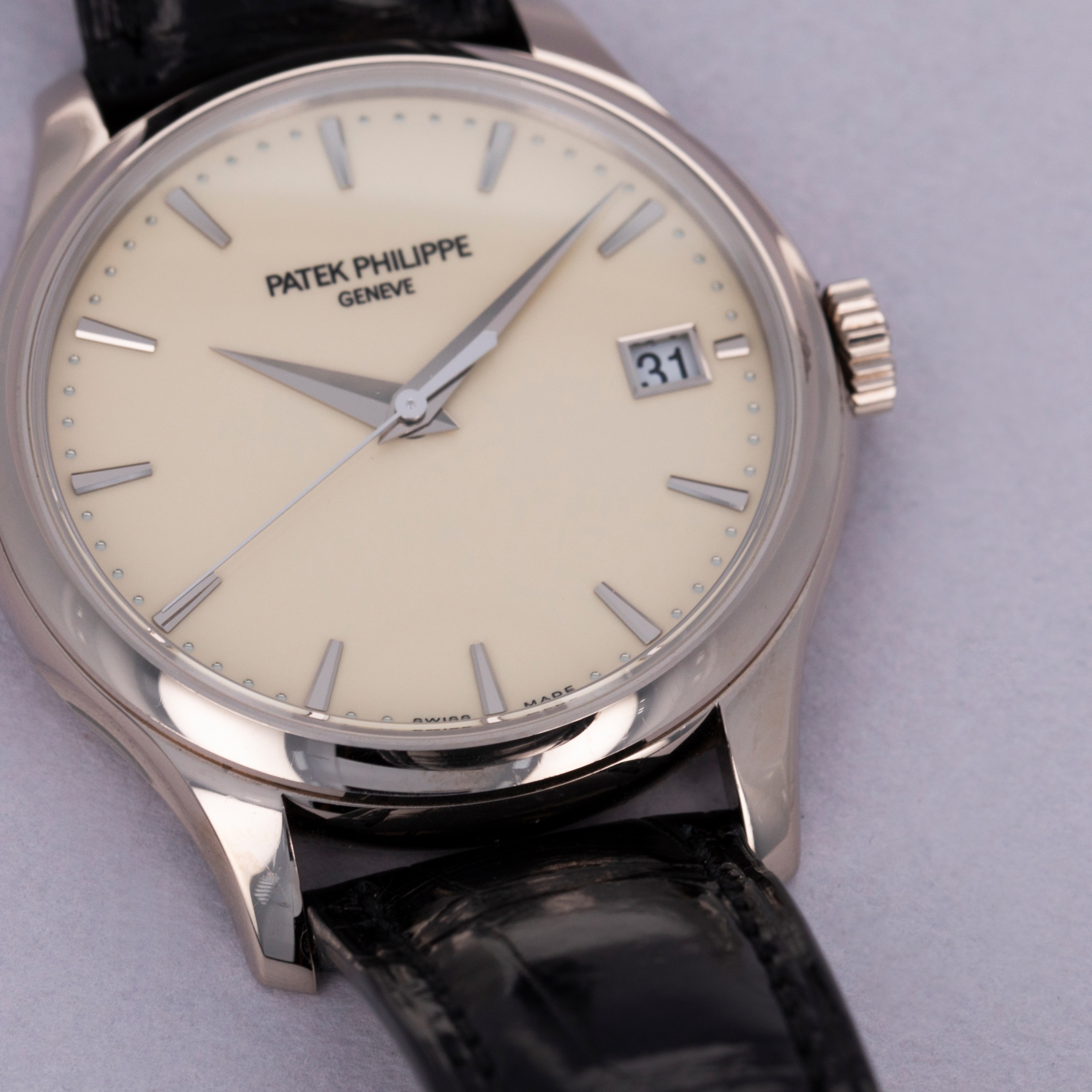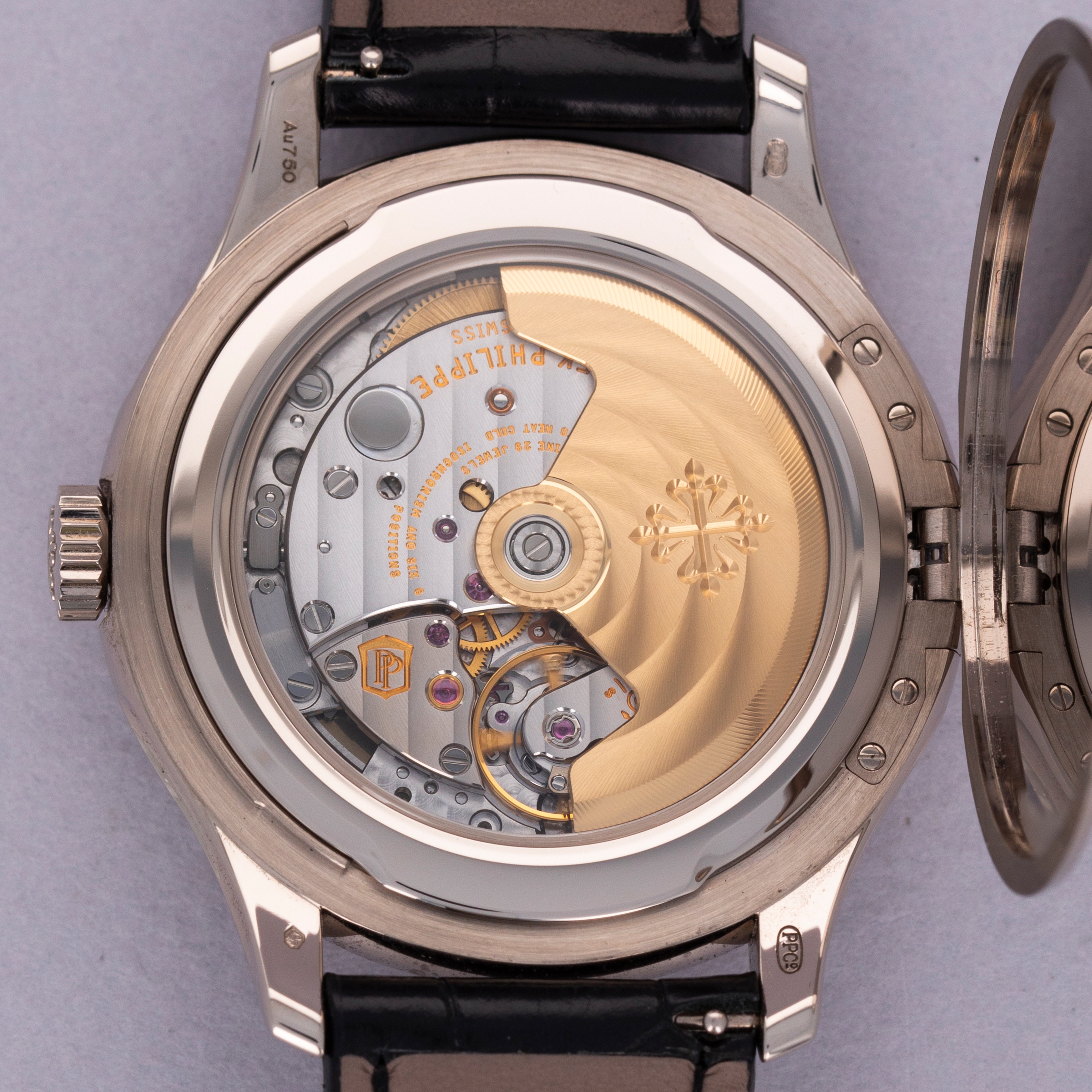 Easily situated amongst the most iconic dress watches ever, the Patek Philippe Calatrava embodies the very essence of what a classically styled timepiece should look like. Defining the entire market niche in 1932 when it debuted, the Calatrava has become the foundation of Patek Philippe’s elegant offerings, with the collection growing to include a multitude of references of various designs across a variety of dials, materials, complications and more. Offered here we have the Calatrava ref. 5227G, which builds upon the Calatrava collection's history as one of Patek Philippe's best-known and best-looking dress watches. Boasting Patek's esteemed design language and launched in 2013, the ref. 5227G features an 18kt white gold case with polished surfaces, a domed bezel and a gorgeous off-white lacquered dial that houses white gold dauphine hour hands and applied indices. An exercise in minimalism, as per the Calatrava’s Bauhaus-inspired design language, the Calatrava’s clean aesthetic has been the bedrock of its offering for decades, on which the ref. 5227G builds upon with one subtle difference, the inclusion of an Officer’s caseback that hinges open to reveal a sapphire crystal caseback that proudly displays the automatic cal. 324 SC movement that powers the ref. 5227G.