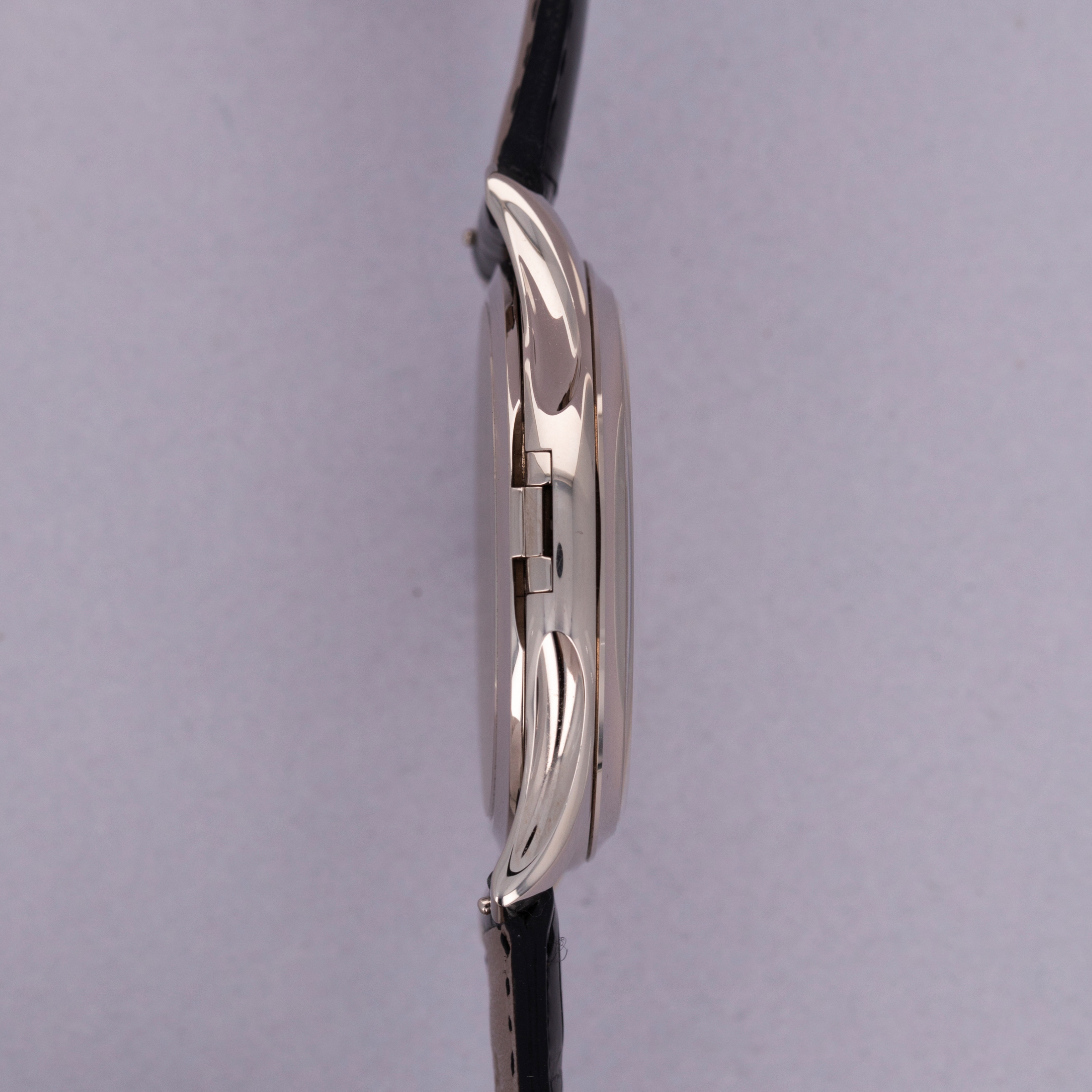 Boasting a beige lacquered dial, the ref. 5227G's display is perfectly suited to the understated nature of its design and construction, with 18kt white gold dauphine hands and applied indices.