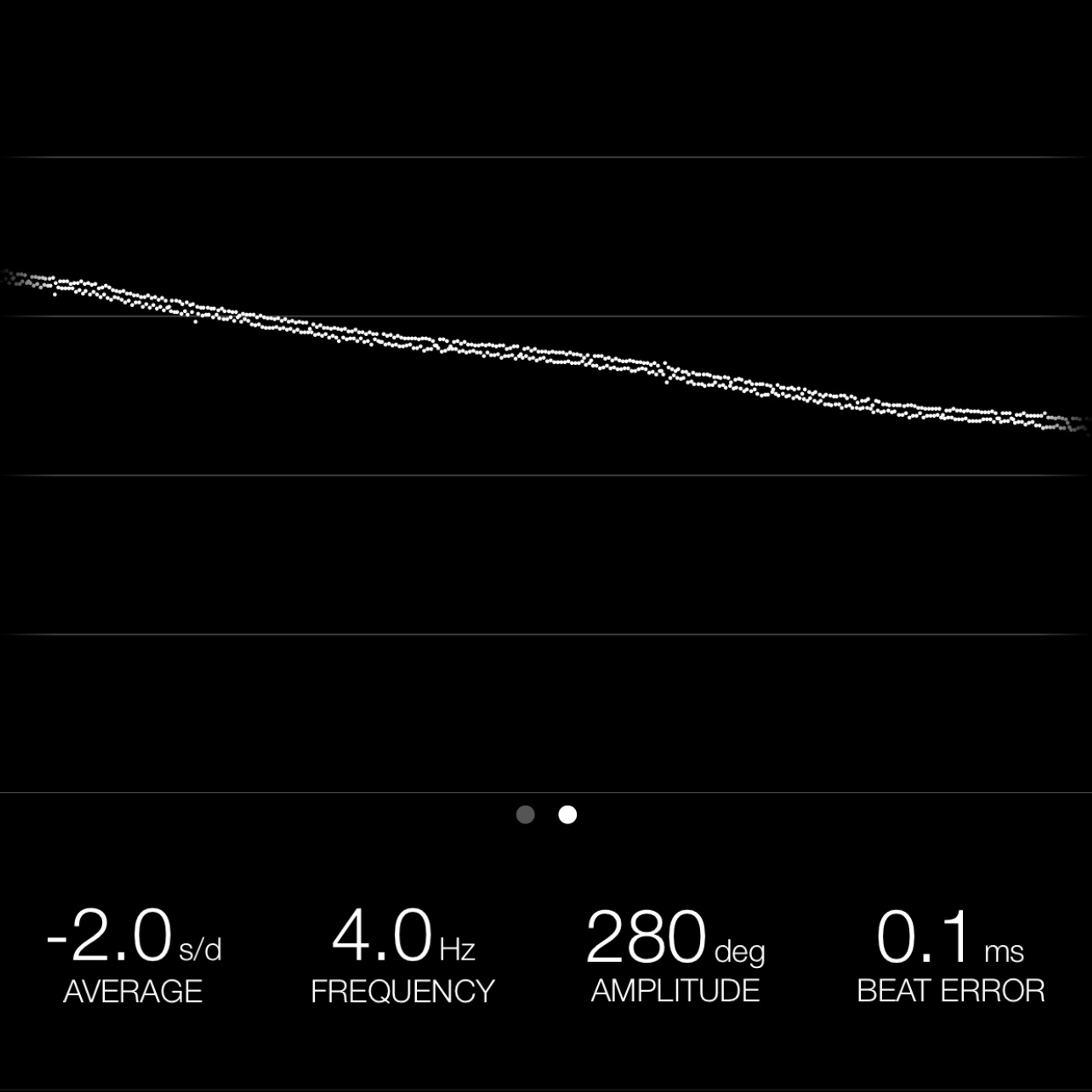 This reading was taken (crown down) with a ONEOF Accuracy Boutique Edition timing machine at time of cataloging. It is provided as a courtesy only, and shall not be construed as a warranty or guarantee of any kind. Please refer to our terms and conditions of sale for more information.