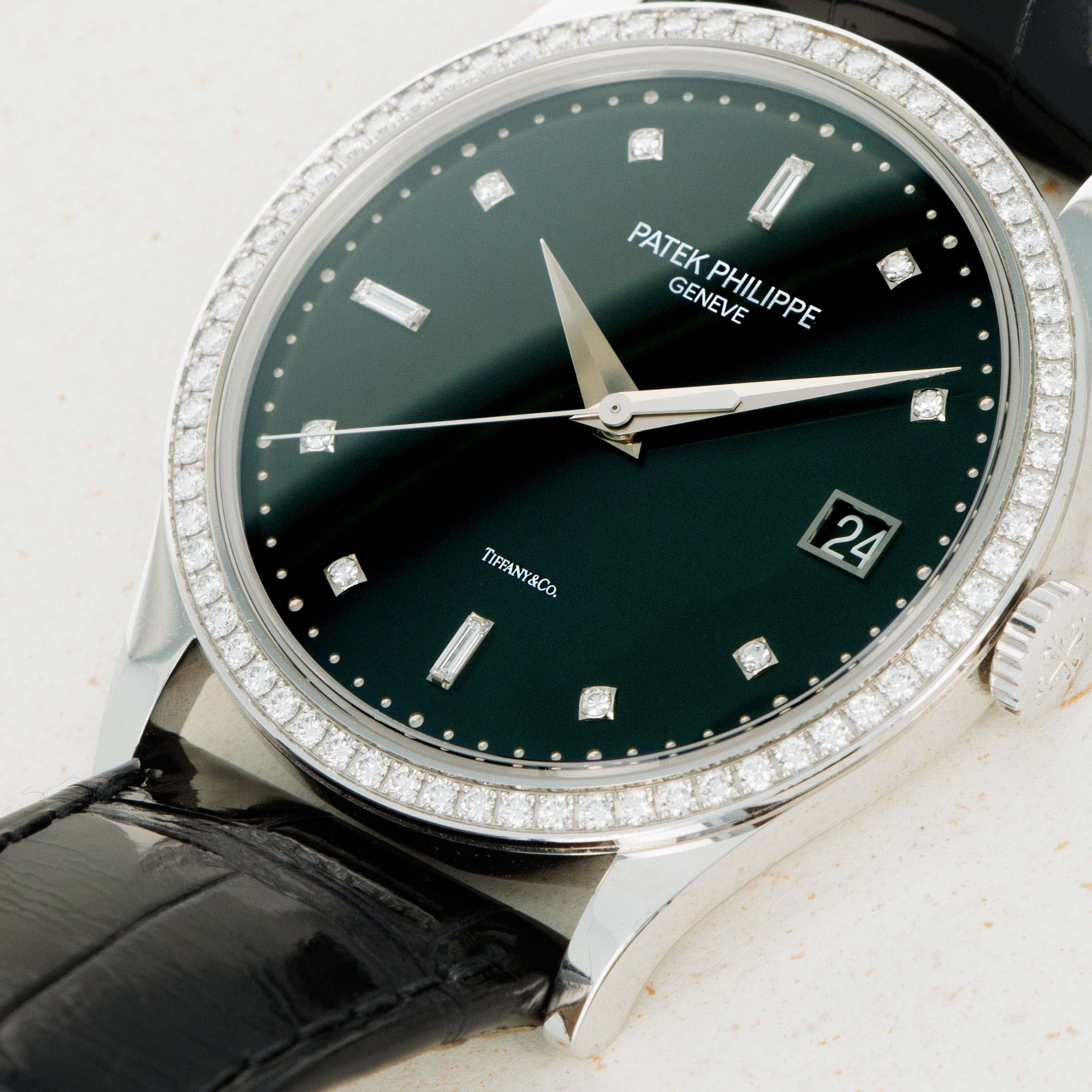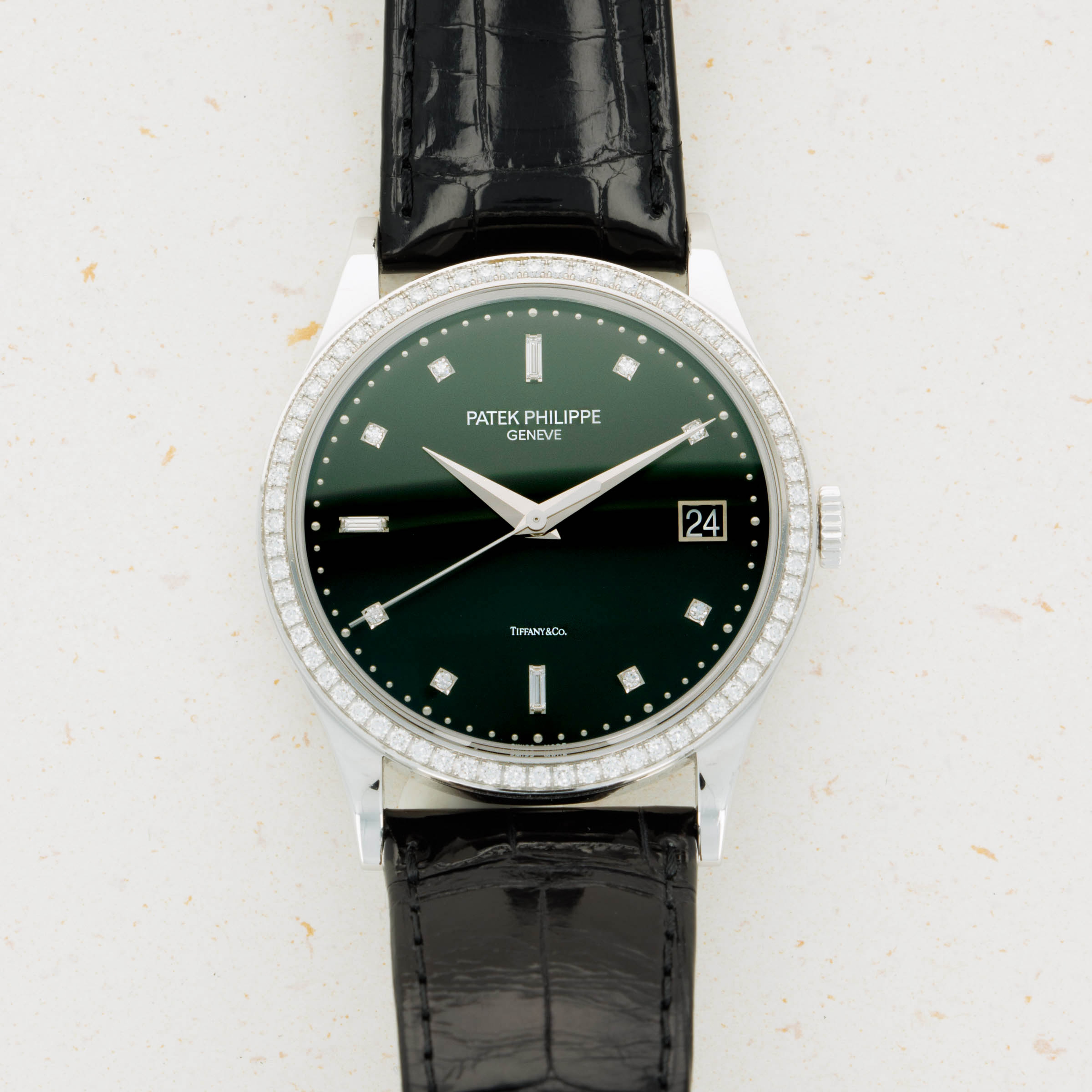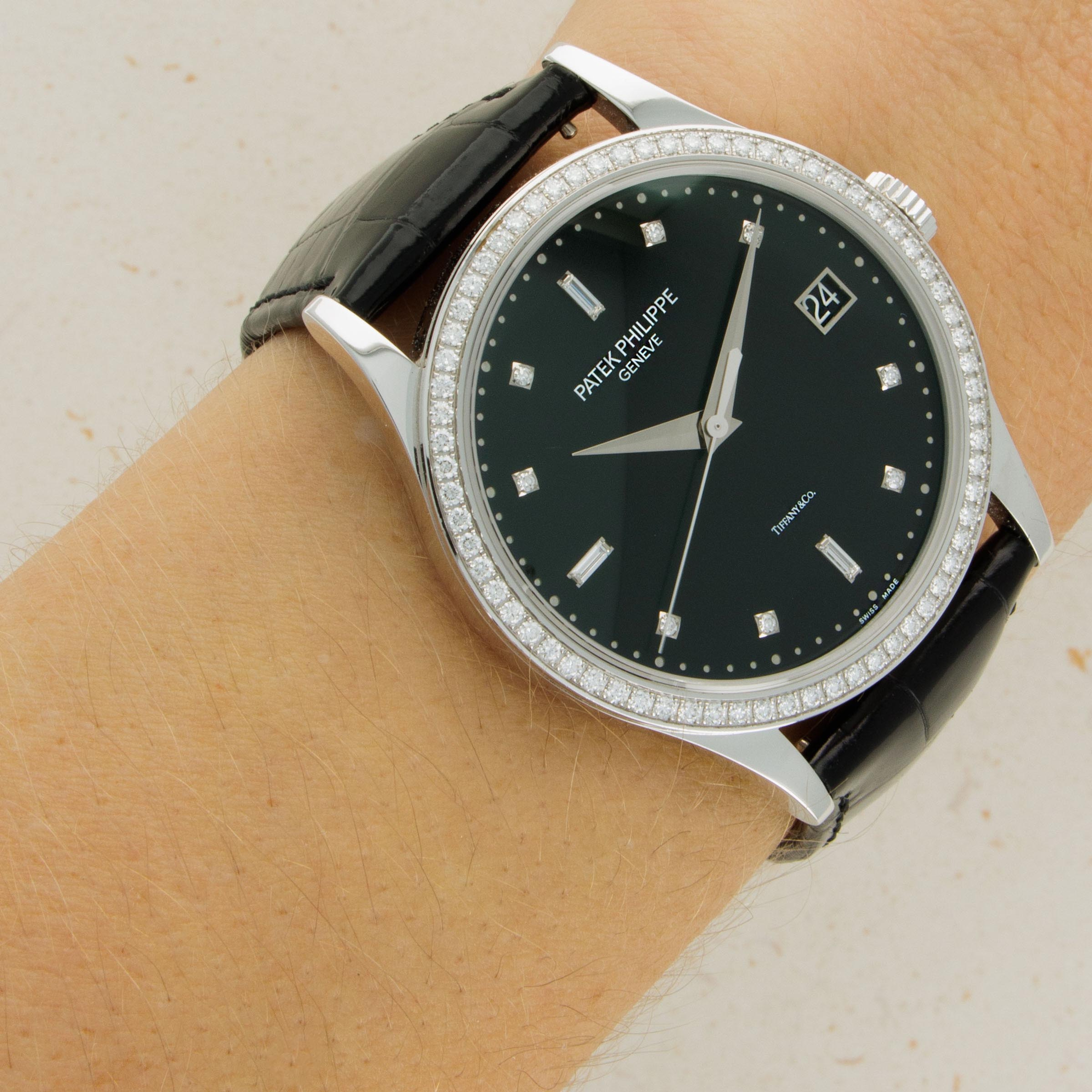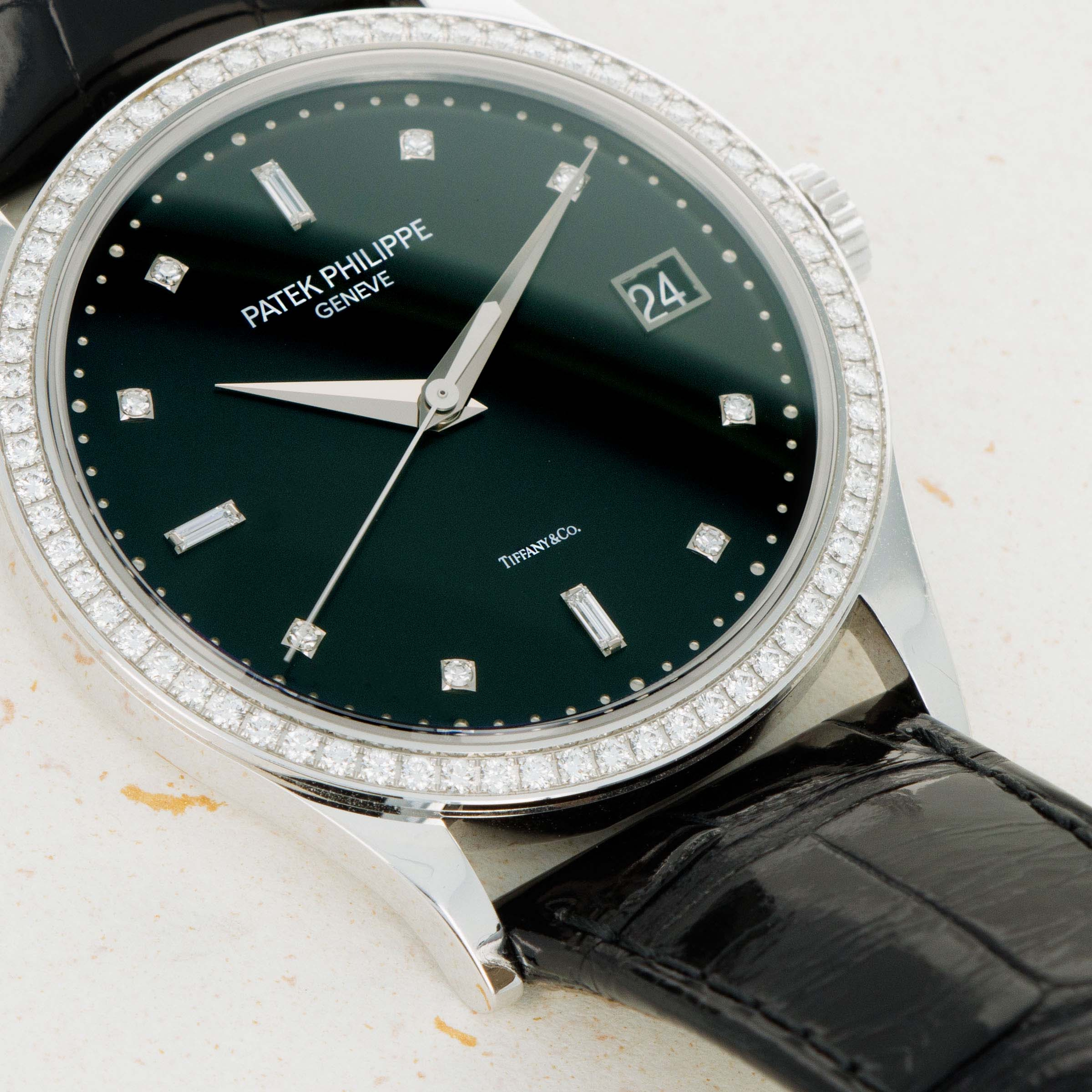 Entirely luxurious thanks to its diamond-set white gold construction and truly rare thanks to its Tiffany & Co. signed dial, this example has everything a collector could want from a Calatrava.