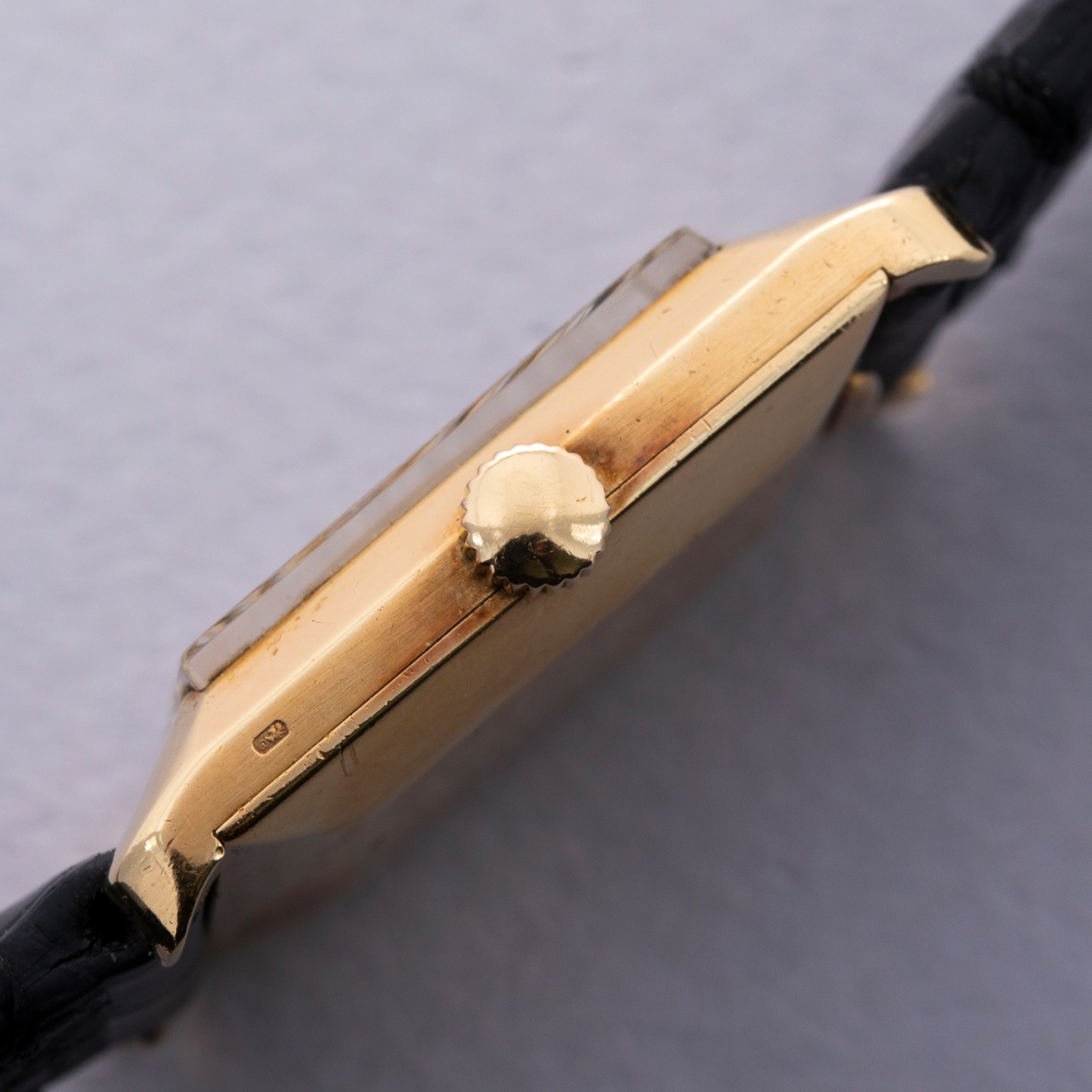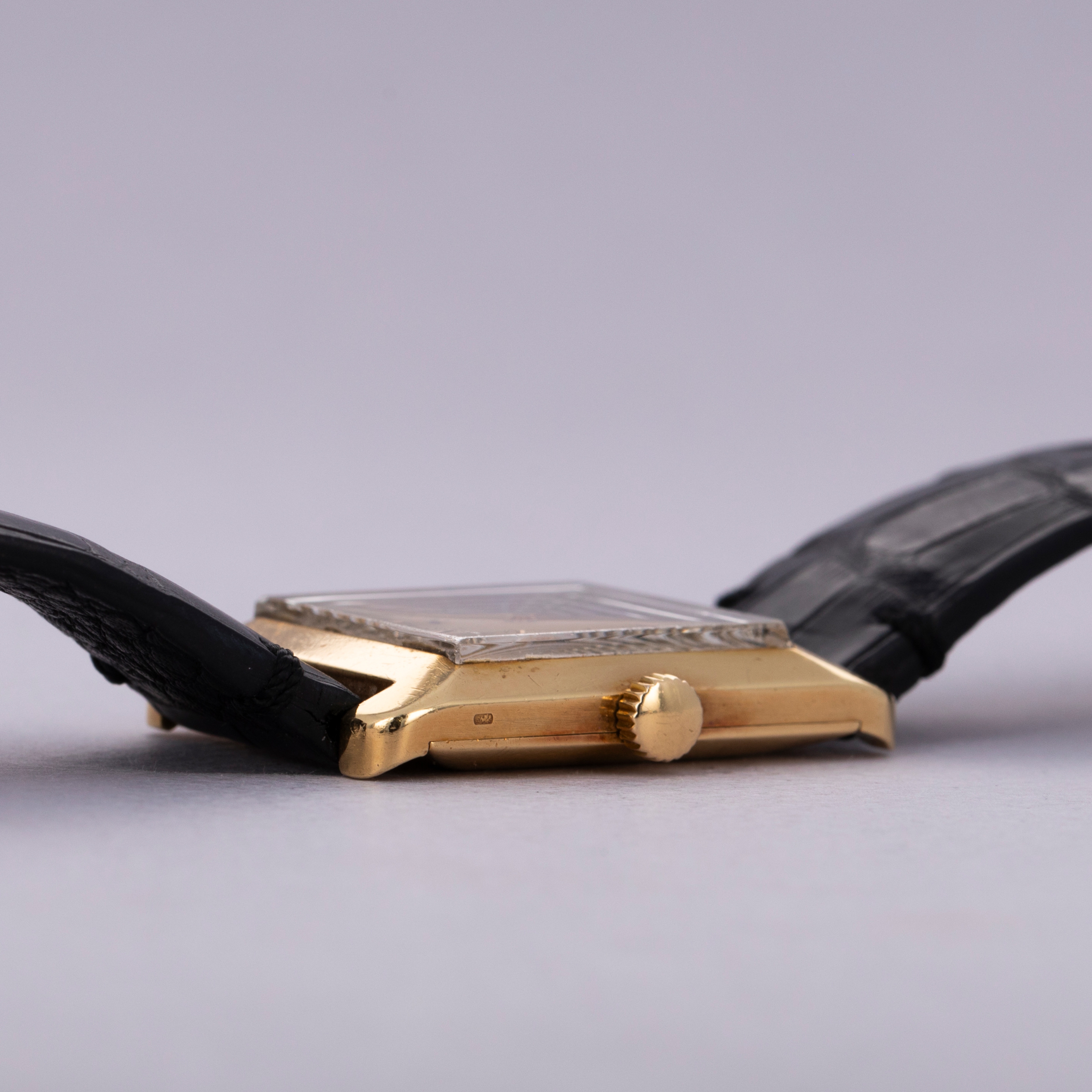 Boasting a 35mm x 28mm 18kt yellow gold case with rounded corners and a sloped bezel, the ref. 2488 wears with a sense of decorum and gracefulness, which was the style of mid-century watchmaking.