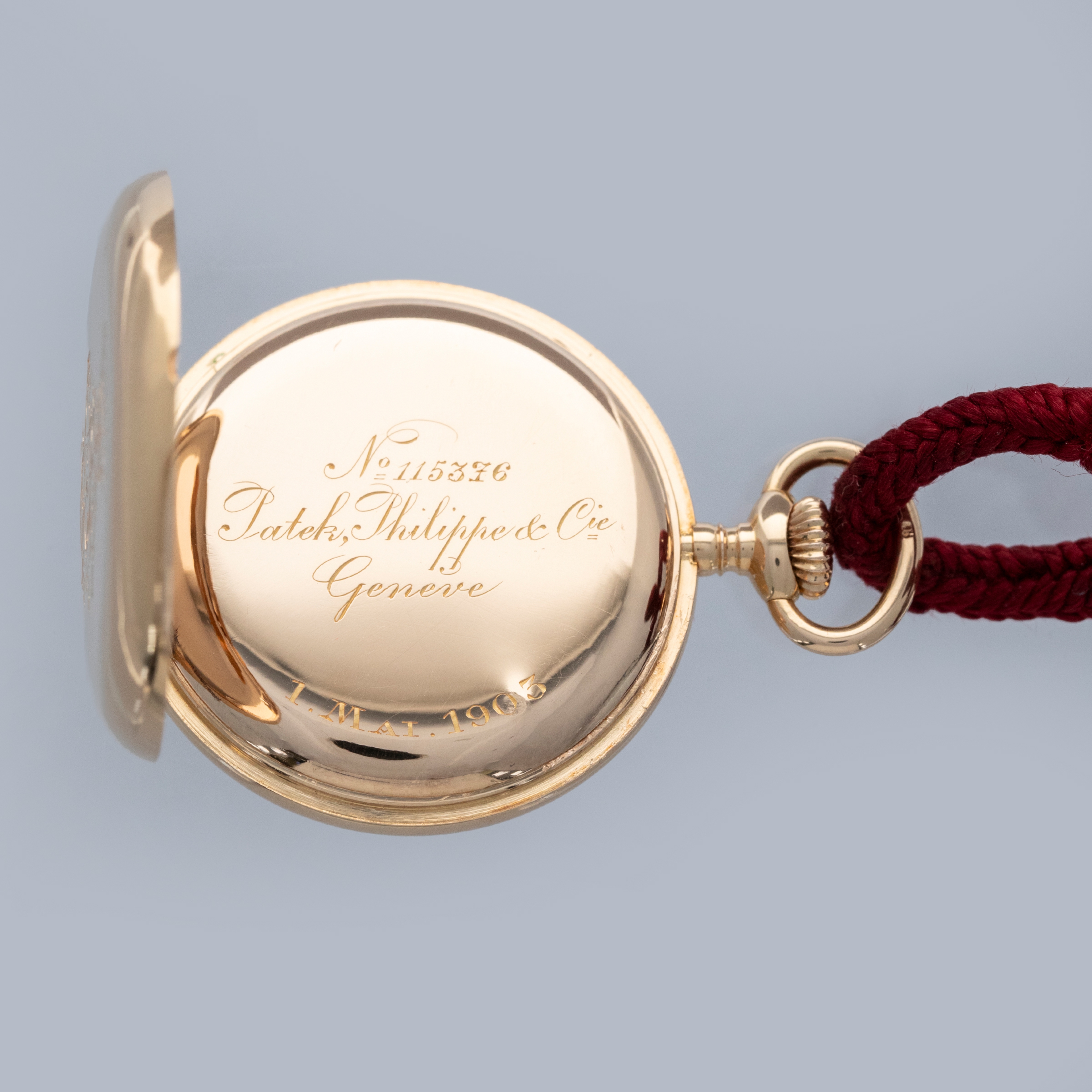 Hidden behind two covers, this example's stunning manual-wind movement reveals the depths of Patek's craftsmanship with its impeccable finishing and architecture.