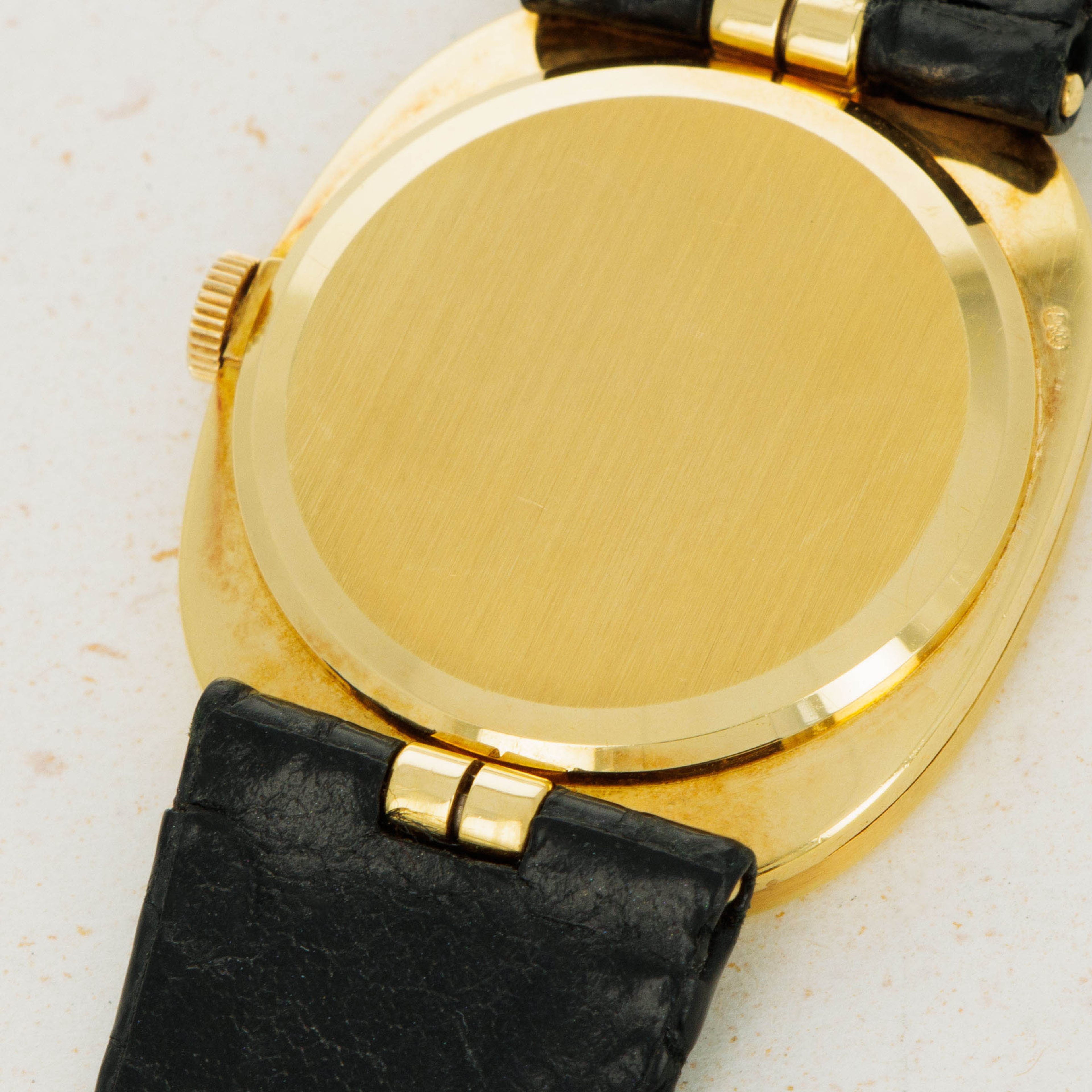 The industry-wide Sigma indication was created as part of a larger effort by the Swiss watchmaking industry trade association l'Association pour la Promotion Industrielle de l'Or (APRIOR) to highlight the value of watches using any gold in their construction over those that did not use it. As a result, these timepieces are sought-after by collectors, given gold's tarnish and rust-resistant properties and rare markings at 6 o'clock - as are found on this example's beautiful blue dial.