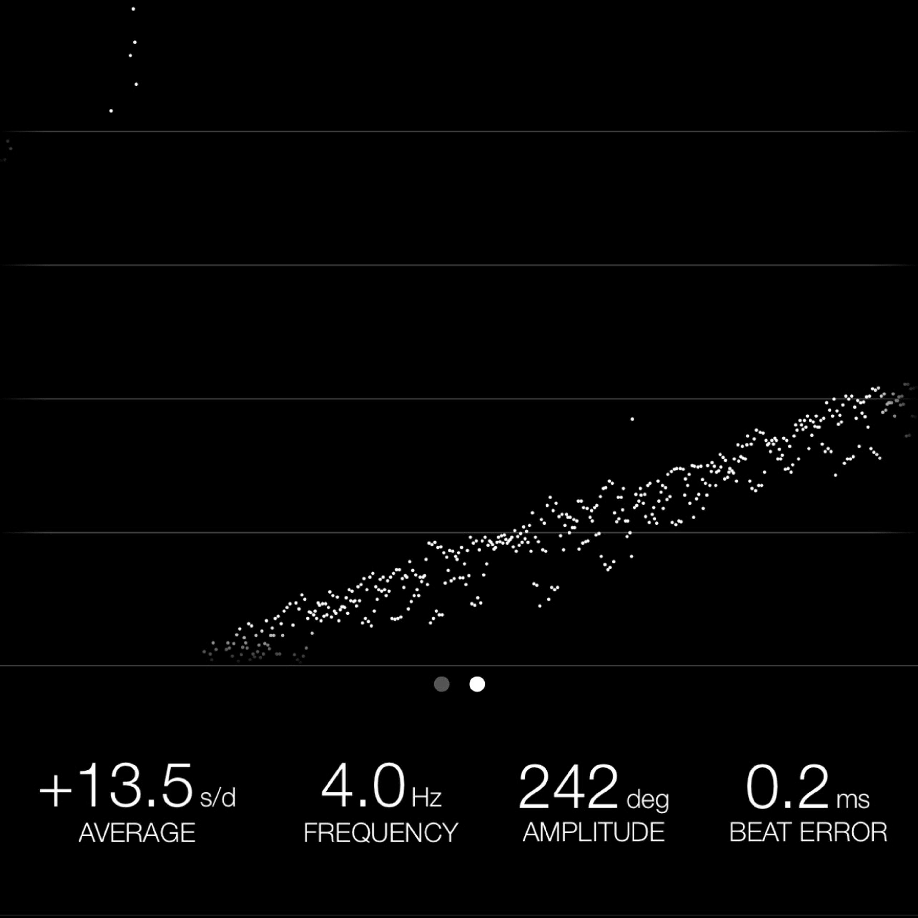 This reading was taken (crown down) with a ONEOF Accuracy Boutique Edition timing machine at time of cataloging. It is provided as a courtesy only, and shall not be construed as a warranty or guarantee of any kind. Please refer to our terms and conditions of sale for more information.