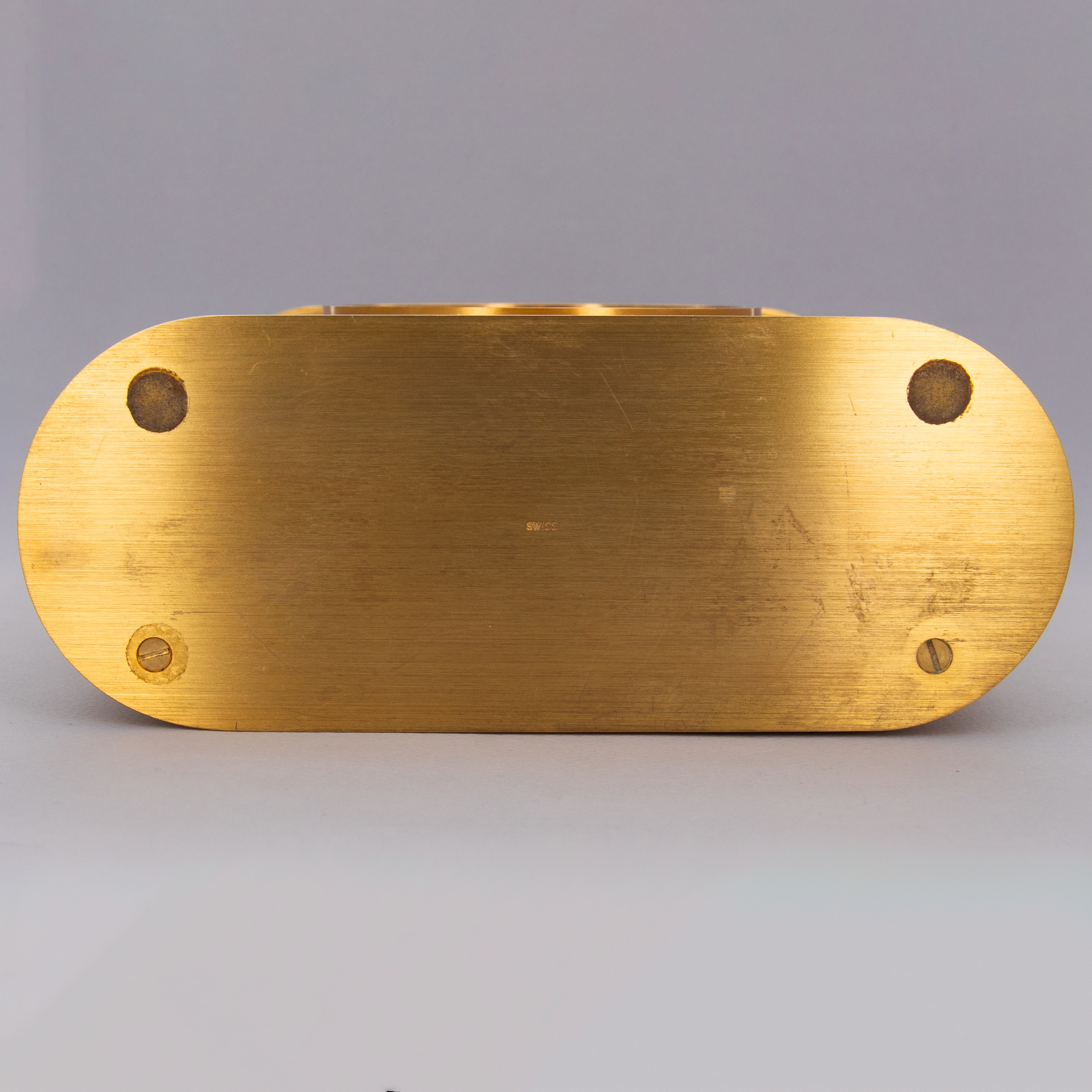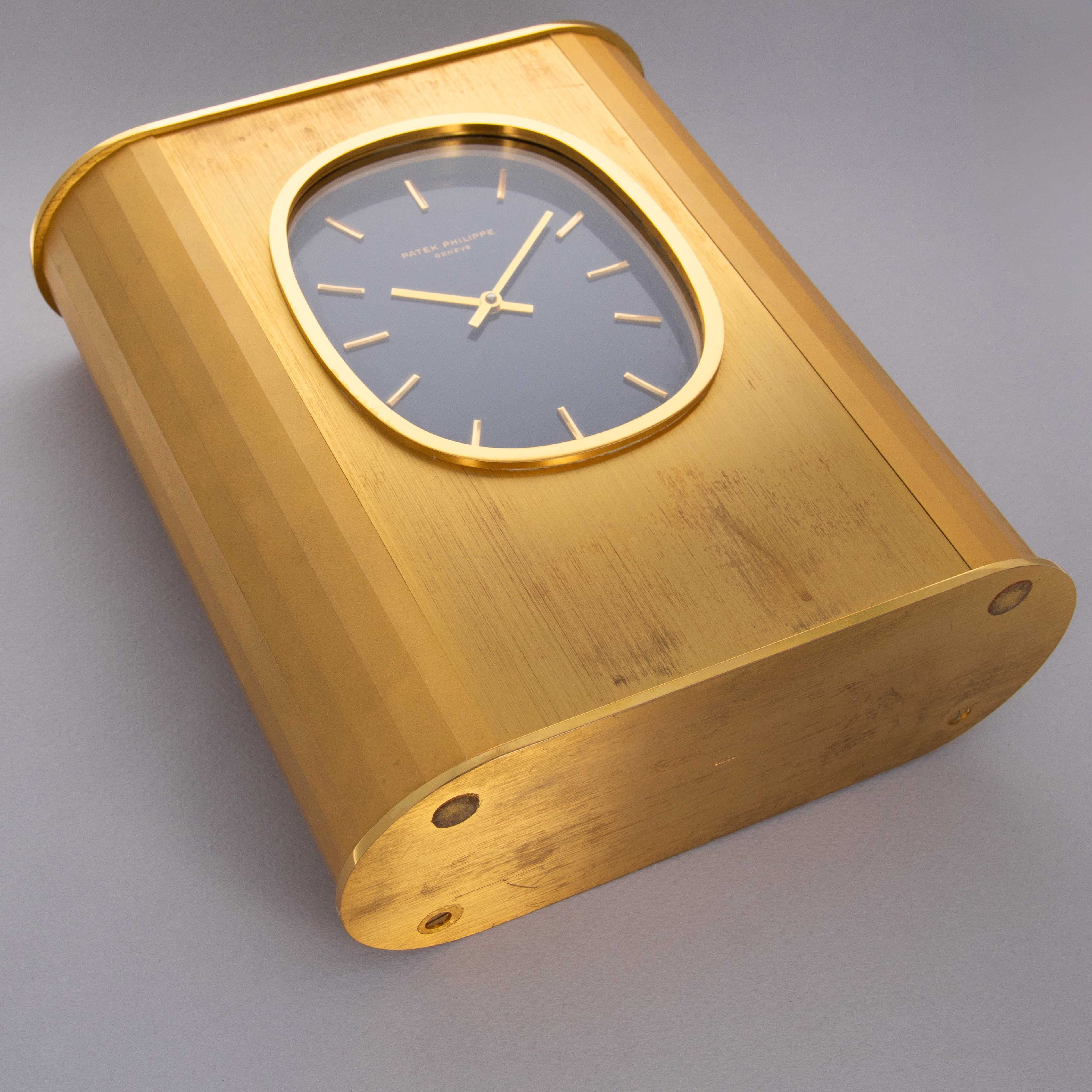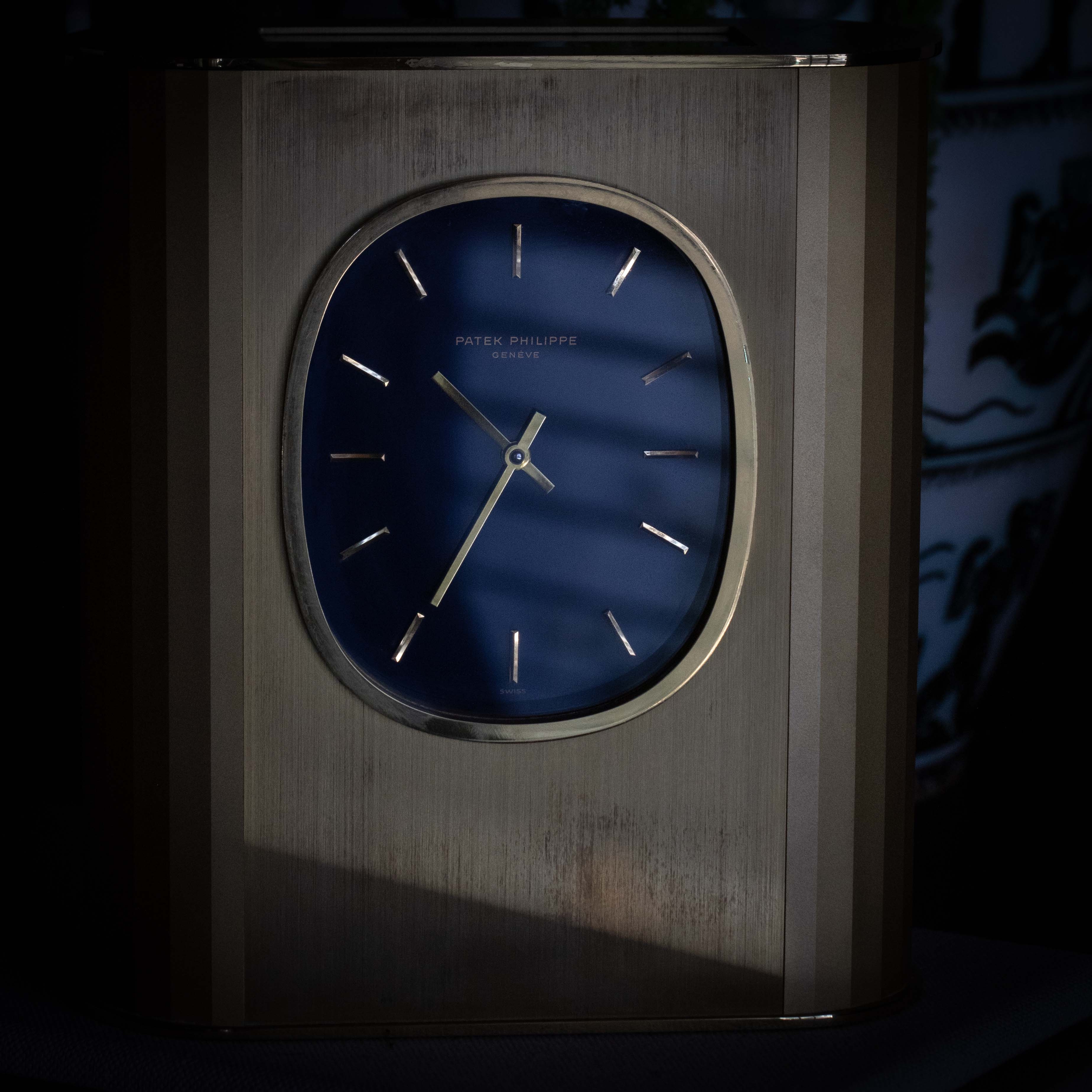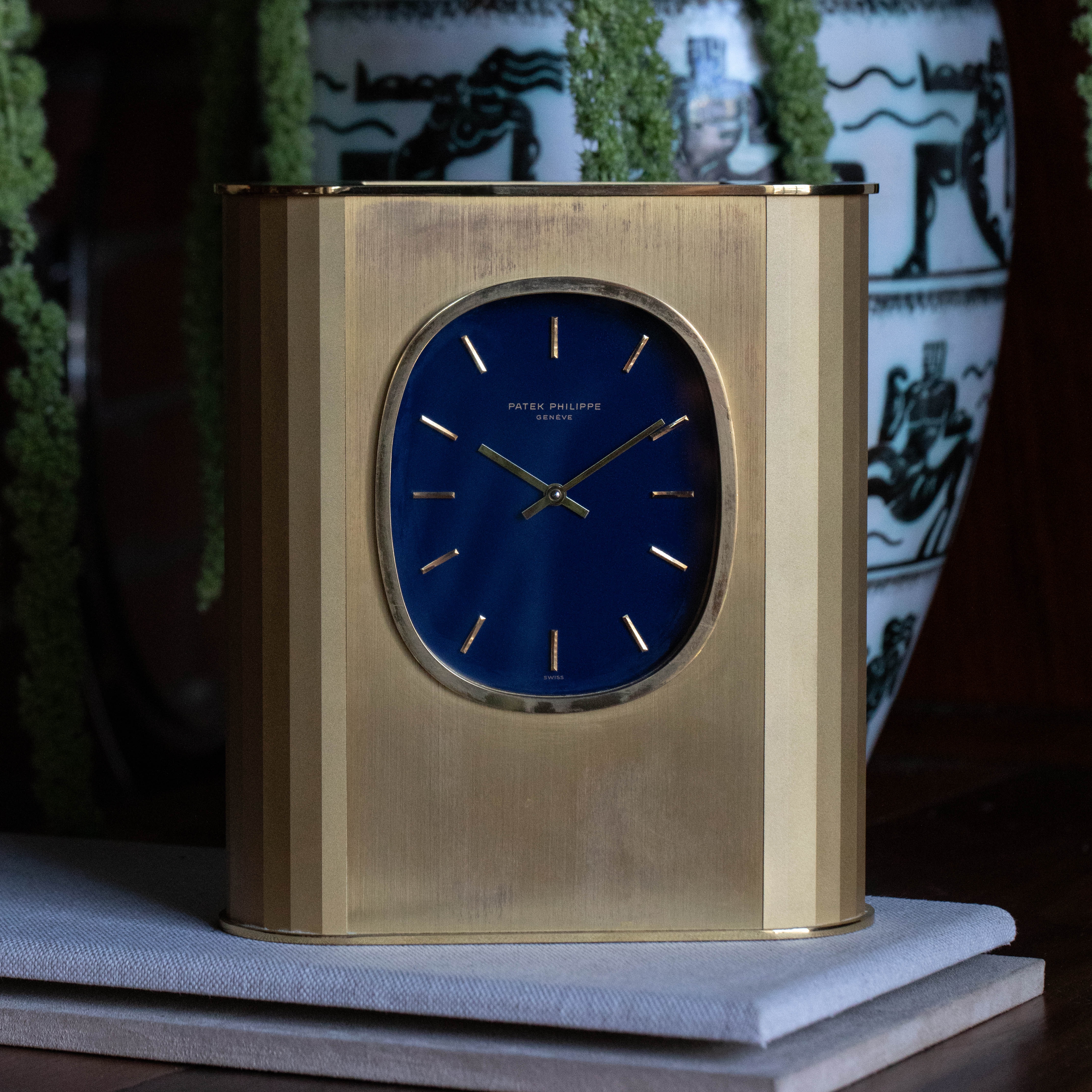 During the 1950s, Patek Philippe developed solar clocks as a means to demonstrate their innovative nature following the creation of their Electronics Division in 1948 as the brand sought alternate forms of timekeeping, such as nuclear, electronic and photoelectric. Launched in the 1970s and inspired by the Golden Ellipse, a dress wristwatch, the Ellipse Solar Clock was both an expansion of that technology and a strategic response to the Quartz Crisis, a period when the watch industry faced intense competition from inexpensive, mass-produced quartz watches which pushed mechanical watchmaking to the edge of extinction. To remain at the forefront of innovation, Patek Philippe continued to embrace solar technology, integrating it into their exquisite desk clocks such as the example we have here, the reference 1505. Made of gilded brass, this is a desk clock that exemplifies Patek Philippe's commitment to luxury and technical prowess. Featuring a striking oval-shaped blue dial, echoing the aesthetic of the renowned Golden Ellipse collection, the ref. 1505 showcases the brand's ability to blend traditional elegance with modern technology. The use of solar power not only demonstrated Patek Philippe's adaptability but also reinforced their reputation for precision and sustainability, securing their position as a leader in the horological world amidst the rapidly changing landscape of the 1970s.
