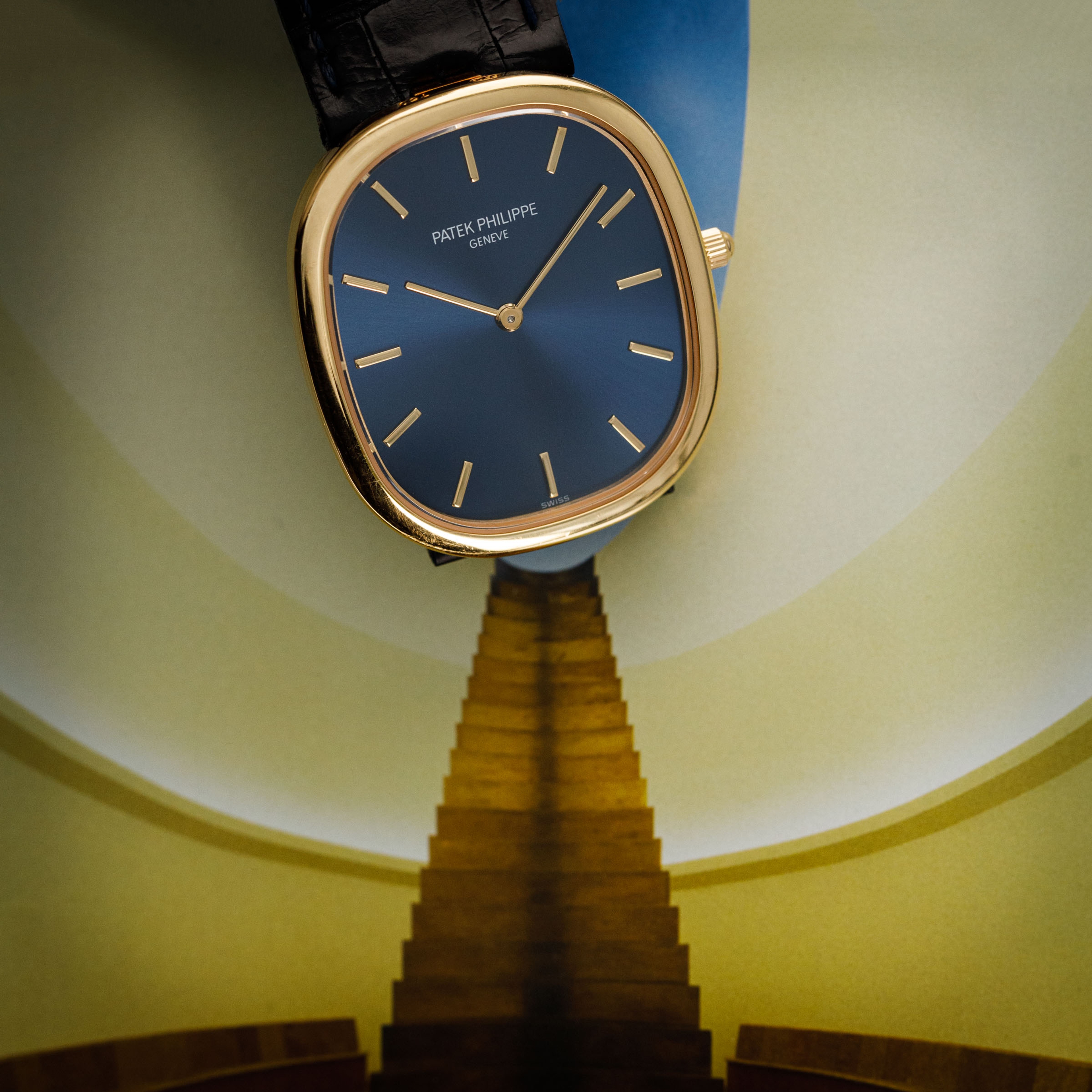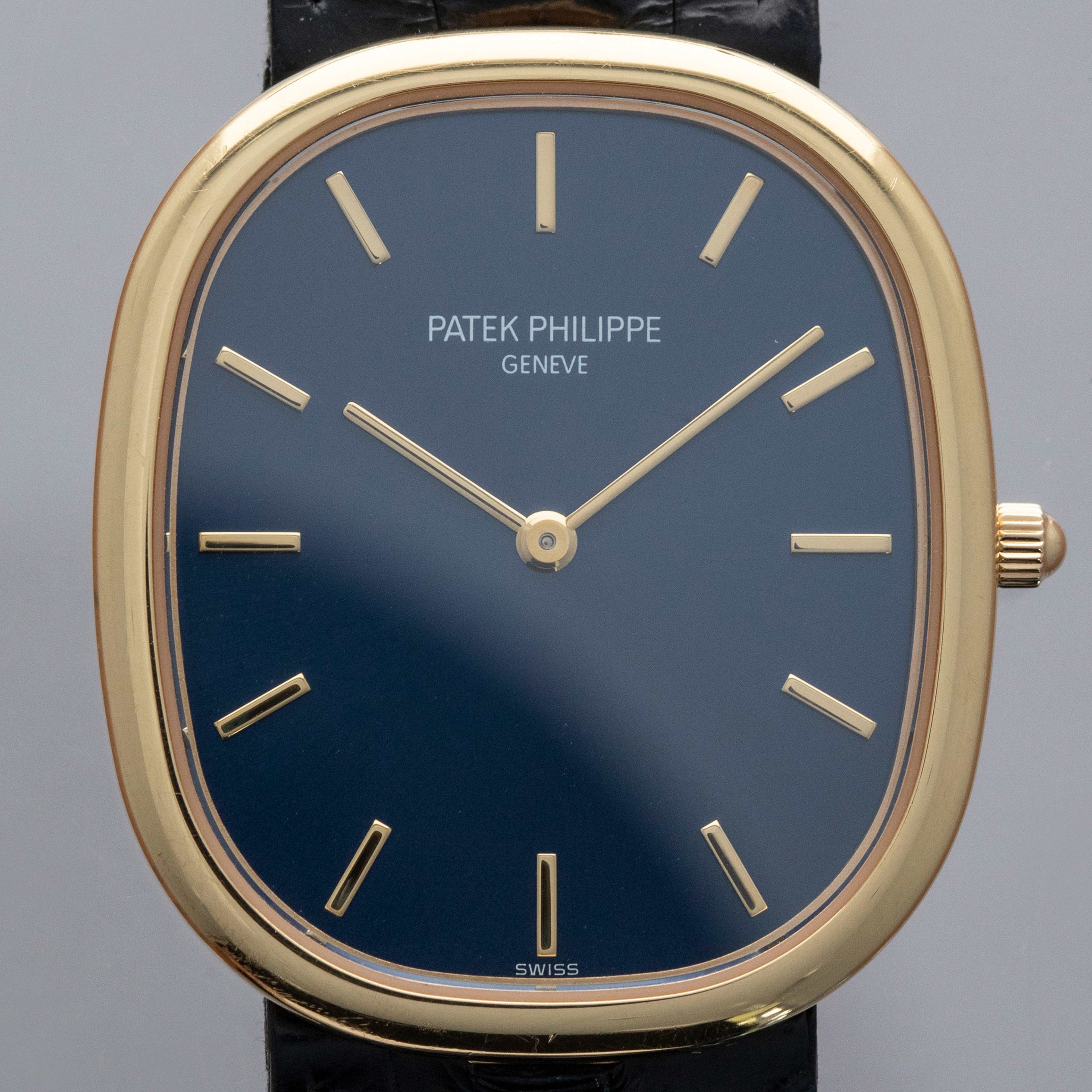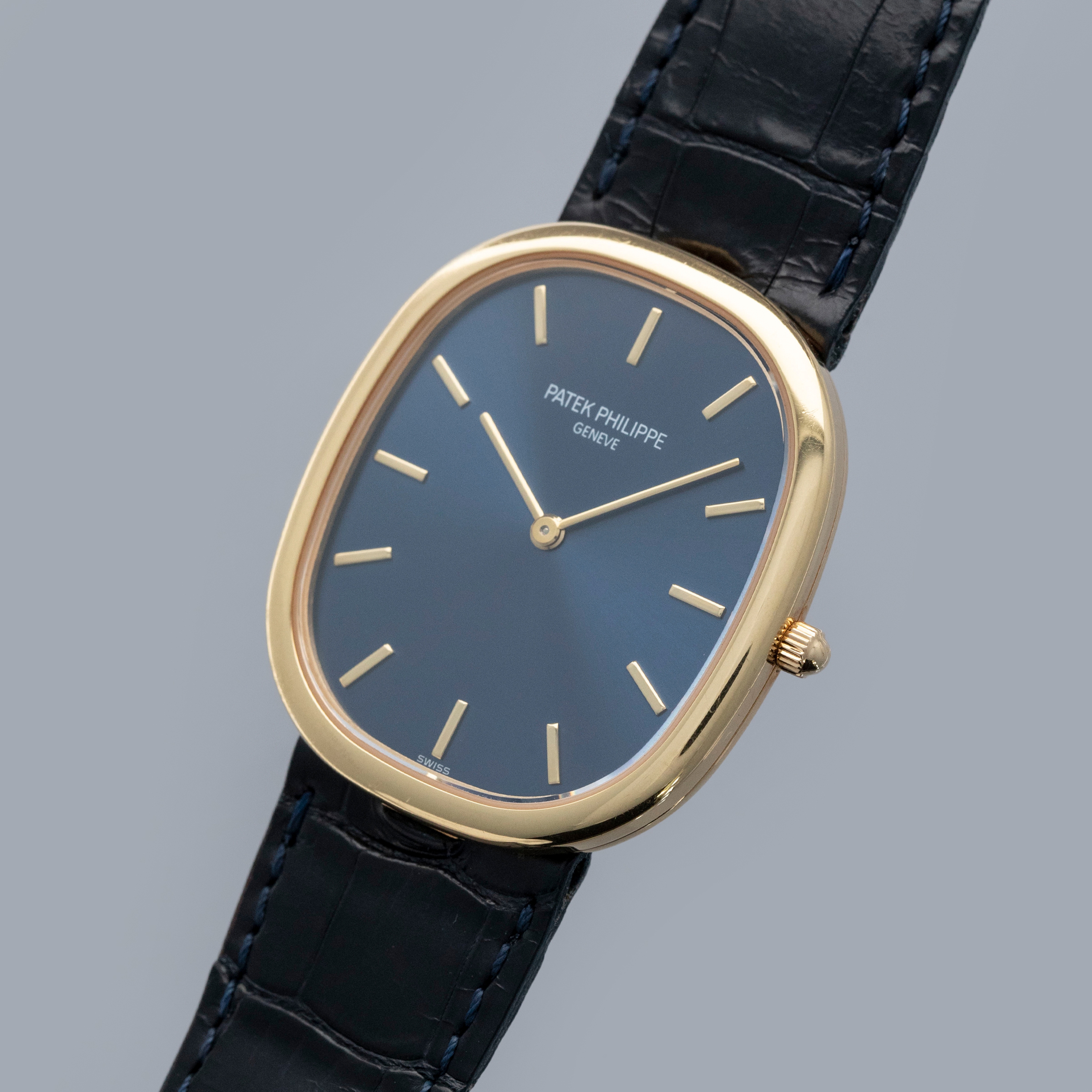 Classic, slim, yellow gold Ellipse with blued gold dial — this is the Golden Ellipse to own. Nicely sized, understated, and pure Patek Philippe design - it's the kind of watch that always looks and feels right.