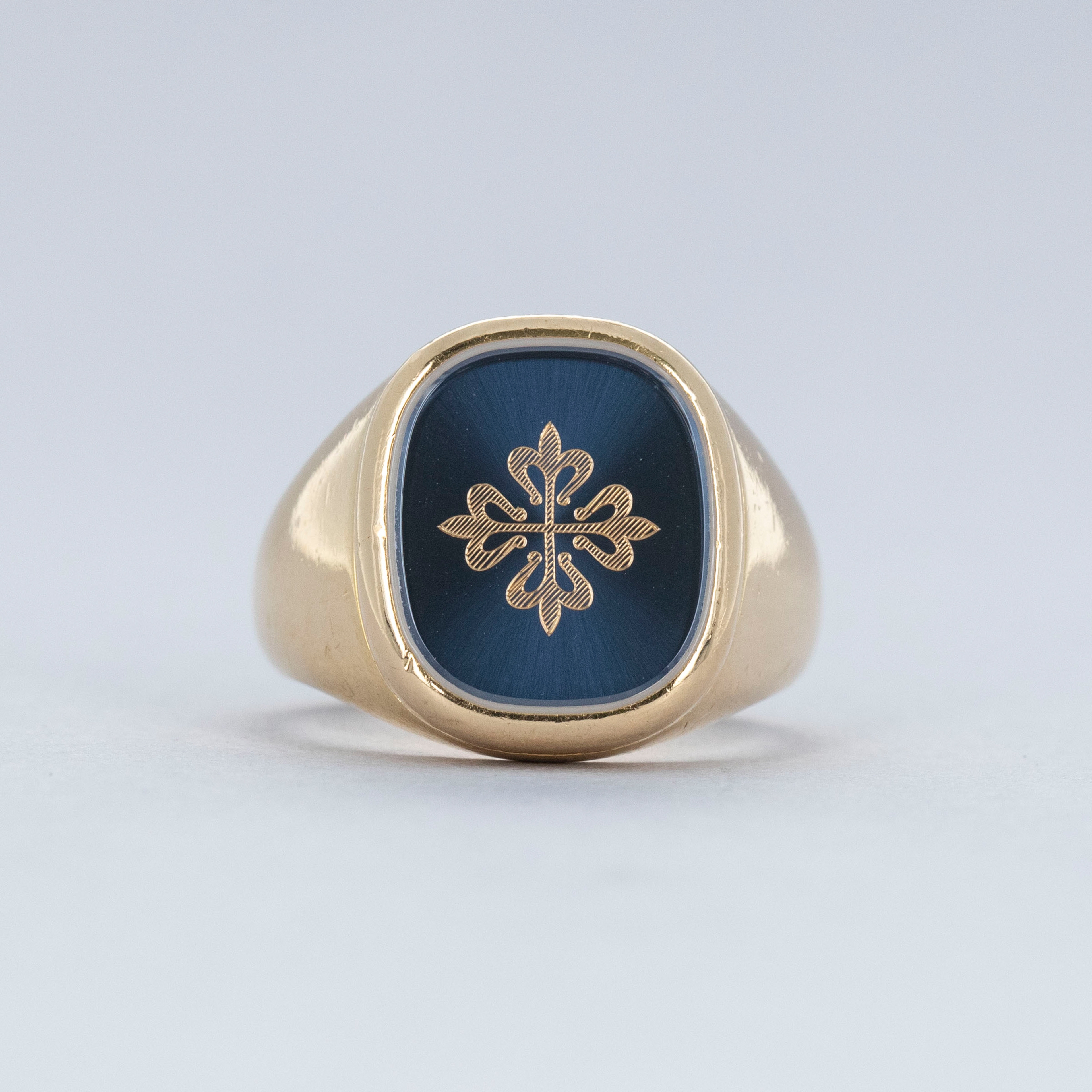 While their skill and craftsmanship across nearly two centuries of watchmaking is undoubtedly what has earned them their esteemed reputation as a company, Patek Philippe often dabbles in other endeavors that give the company the ability to extend that same craftsmanship onto other products, much like this ring and cufflink set. Made of 18kt yellow gold and inspired by Patek's famed Golden Ellipse collection, this ring and set of cufflinks sports a rounded rectangular shape with blued gold centers that echo the manufacturing technique used on the watch dials themselves. Sporting the Calatrava cross in their centre, this ring and cufflink set is a wonderful reminder of Patek's determined approach to creating the best products possible, all while speaking to stylish sensibilities.