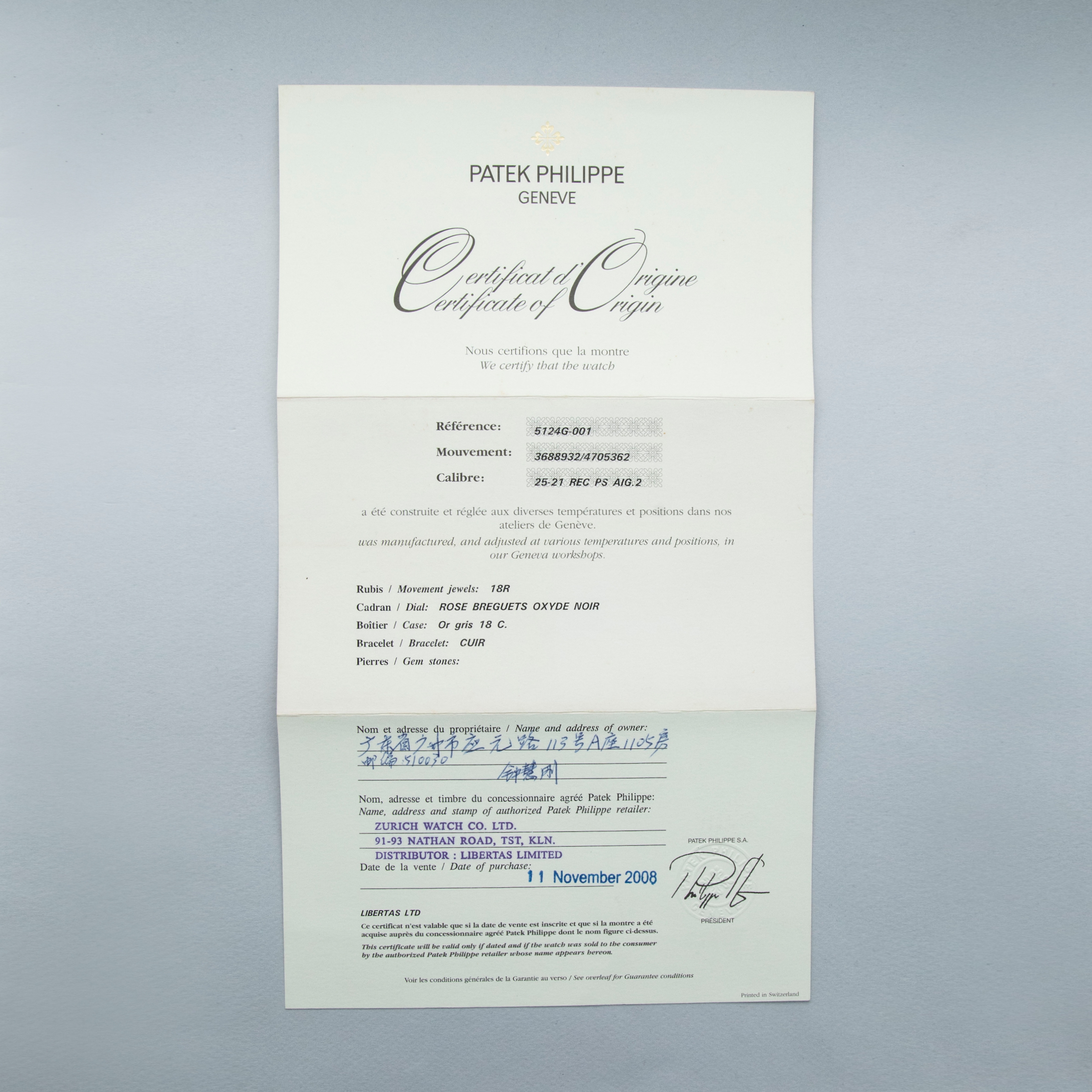 Patek Philippe Gondolo 5124G Salmon Dial 18k WG with Guarantee Certificate