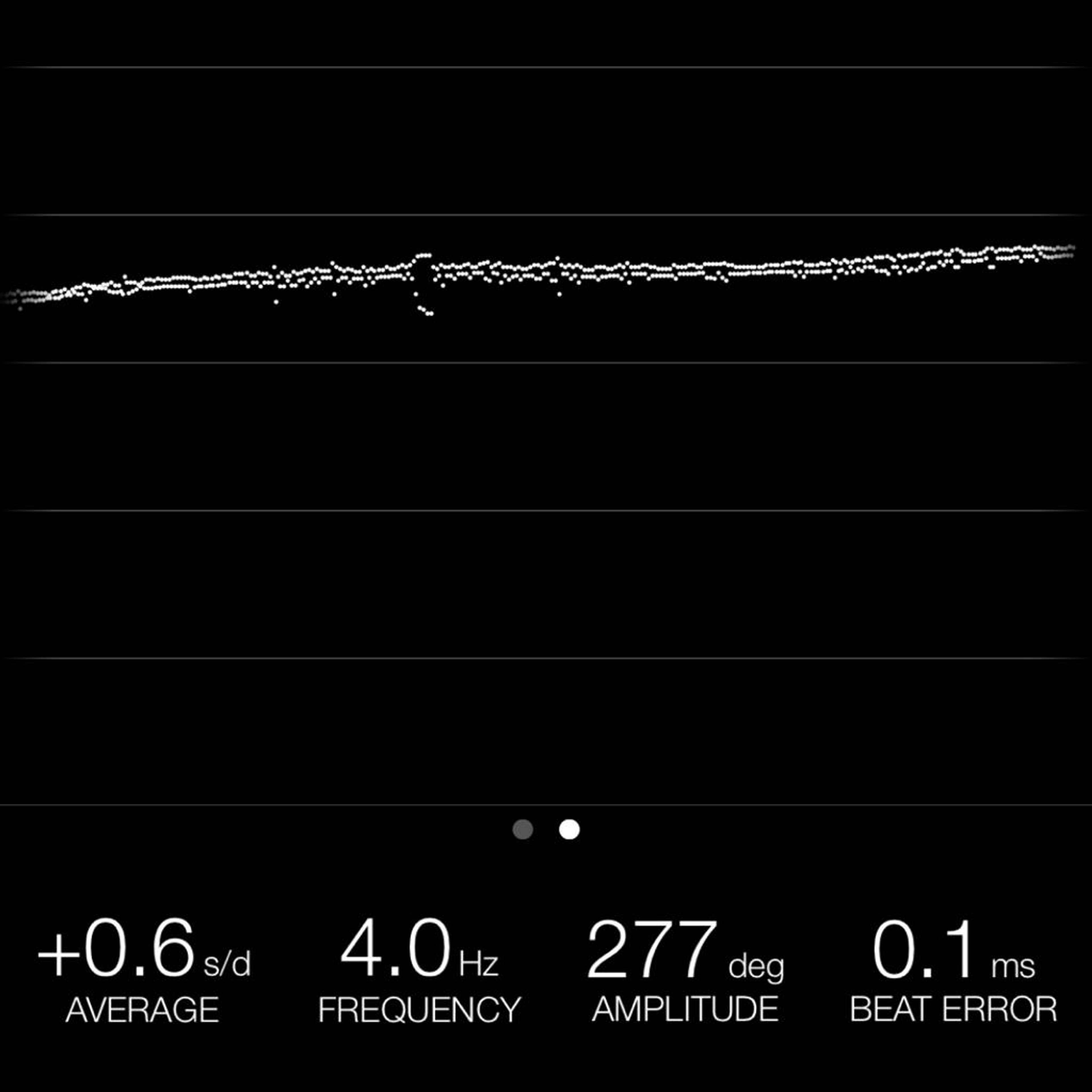 This reading was taken (crown down) with a ONEOF Accuracy Boutique Edition timing machine at time of cataloging. It is provided as a courtesy only, and shall not be construed as a warranty or guarantee of any kind. Please refer to our terms and conditions of sale for more information.