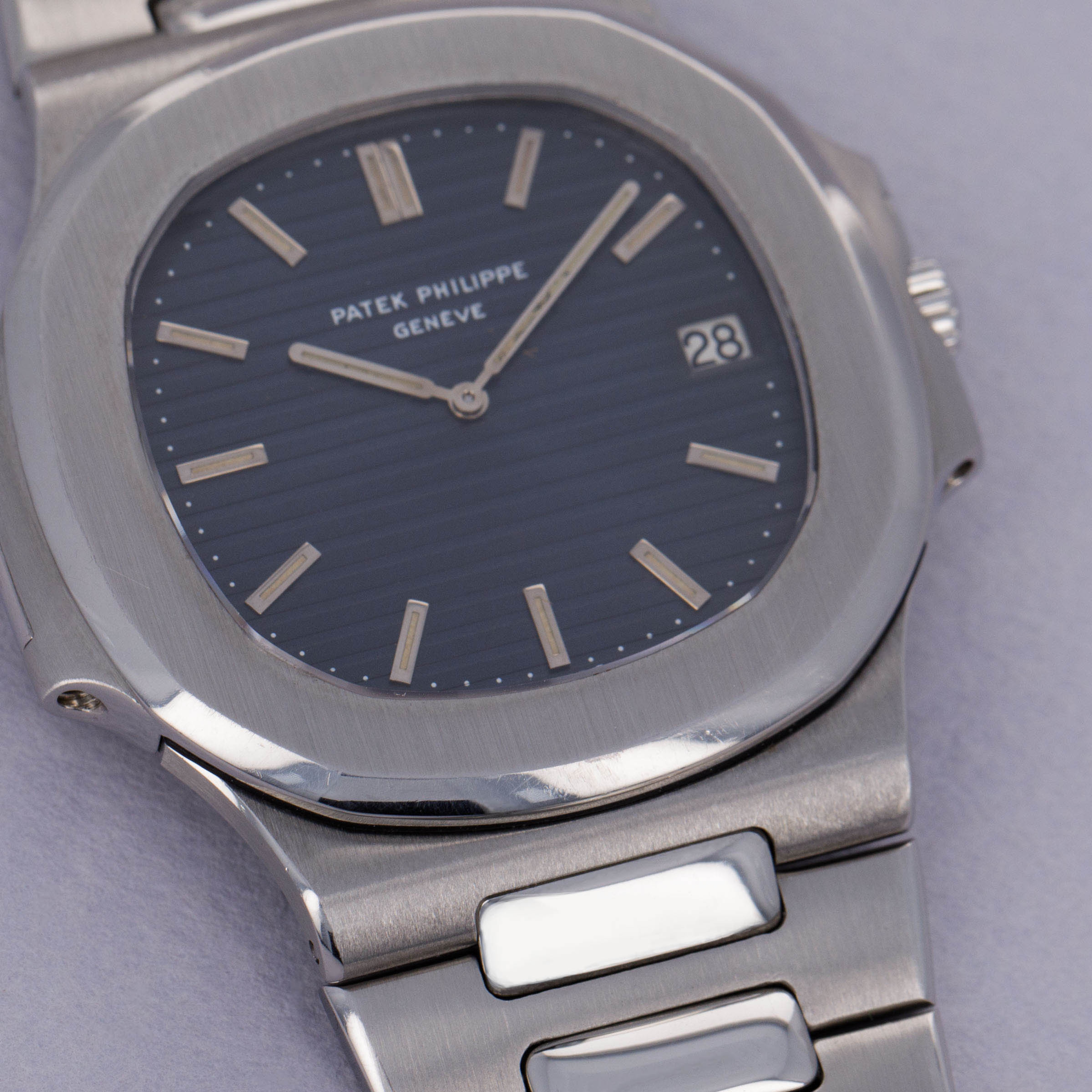 Released in 1976 as Patek Philippe's response to the Audemars Piguet Royal Oak, an avant-garde luxury stainless steel sports watch borne from AP's necessity to survive the Quartz Crisis, the Nautilus was Patek Philippe's attempt to go head to head with AP's increasingly popular sports watch. Designed by Gerald Genta, the same man that had designed the Royal Oak, the Nautilus was inspired by a porthole and thus features a rounded-over octagonal bezel and hinge-like protrusions on either side of its case. Featuring its signature horizontally embossed dial and iconic integrated bracelet, the Nautilus has become the most sought-after watch in the market today as collectors clamor over available examples thanks to its iconic design, extreme exclusivity, and impeccable craftsmanship. Famed as the very first variant, the Nautilus ref. 3700 was nicknamed the “Jumbo” thanks to its enormous, for the time, 42mm case. An unpopular timepiece from the get-go, the ref. 3700 failed to sell as well as Patek may have hoped, thanks to its significant departure from what Patek was known for at the time – complicated timepieces and classical dress watches. So, today the ref. 3700/1A exists as a rare timepiece indeed with approximately 3500 pieces produced until the ref. 3700/1A's discontinuation in 1990. While it might be the most 'common' of the ref. 3700 variants, it is still an incredibly rare watch. Indeed, considering the appetite for stainless steel Nautilus variants, particularly the full-sized ref. 3700, it is a comparatively harder timepiece to get one's hands-on than its precious metal siblings.