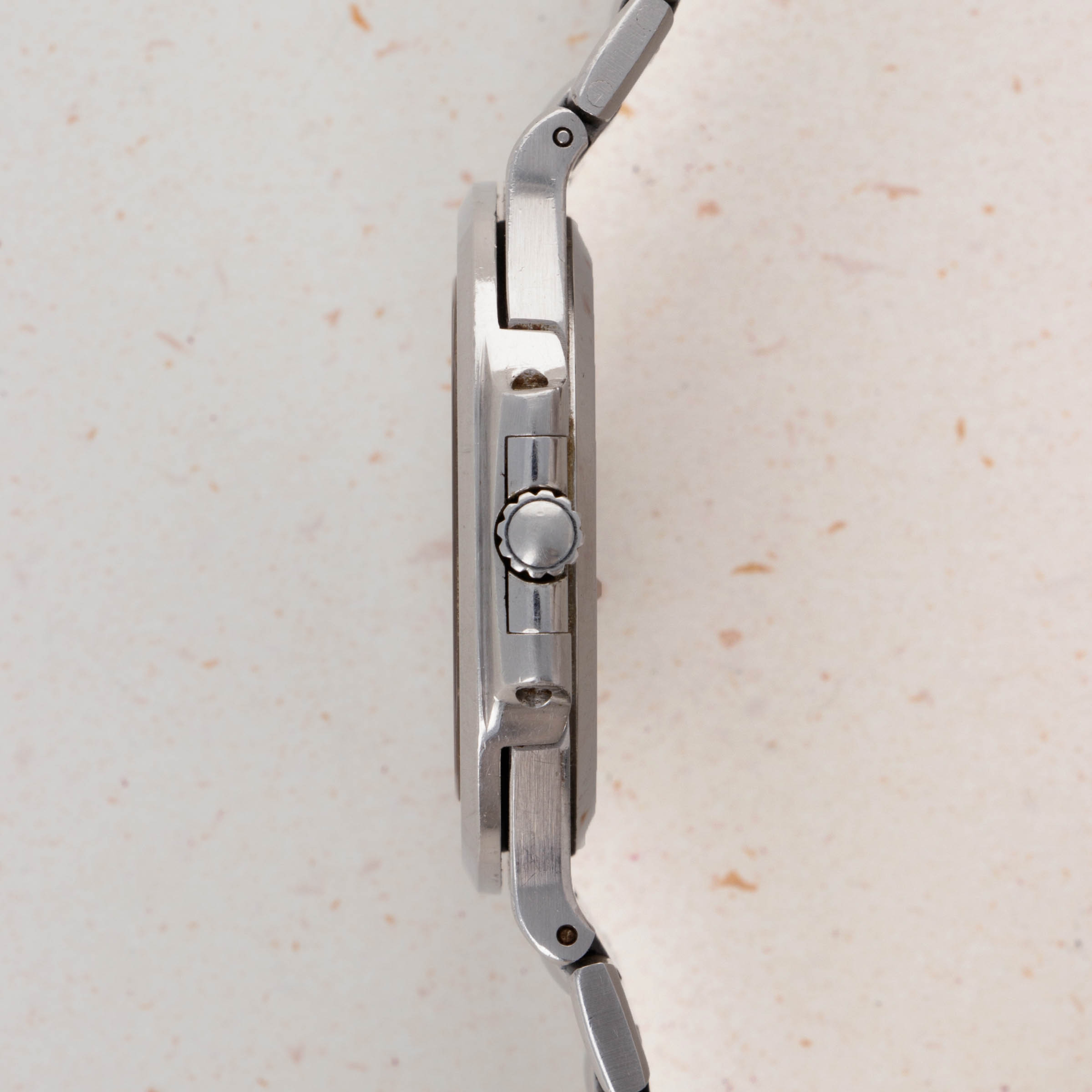 Released in 1976 as Patek Philippe's response to the Audemars Piguet Royal Oak, an avant-garde luxury stainless steel sports watch borne from AP's necessity to survive the Quartz Crisis, the Nautilus was Patek Philippe's attempt to go head to head with AP's increasingly popular sports watch. Designed by Gerald Genta, the same man that had designed the Royal Oak, the Nautilus was inspired by a porthole and thus features a rounded-over octagonal bezel and hinge-like protrusions on either side of its case. Featuring its signature horizontally embossed dial and iconic integrated bracelet, the Nautilus has become the most sought-after watch in the market today as collectors clamor over available examples thanks to its iconic design, extreme exclusivity, and impeccable craftsmanship. Famed as the very first variant, the Nautilus ref. 3700 was nicknamed the “Jumbo” thanks to its enormous, for the time, 42mm case. An unpopular timepiece from the get-go, the ref. 3700 failed to sell as well as Patek may have hoped, thanks to its significant departure from what Patek was known for at the time – complicated timepieces and classical dress watches. So, today the ref. 3700/1A exists as a rare timepiece indeed with approximately 3500 pieces produced until the ref. 3700/1A's discontinuation in 1990. While it might be the most 'common' of the ref. 3700 variants, it is still an incredibly rare watch. Indeed, considering the appetite for stainless steel Nautilus variants, particularly the full-sized ref. 3700, it is a comparatively harder timepiece to get one's hands on than its precious metal siblings.